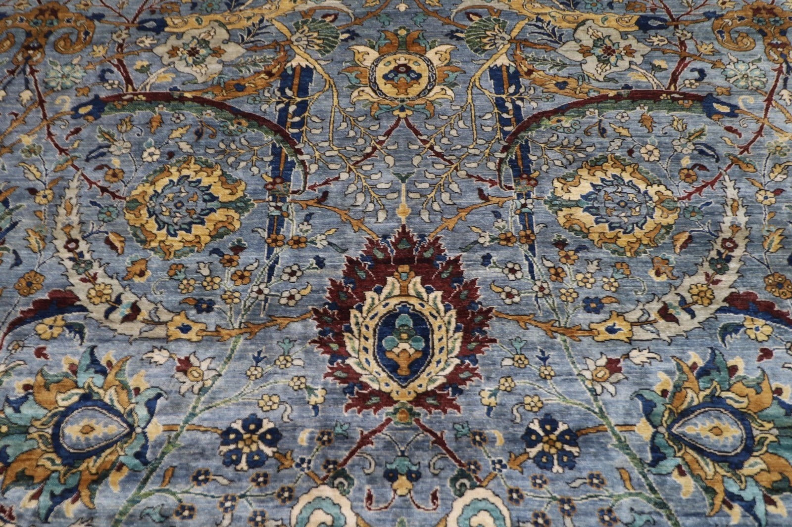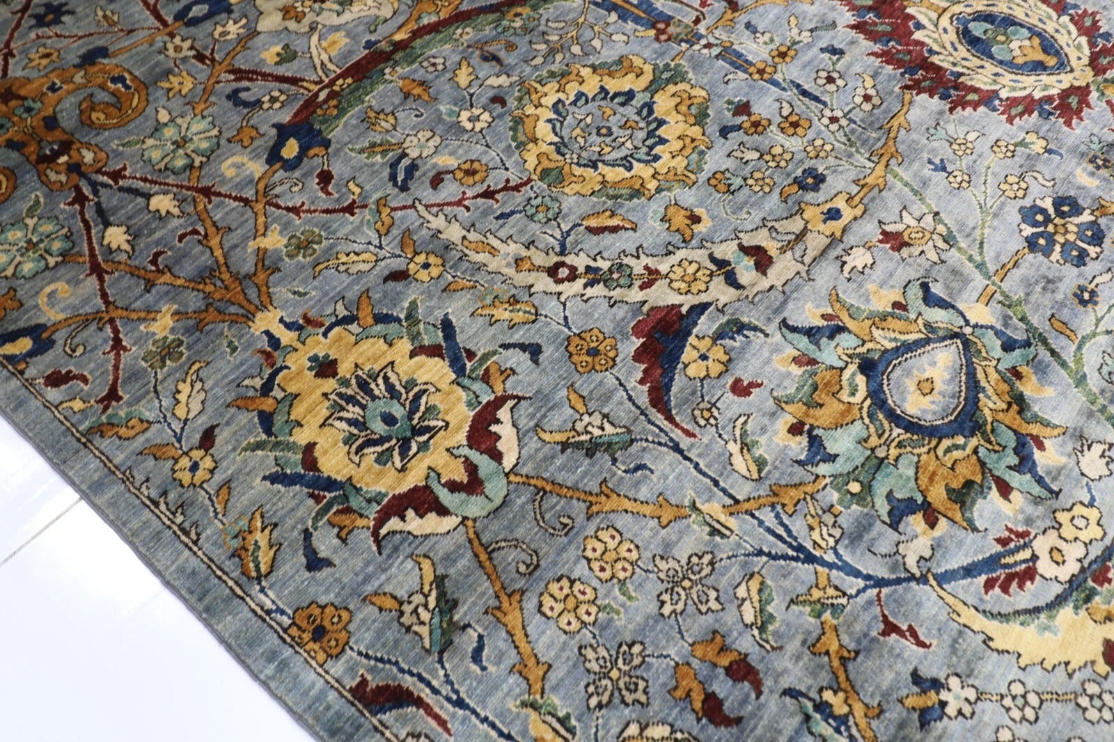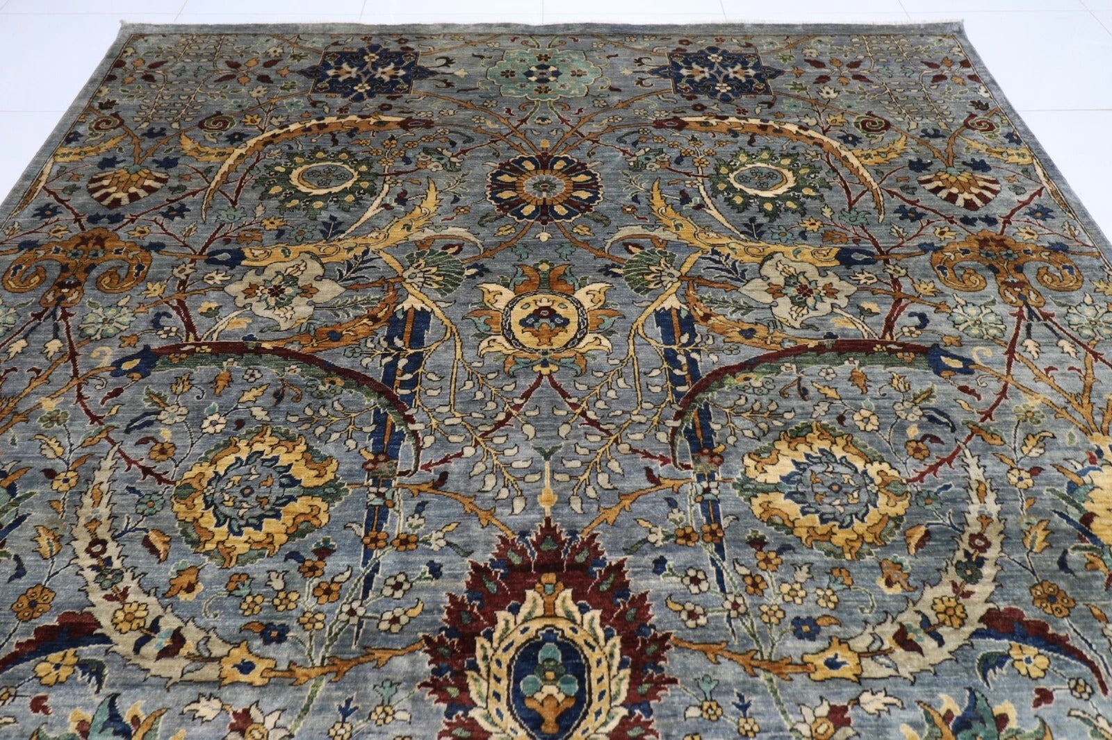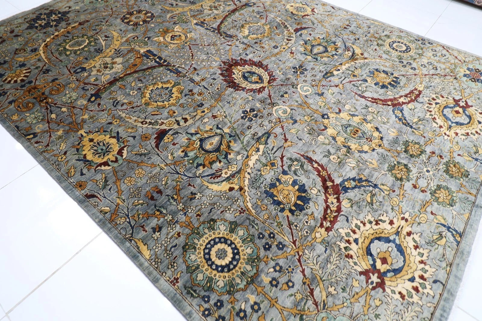 The photographs presented are captured indoor room lights without editing to show the beauty and vibrancy of the rug and also to give you the better idea that how the rug will look in your room and office, the colors in the rug will be perceived differently depending on the angle you view it from.