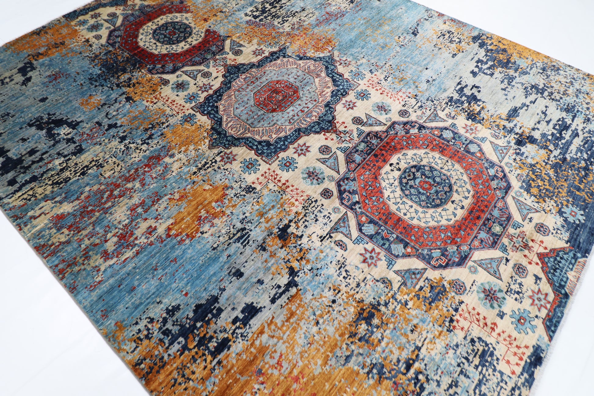 250 x 300 cm | Abstract Mamluk Handmade Afghan Area Carpet Hand Knotted Carpet Living Room Rug