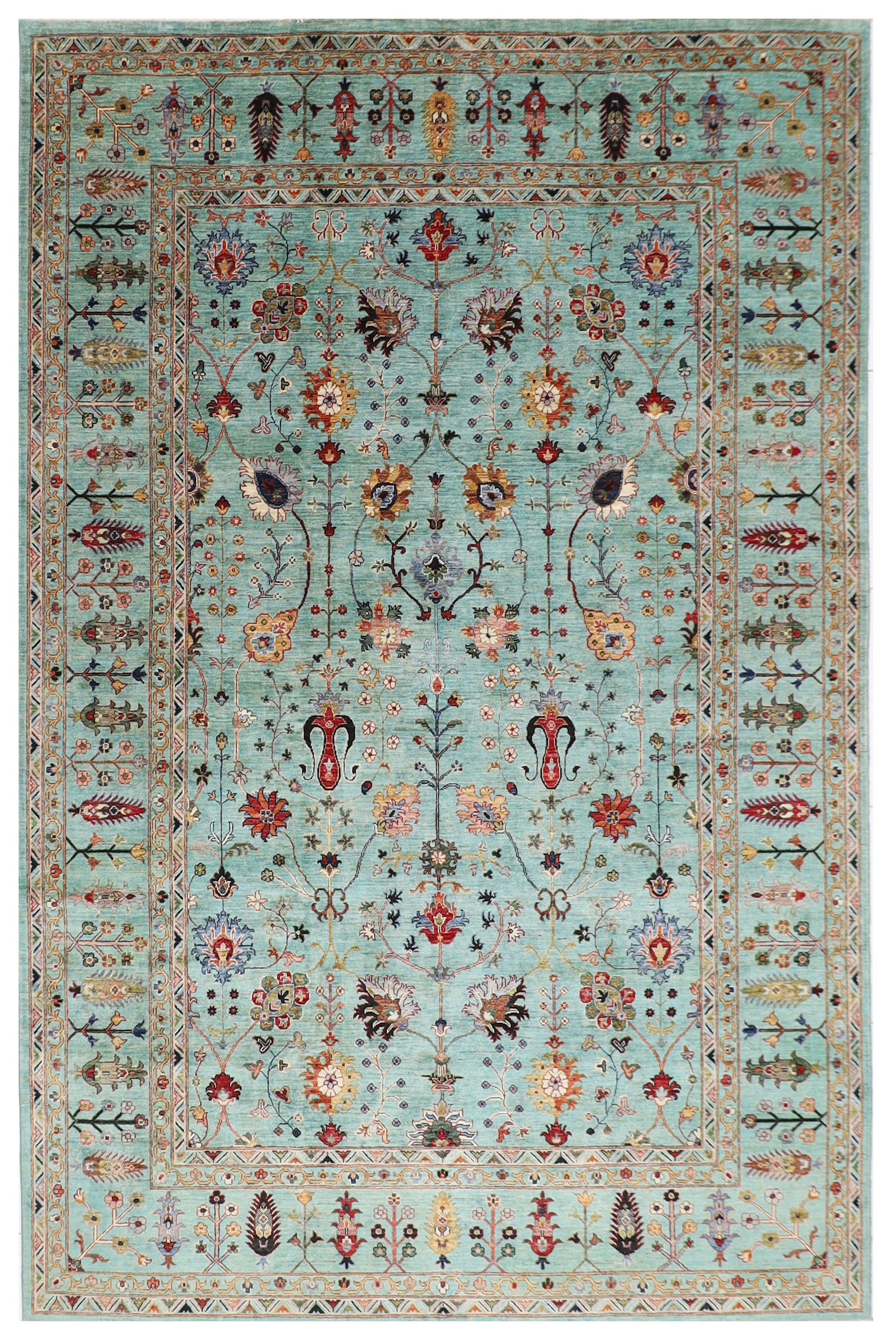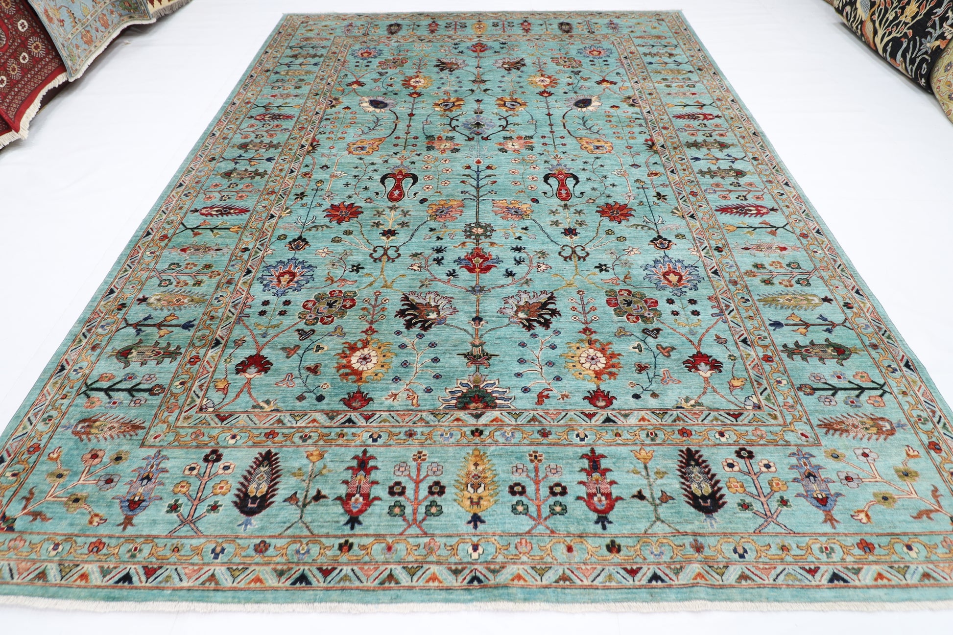 271 x 363 cm | Sultani Turquoise Afghan Tribal Hand Knotted Veg Dye Wool carpet