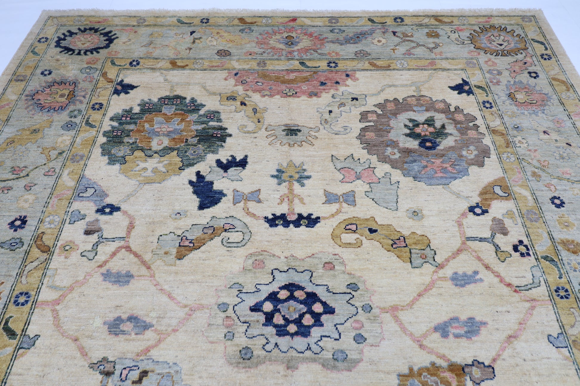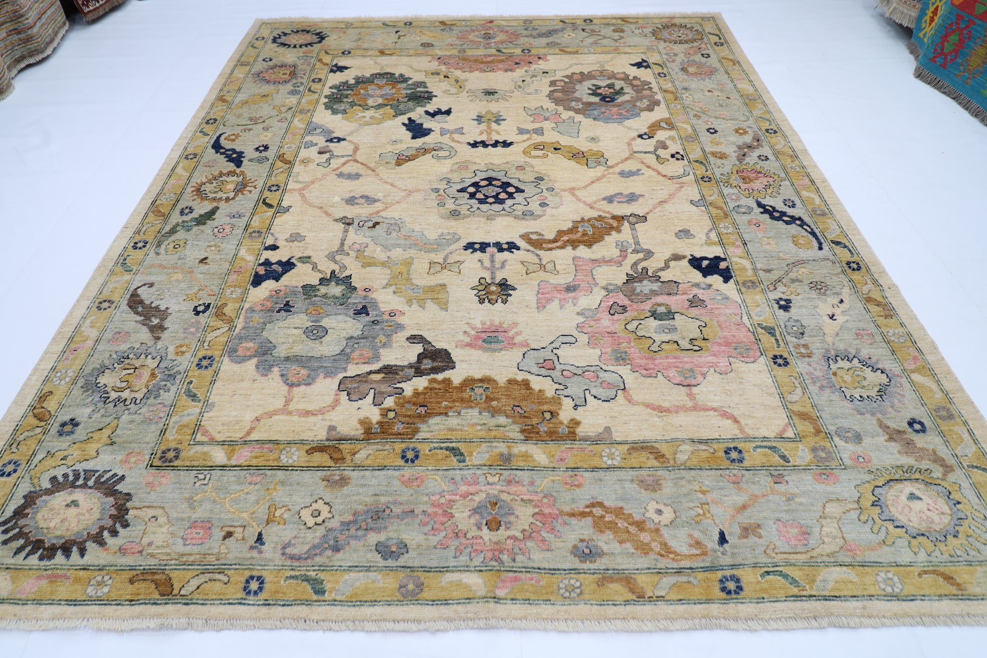 253 x 306 cm | Oushak Cream Afghan Tribal Hand Knotted Wool Carpet