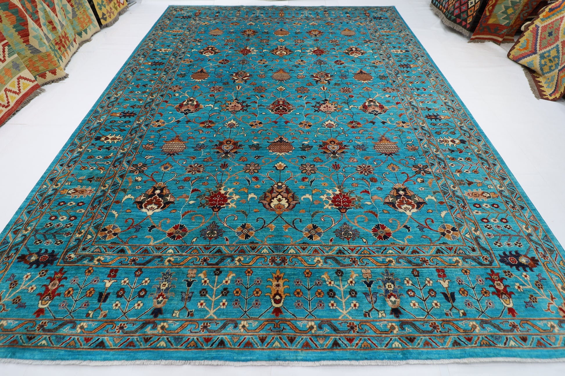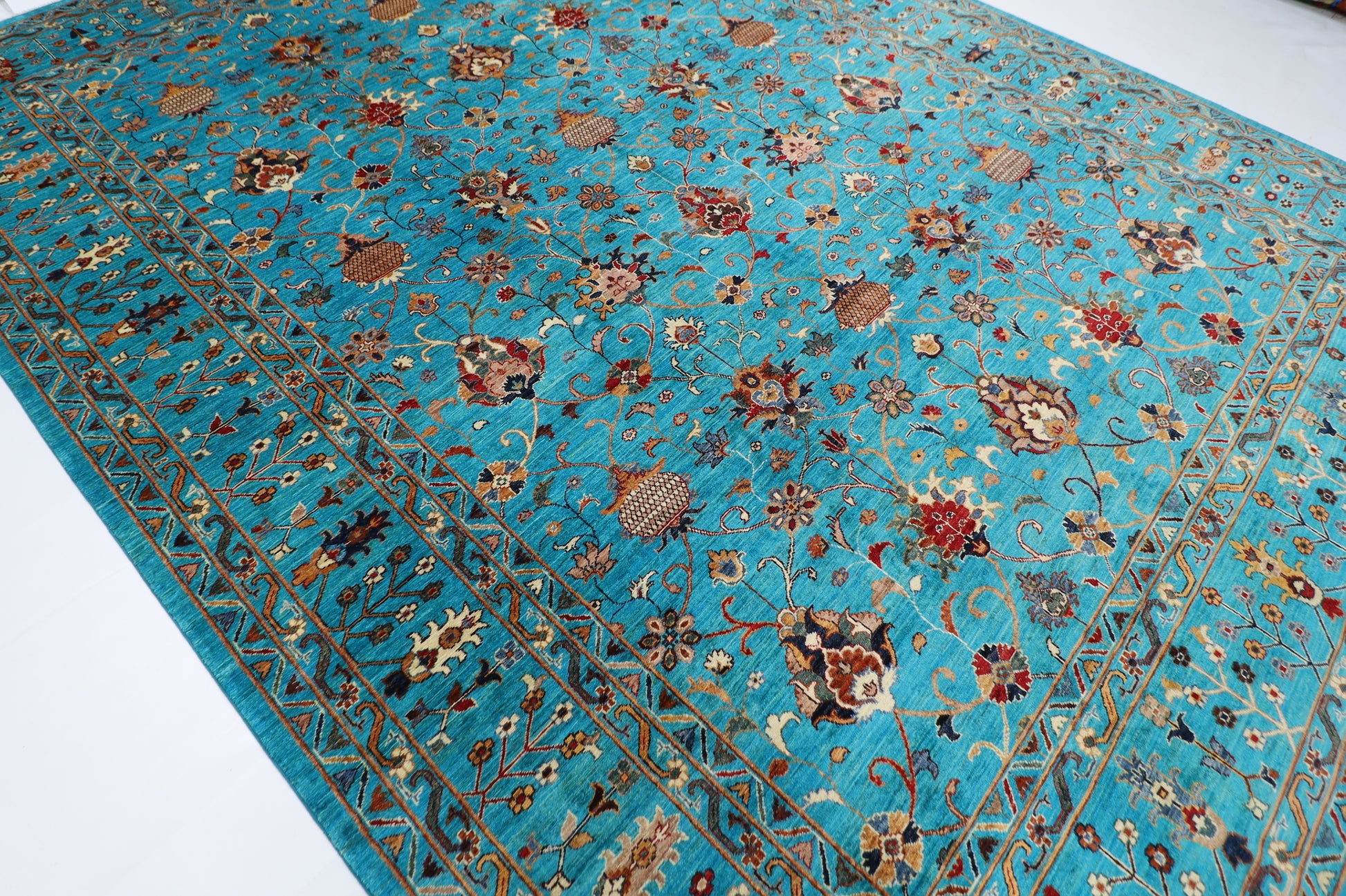 305 x 413 cm | Turquoise Sultani Handmade Afghan Area Rug Hand Knotted Carpet Living Room Rug