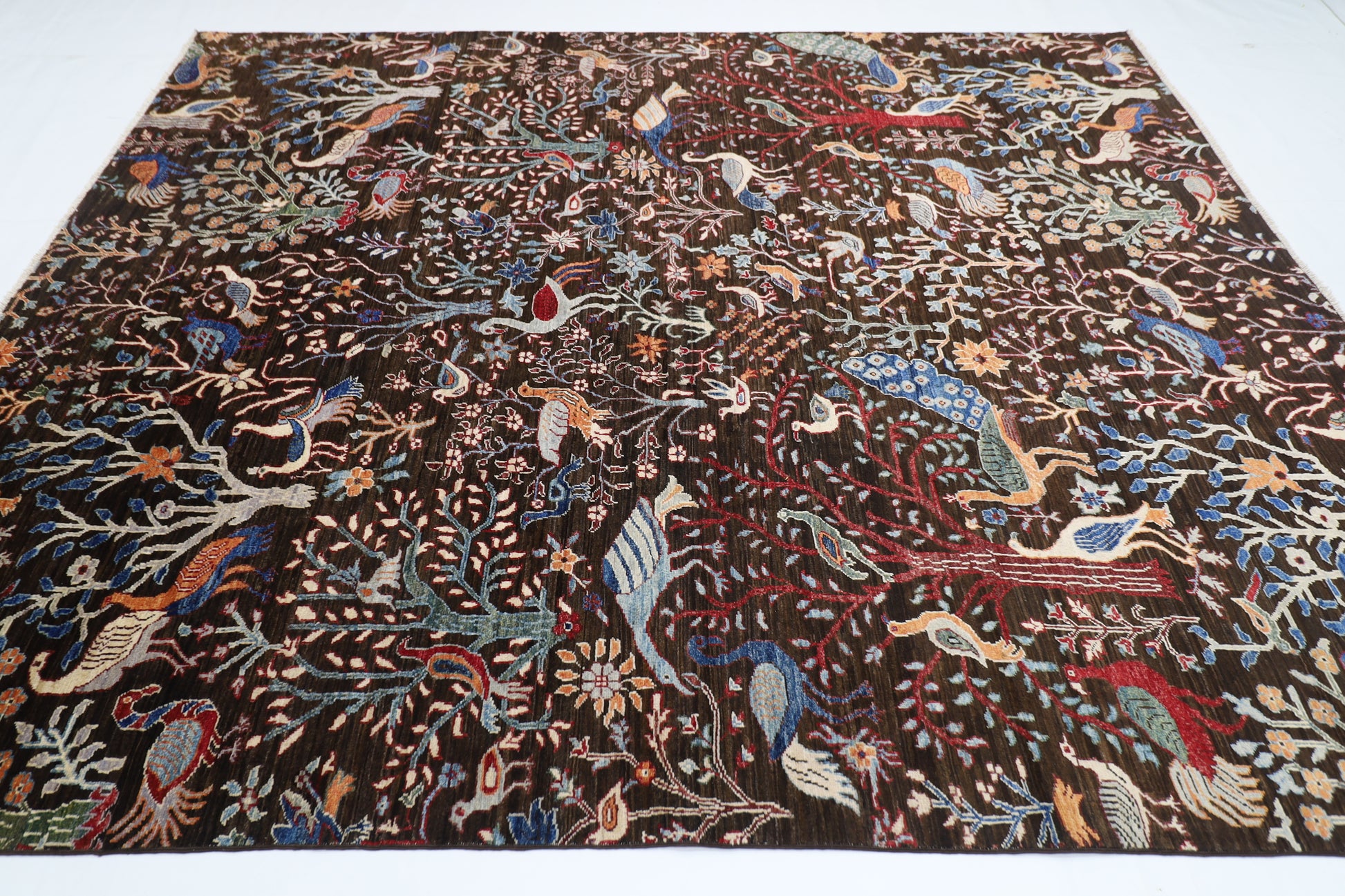 241 x 296 cm | Birds Pictorial Afghan Tribal Hand Knotted Veg Dye Wool carpet
