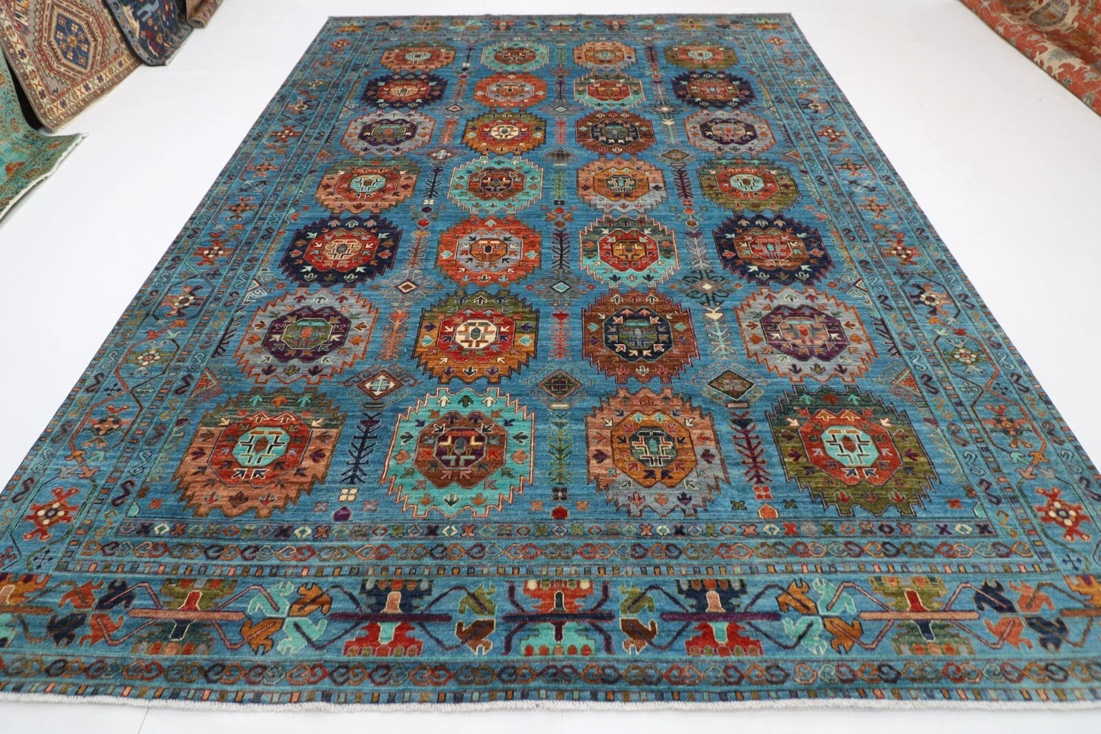 277 x 368 cm | Waziri Blue Afghan Tribal Hand Knotted Carpet