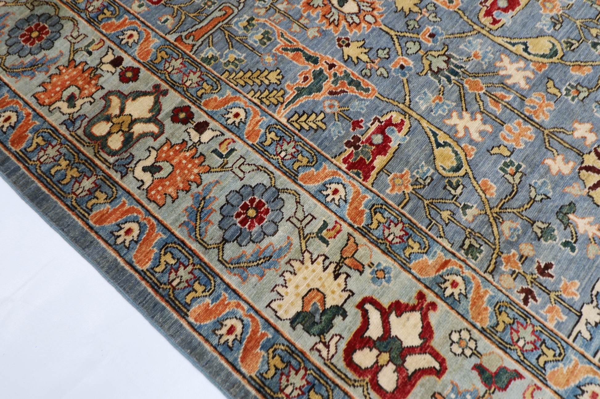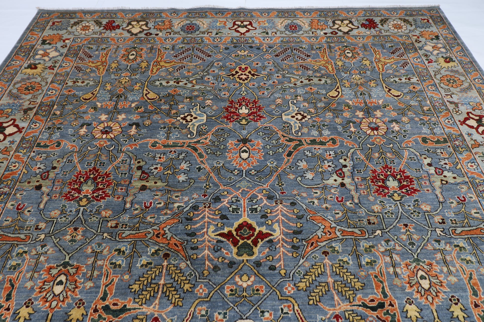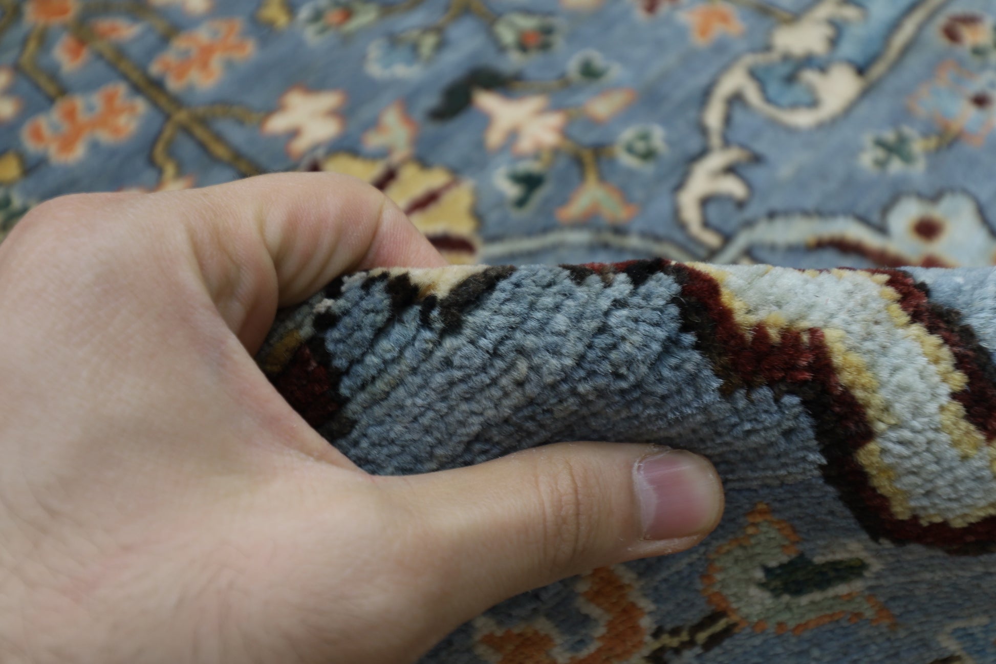 The photographs presented are captured indoor room lights without editing to show the beauty and vibrancy of the rug and also to give you the better idea that how the rug will look in your room and office, the colors in the rug will be perceived differently depending on the angle you view it from.