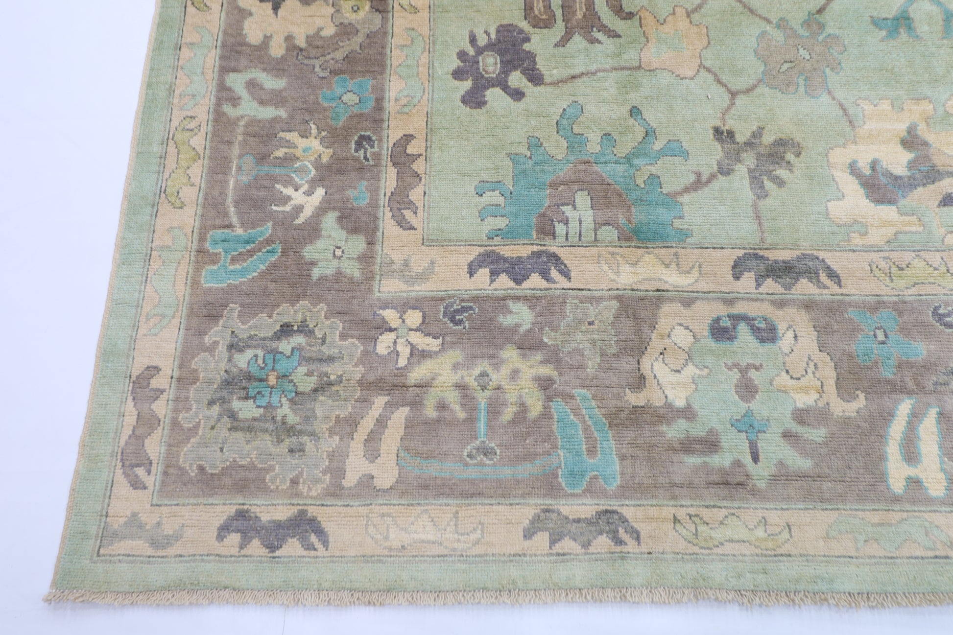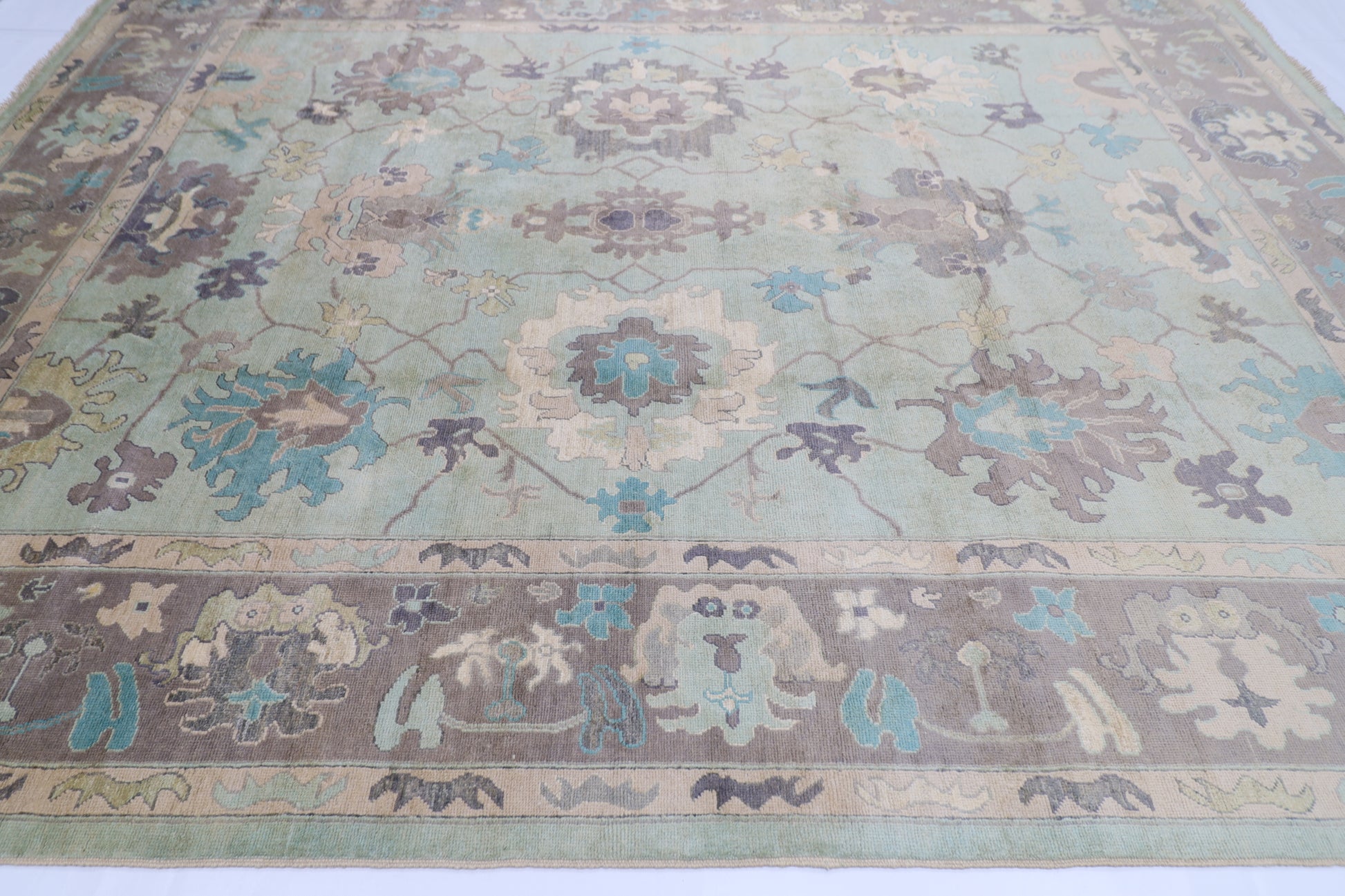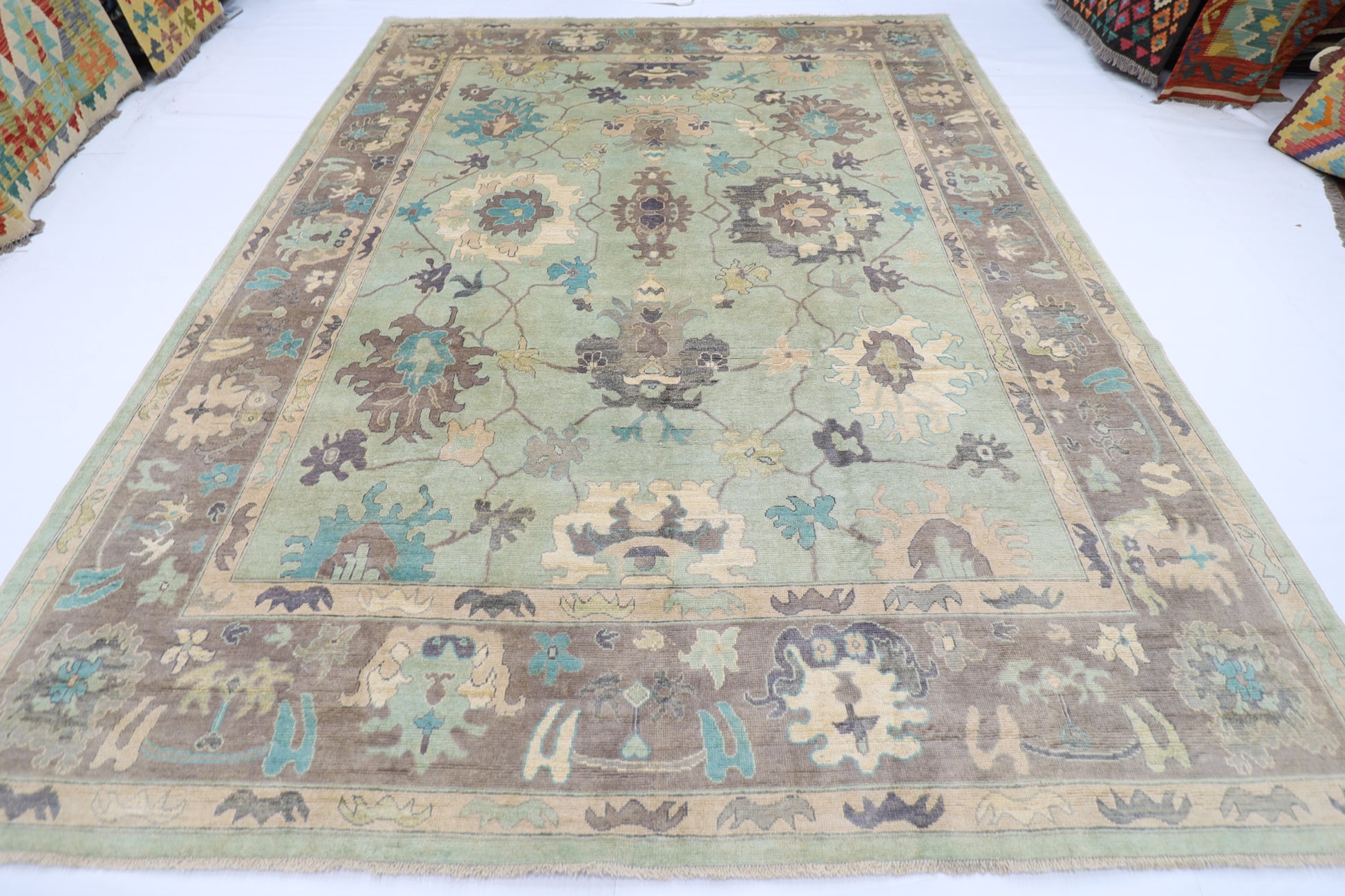 271 x 355 cm | Oushak Green Afghan Hand Knotted Carpet