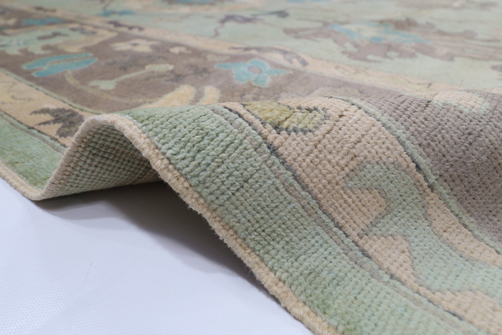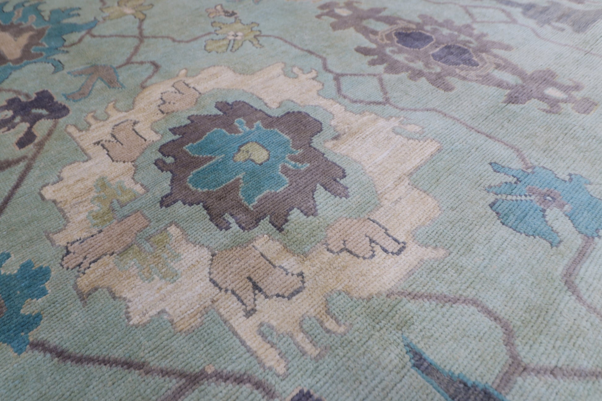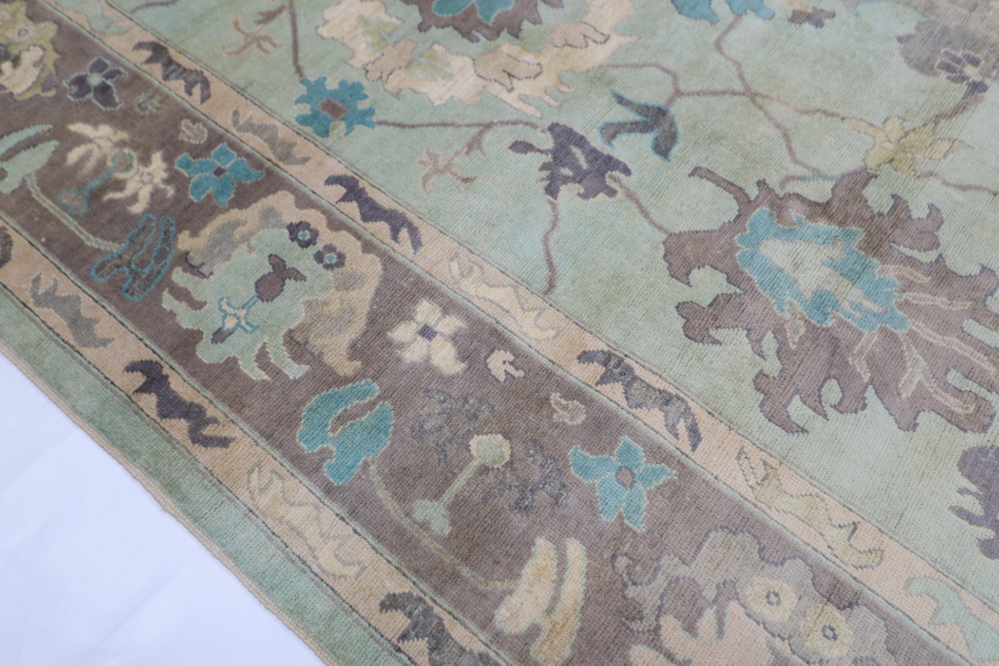 271 x 355 cm | Oushak Green Afghan Hand Knotted Carpet