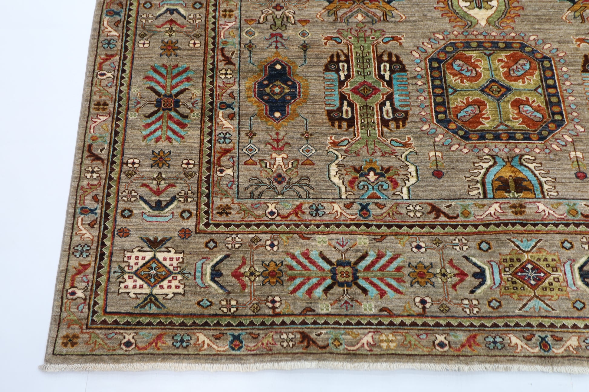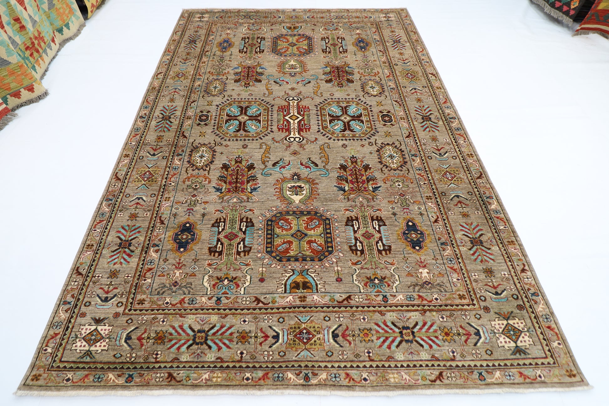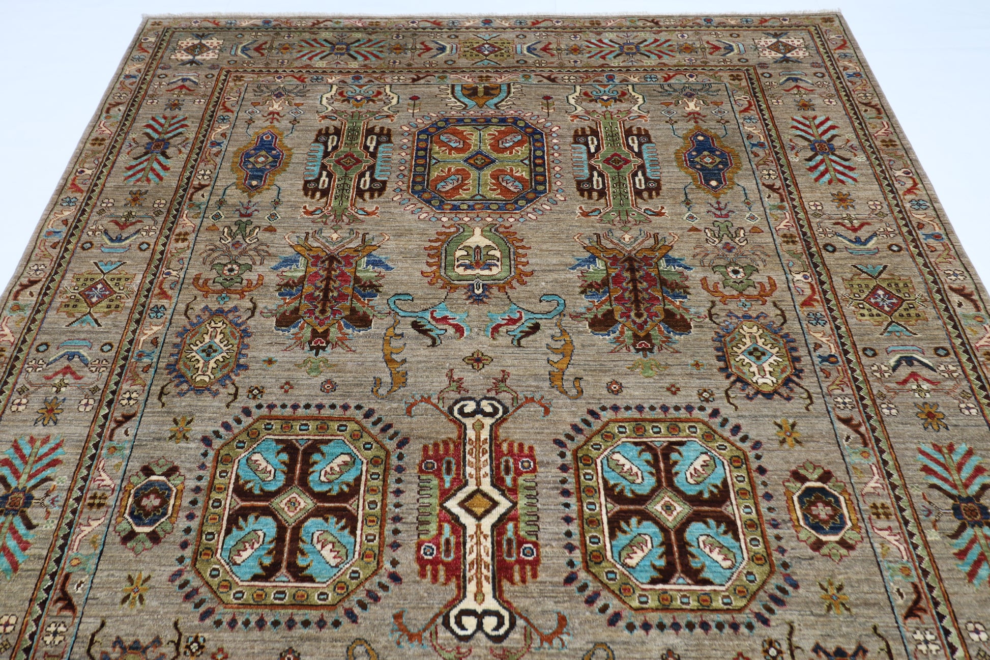 208 x 307 cm | Gray Waziri Handmade Afghan Area Rug Hand Knotted Carpet Living Room Rug
