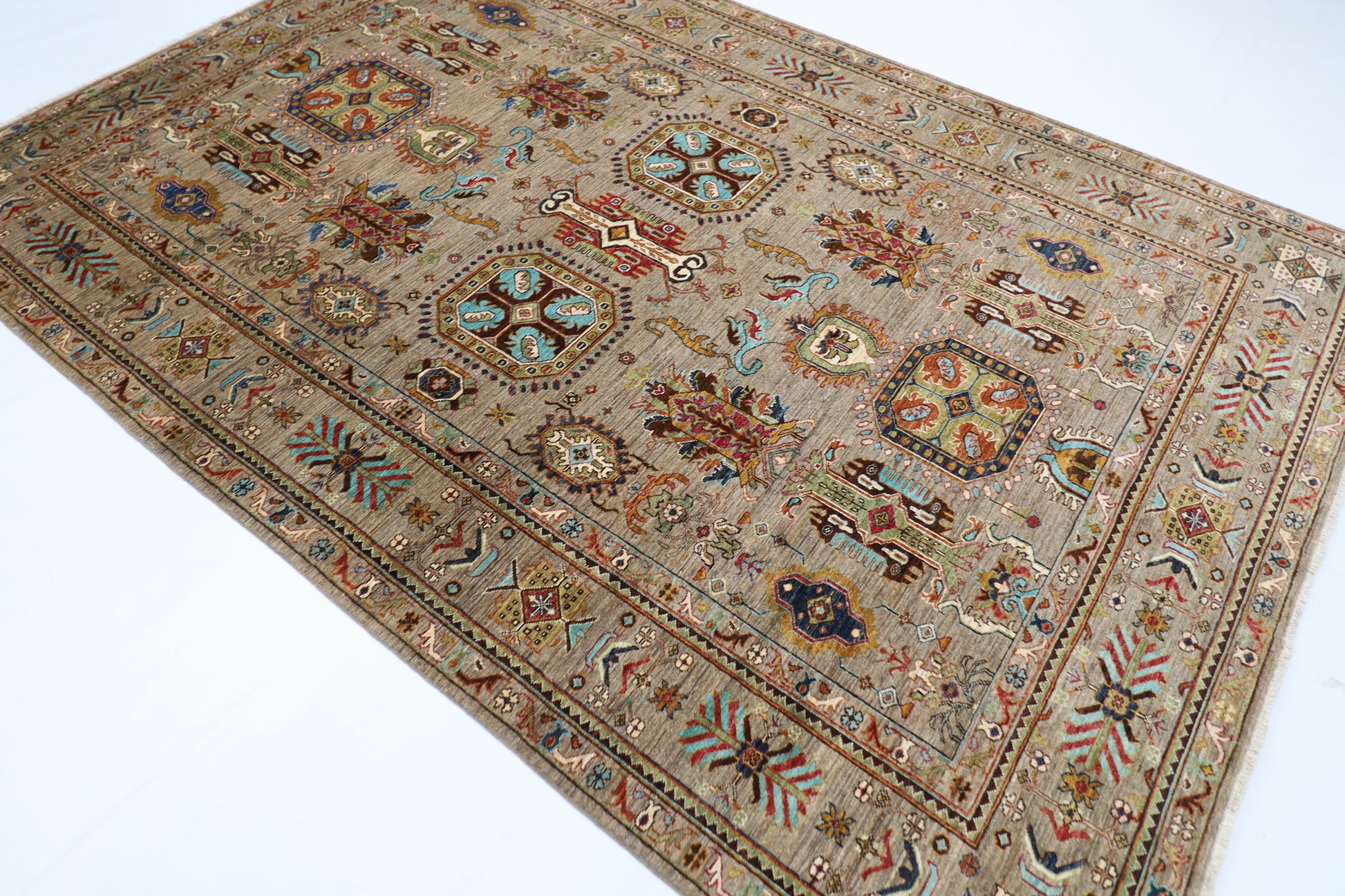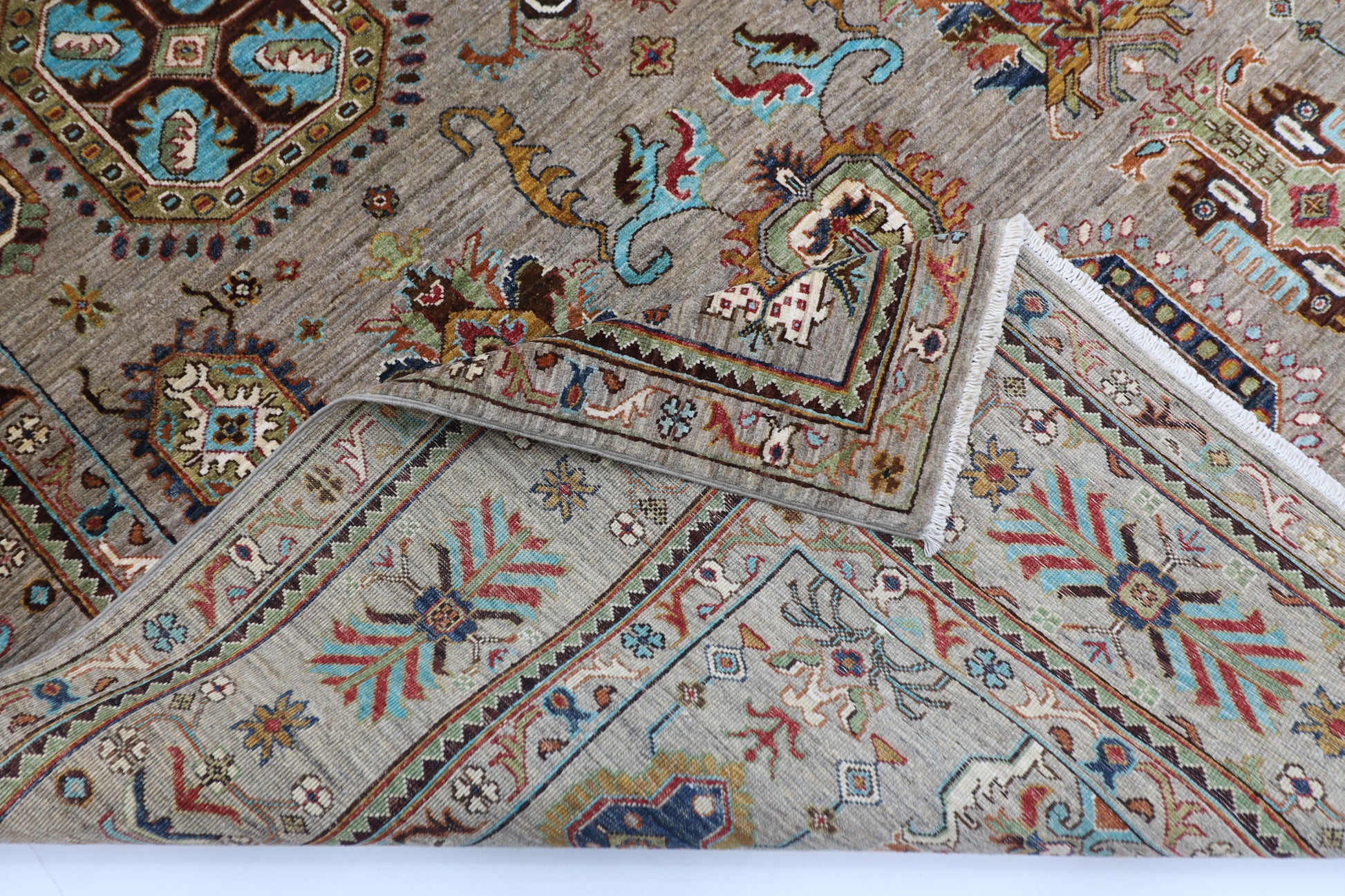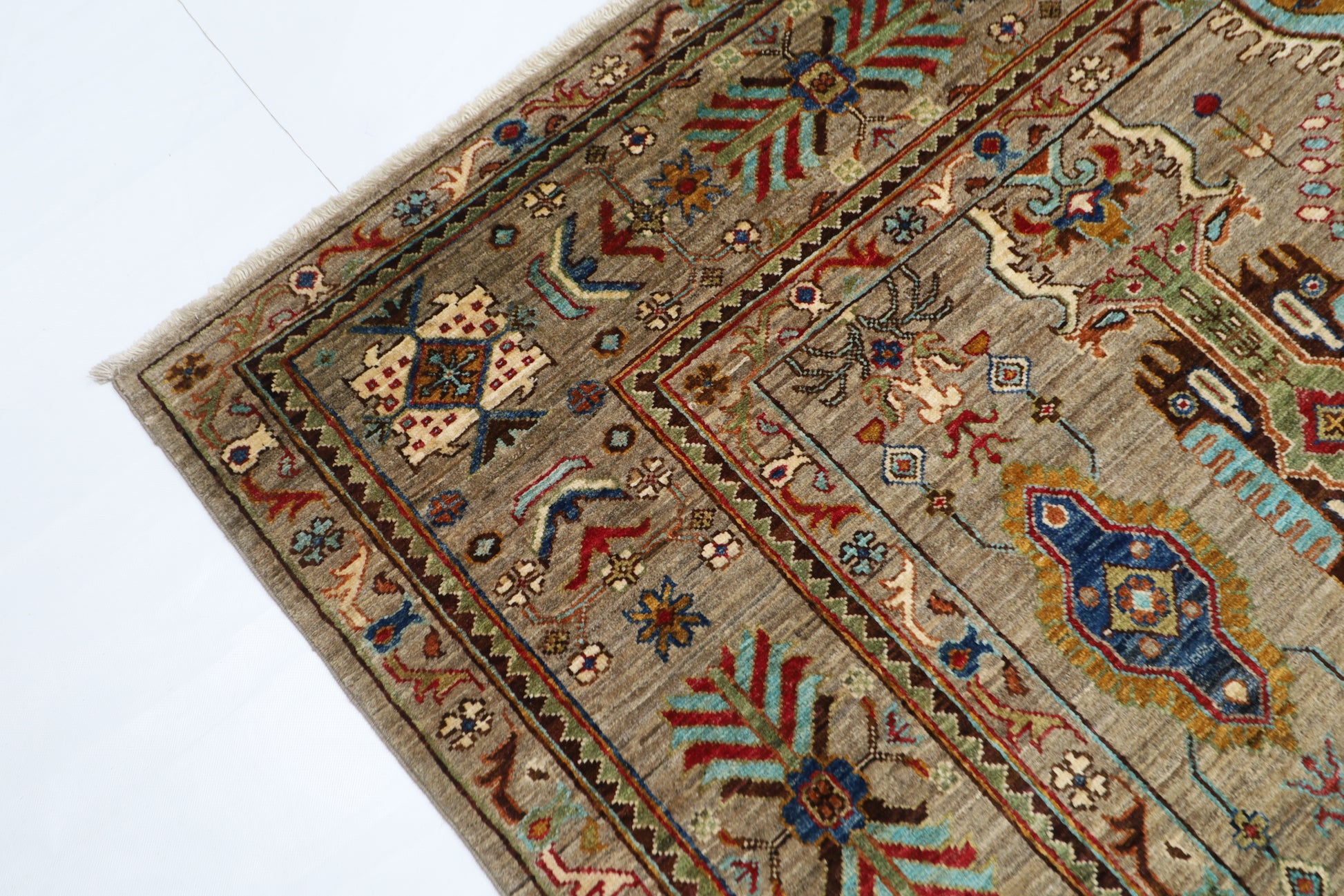 208 x 307 cm | Gray Waziri Handmade Afghan Area Rug Hand Knotted Carpet Living Room Rug