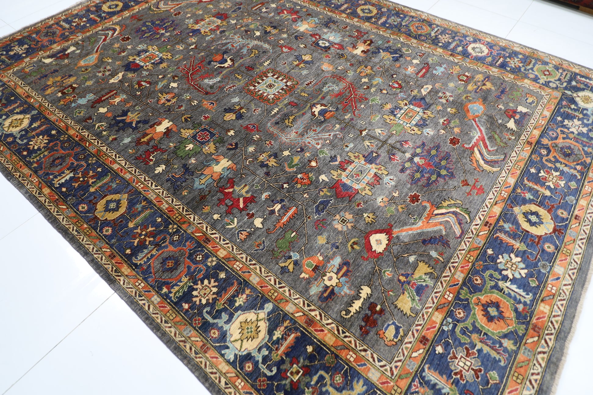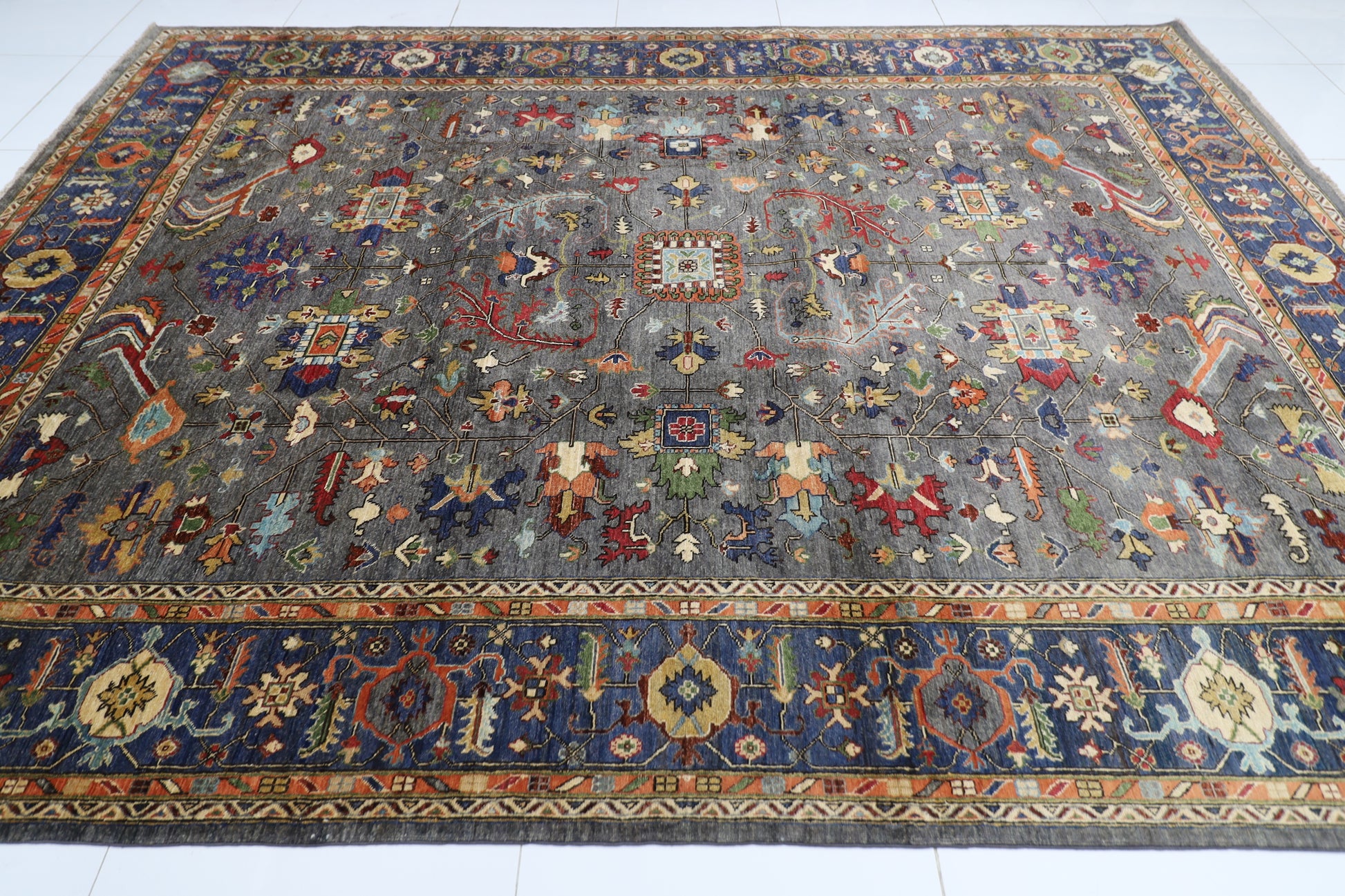 279 x 374 cm | Grey Afghan Tribal Hand Knotted Carpet