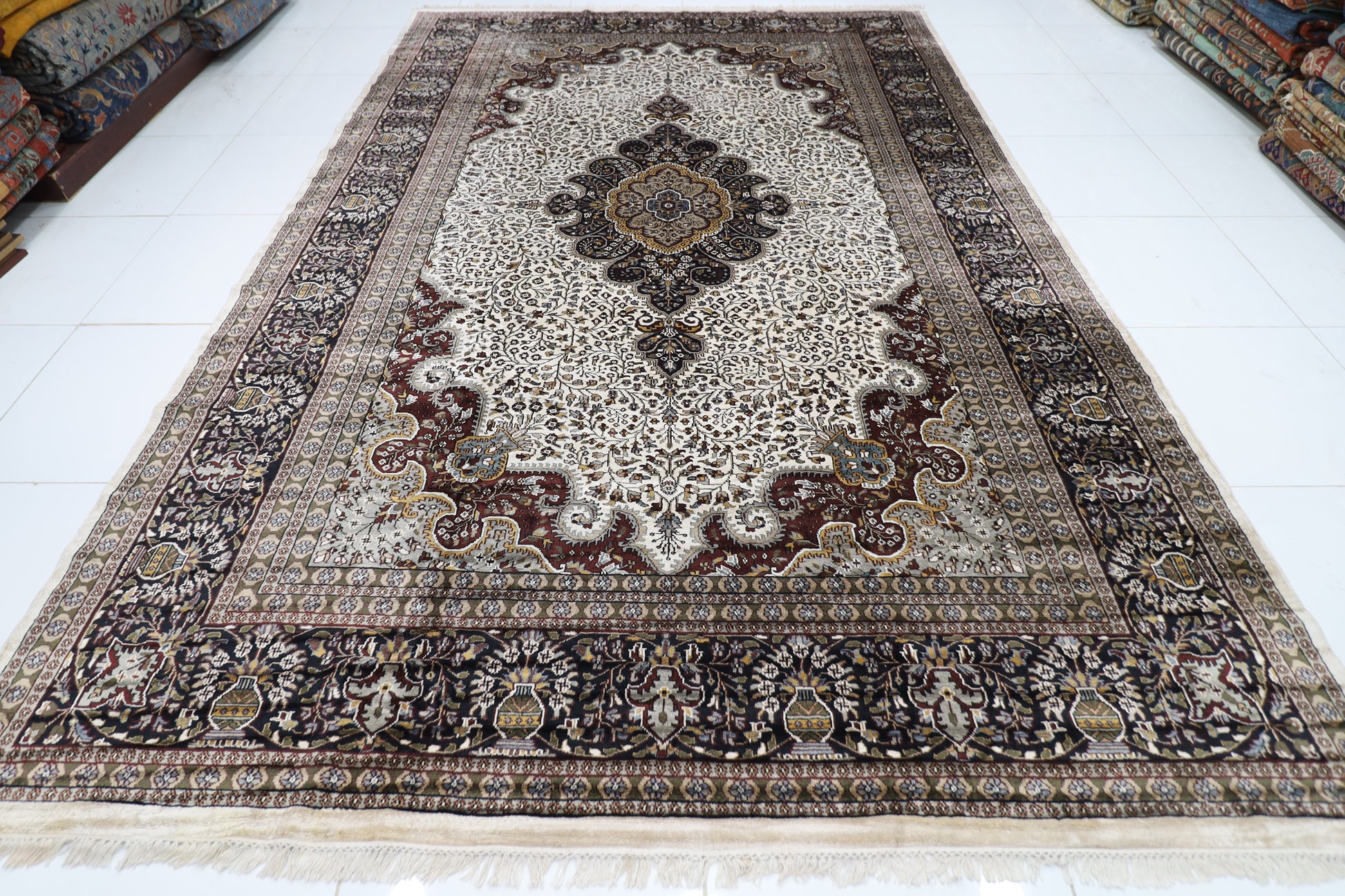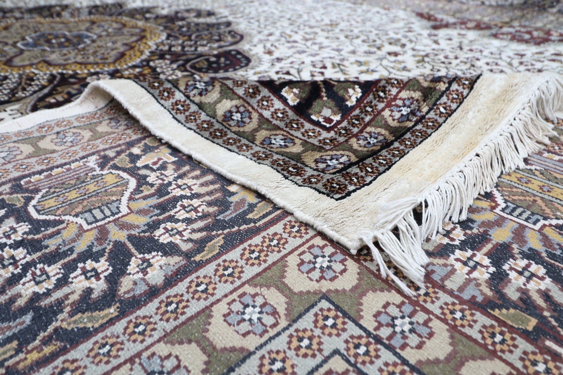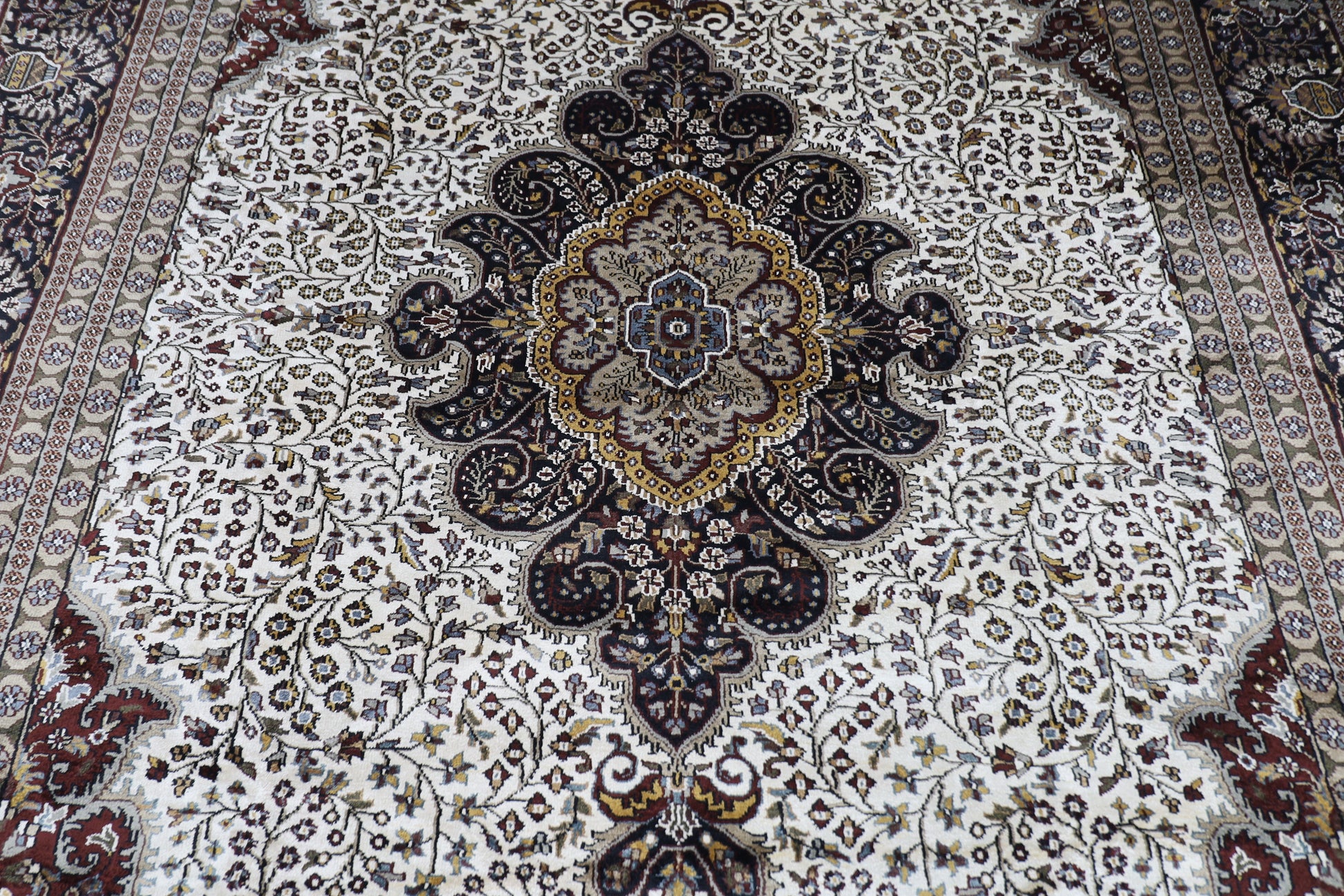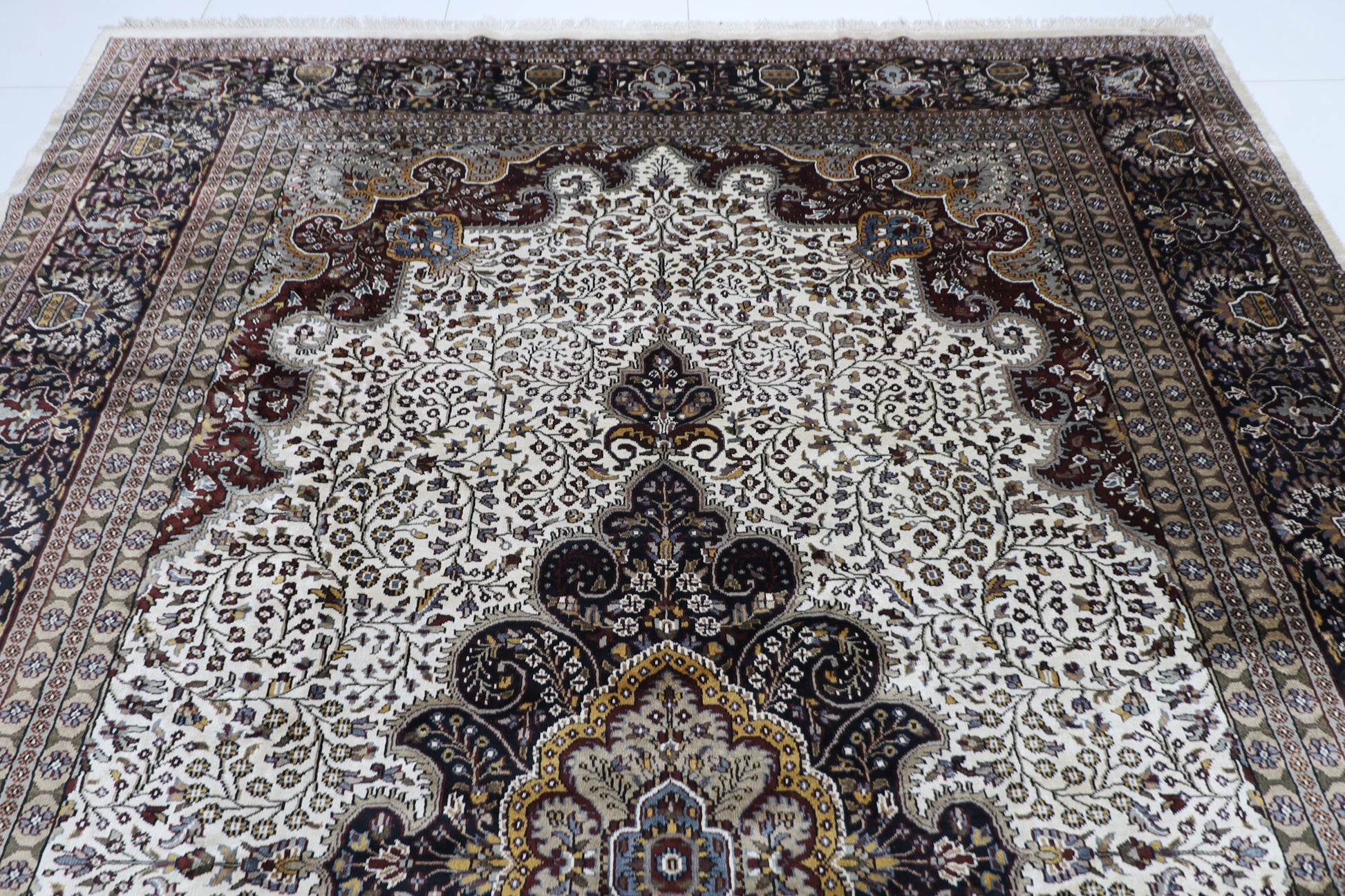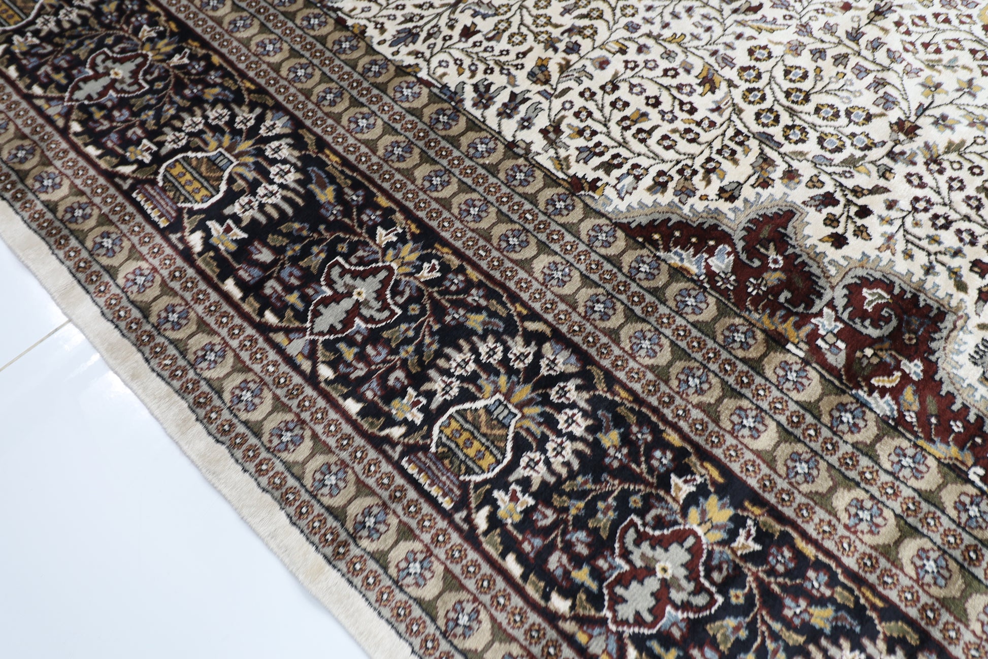 The photographs presented are captured indoor room lights without editing to show the beauty and vibrancy of the rug and also to give you the better idea that how the rug will look in your room and office, the colors in the rug will be perceived differently depending on the angle you view it from.