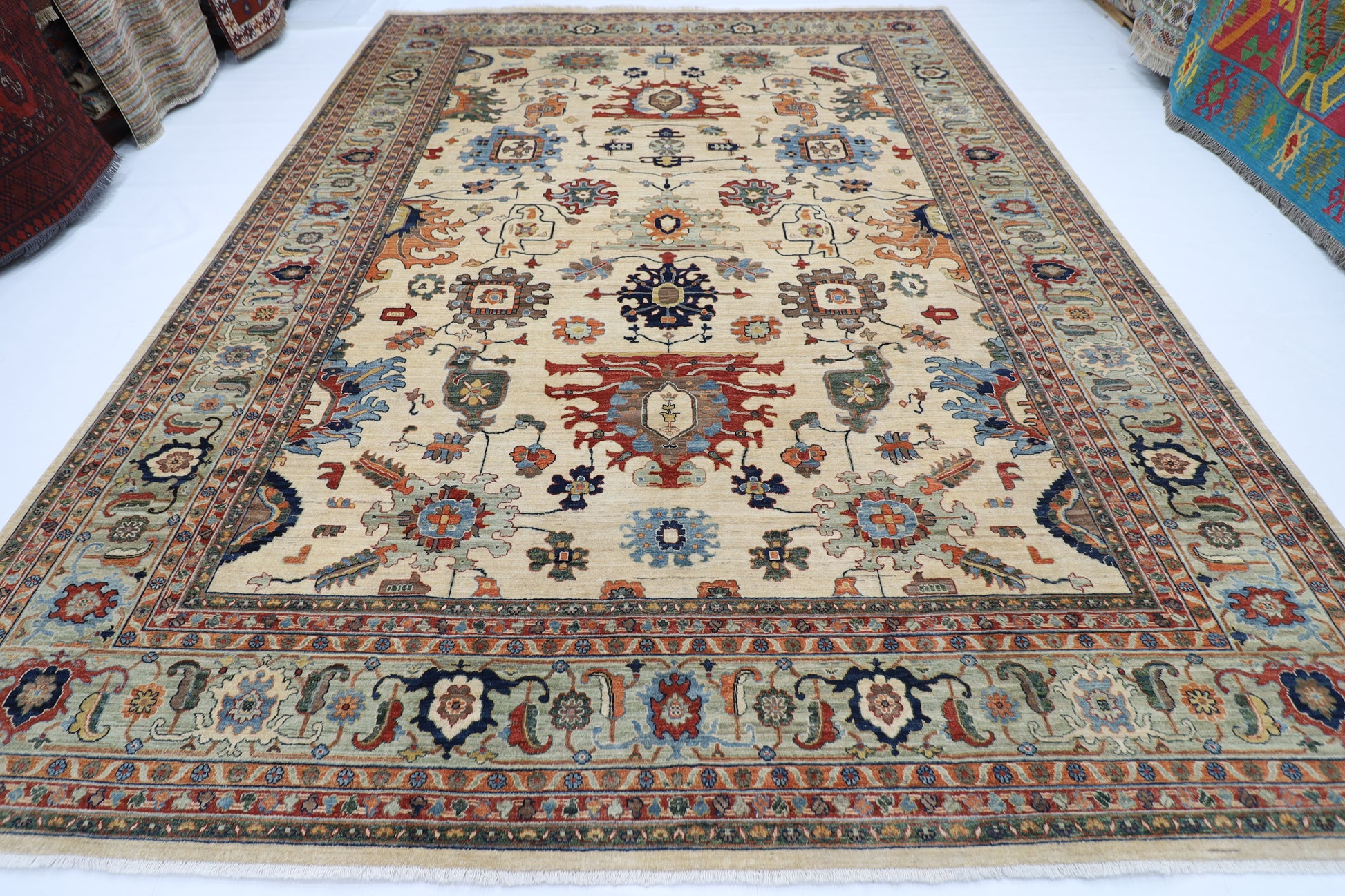308 x 413 cm | Beige Afghan Tribal Hand Knotted Wool Carpet