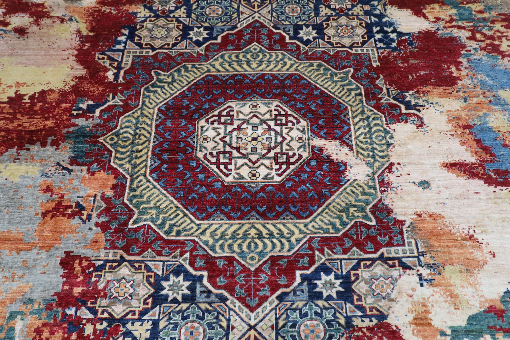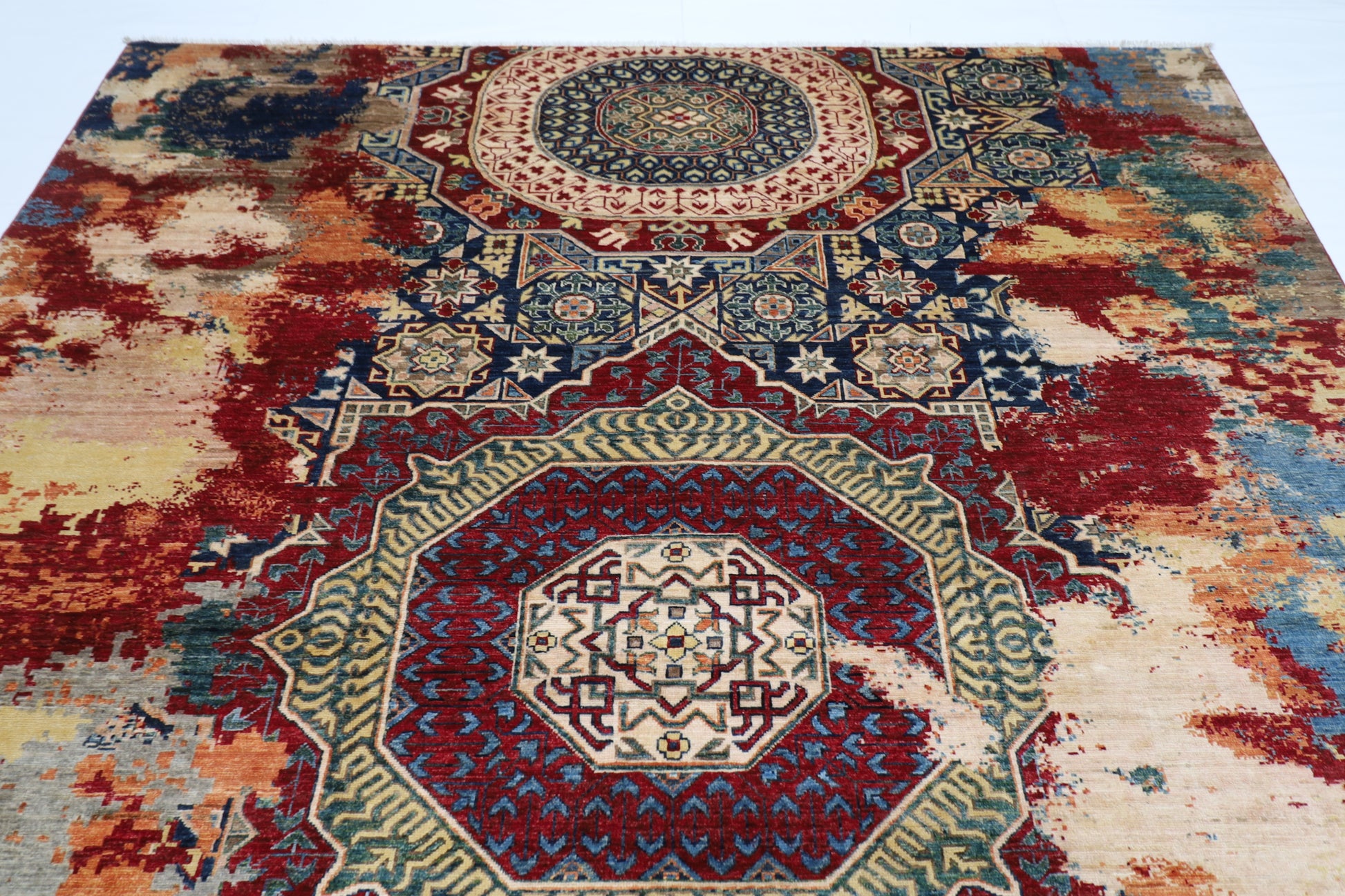 245 x 297 cm | Abstract Mamluk Afghan Tribal Hand Knotted Veg Dye Wool carpet