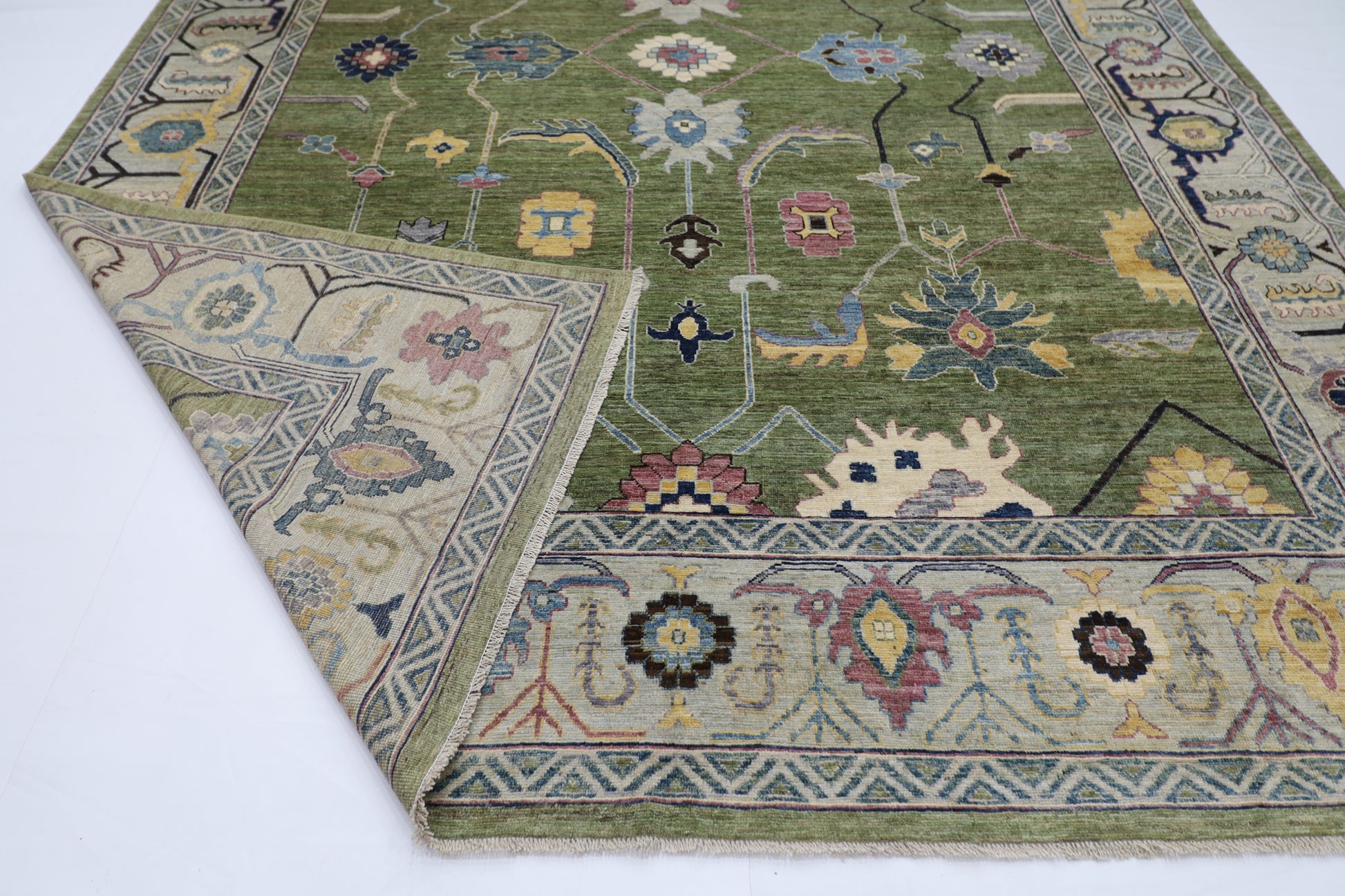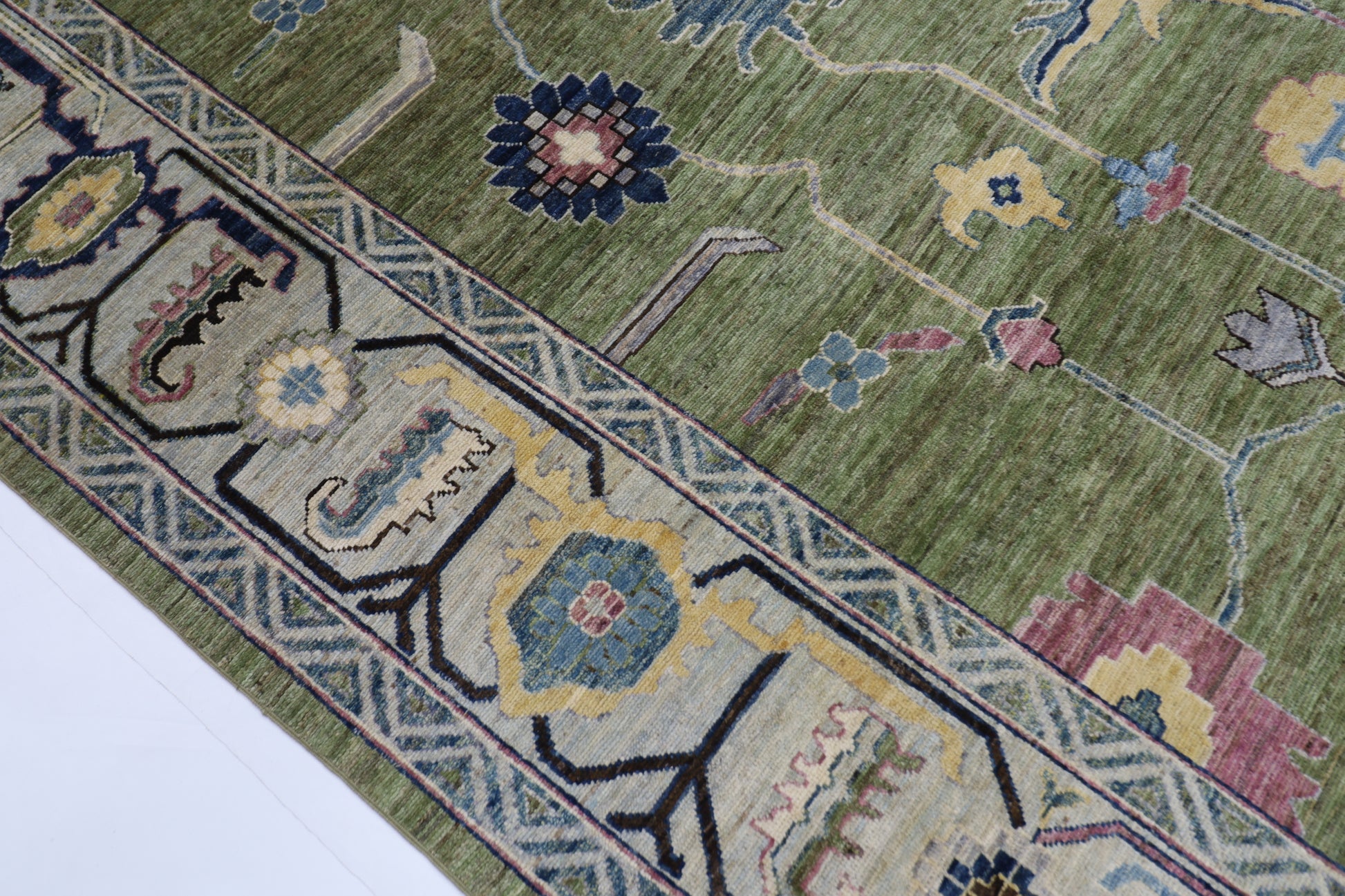 300 x 411 cm | Green Oushak Afghan Tribal Hand Knotted Natural Veg Dye Wool Carpet