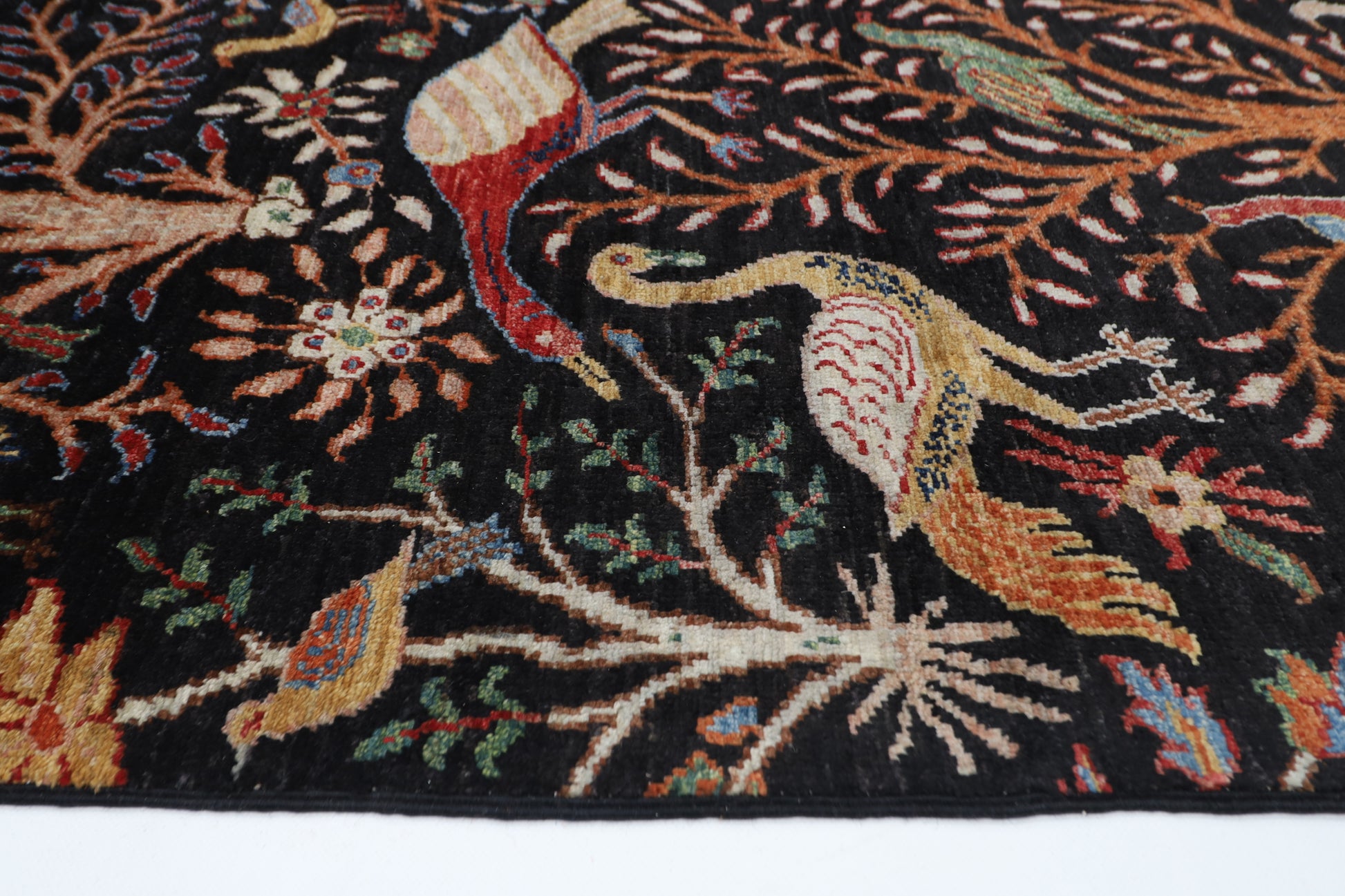 246 x 297 cm | Birds Black Traditional Area Rug Afghan Hand Knotted Veg Dye Wool carpet
