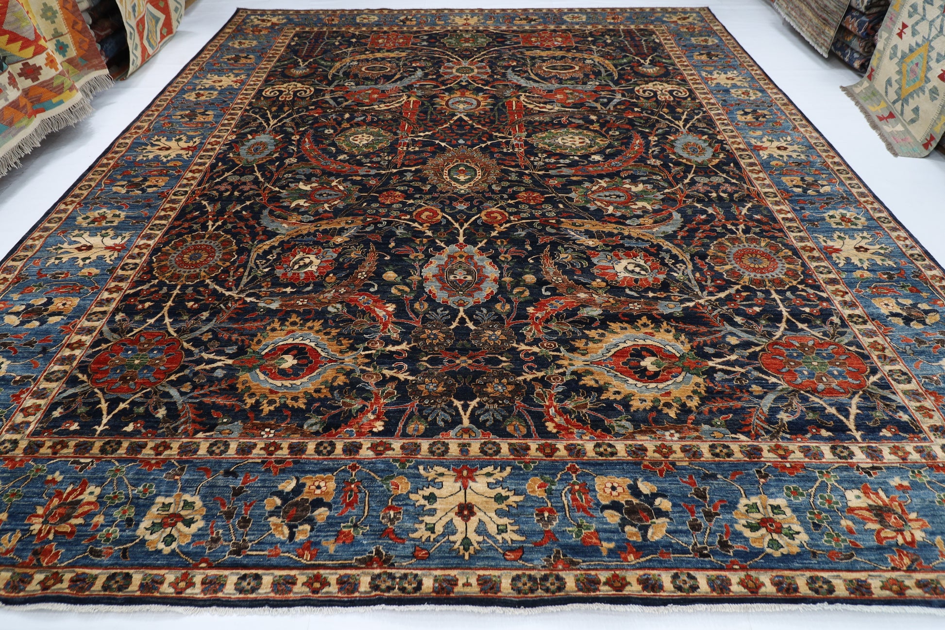 360 x 423 cm | Bidjar Blue Area Rug Afghan Hand Knotted veg Dye Wool carpet