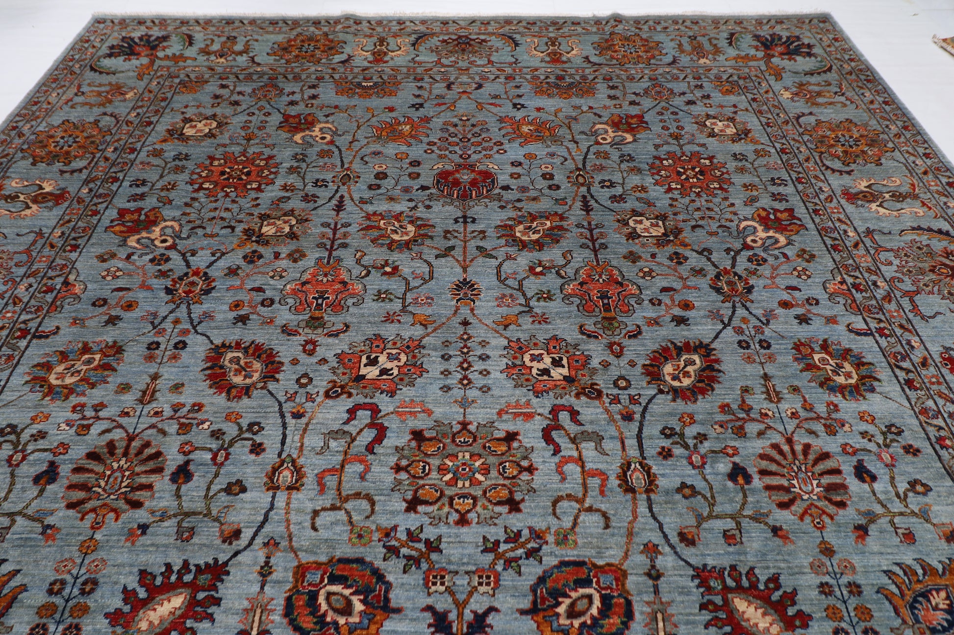 The photographs presented are captured indoor room lights without editing to show the beauty and vibrancy of the rug and also to give you the better idea that how the rug will look in your room and office, the colors in the rug will be perceived differently depending on the angle you view it from.