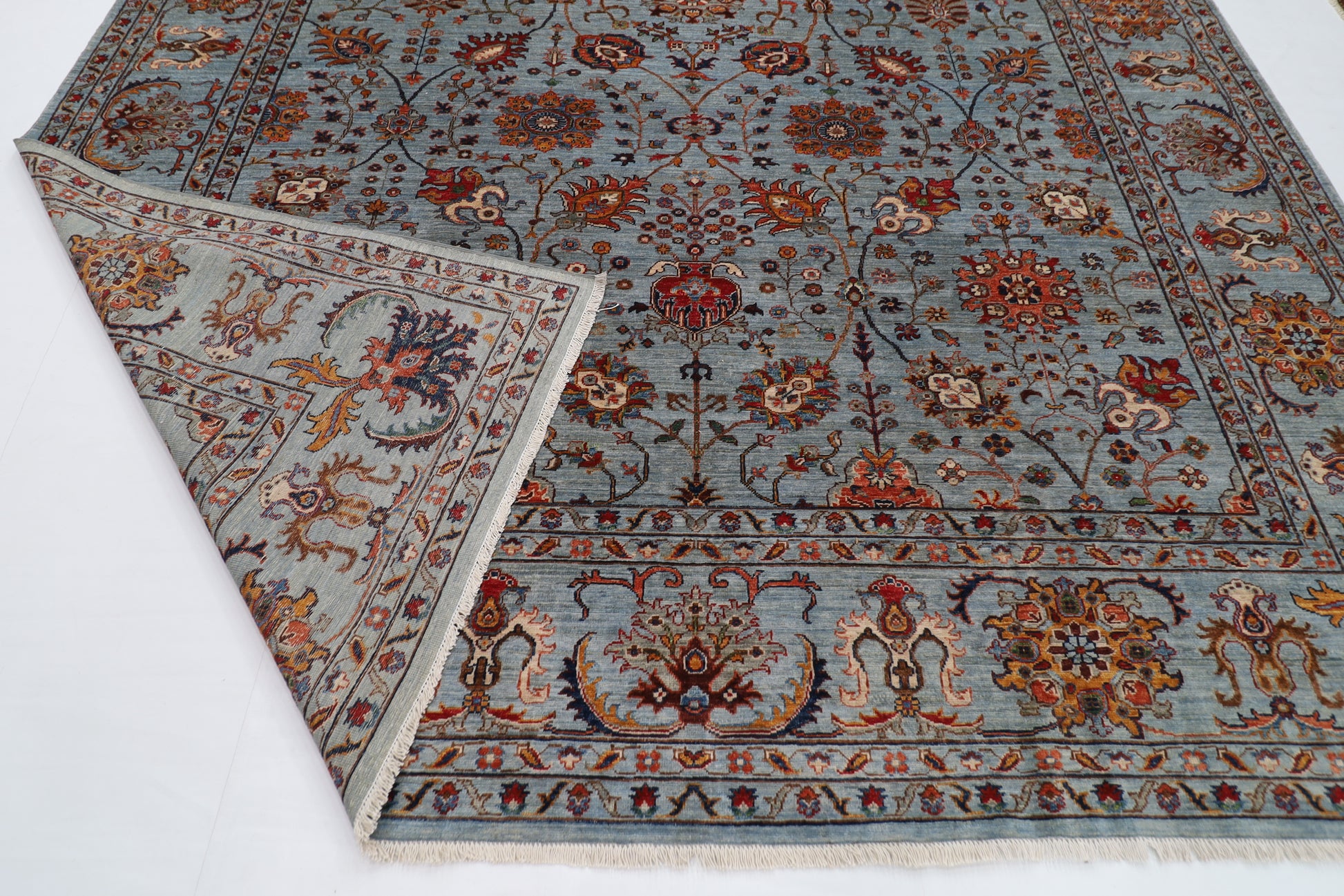 311 x 423 cm | Floral Gray Area Rug Afghan Hand Knotted veg Dye Wool carpet