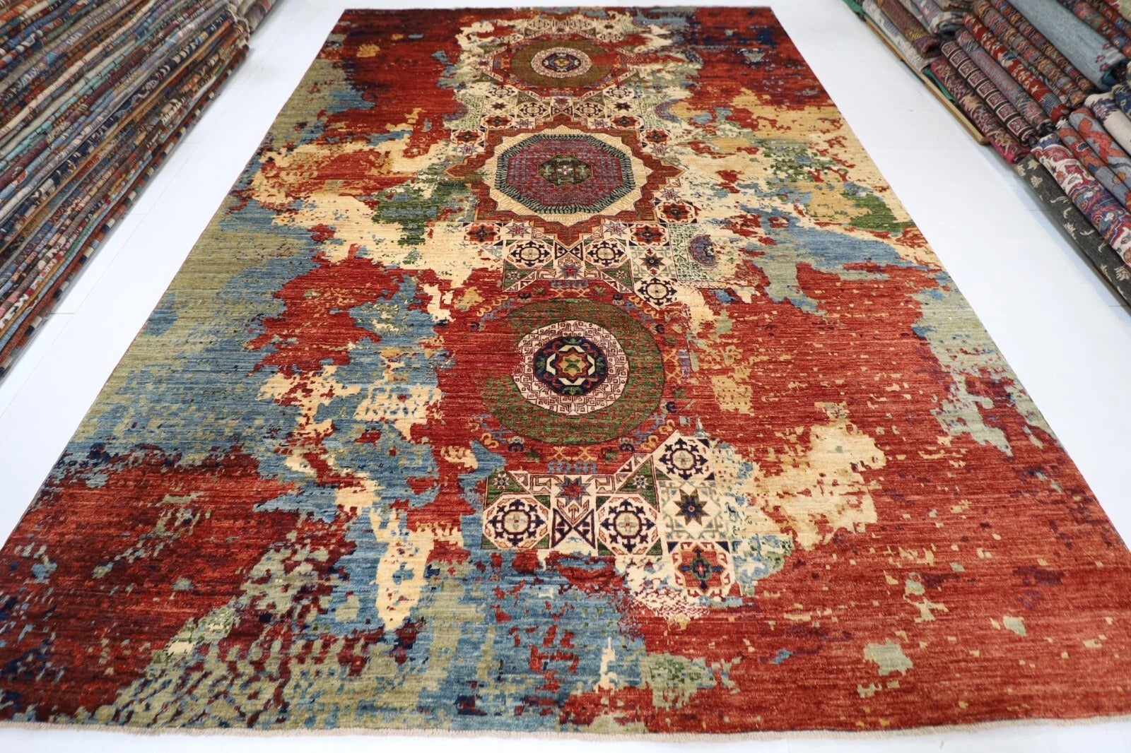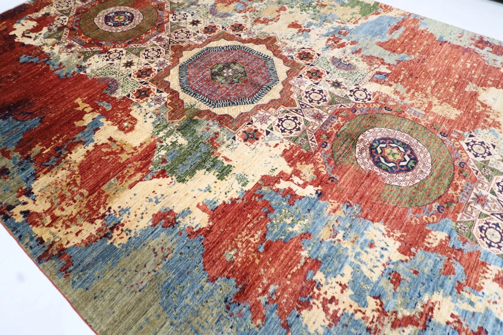 307 x 435 cm | Abstract Mamluk Afghan Hand Knotted Carpet