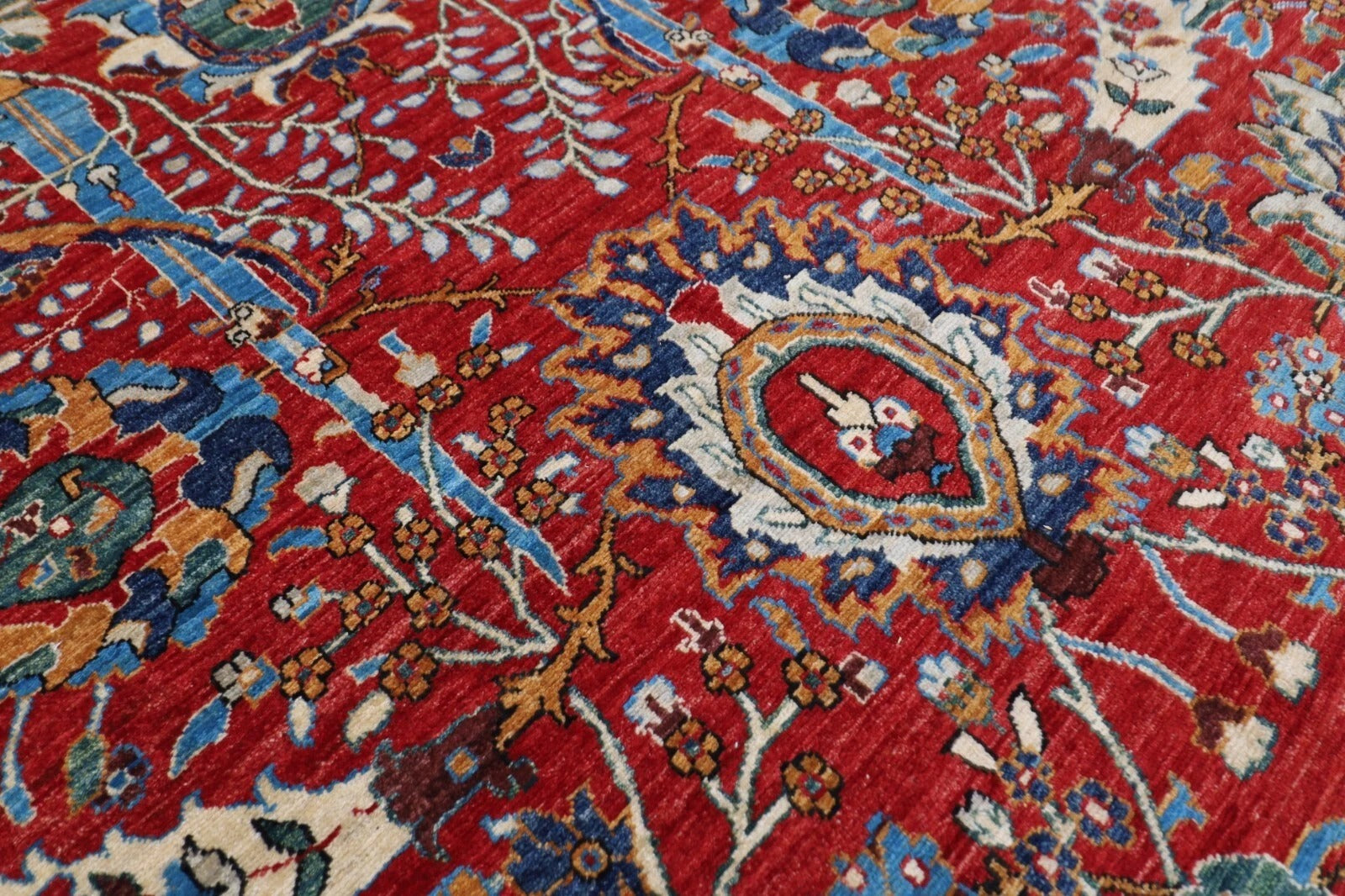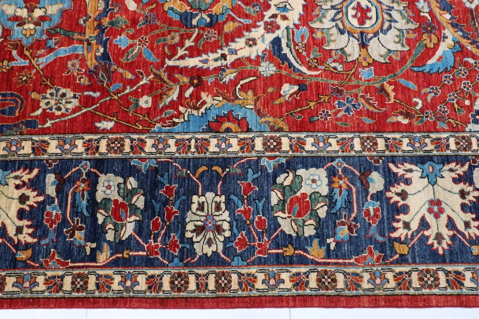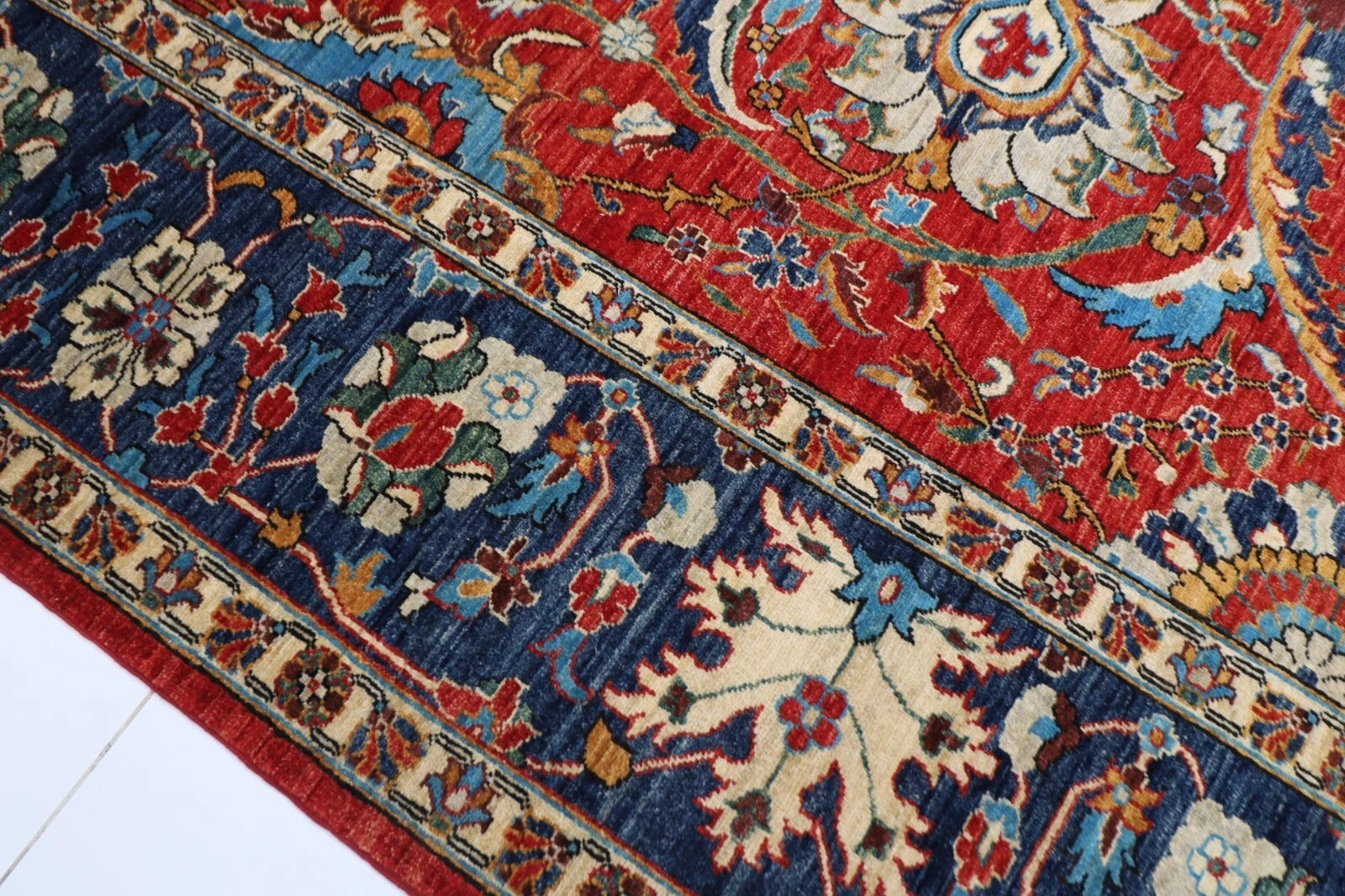 The photographs presented are captured indoor room lights without editing to show the beauty and vibrancy of the rug and also to give you the better idea that how the rug will look in your room and office, the colors in the rug will be perceived differently depending on the angle you view it from.