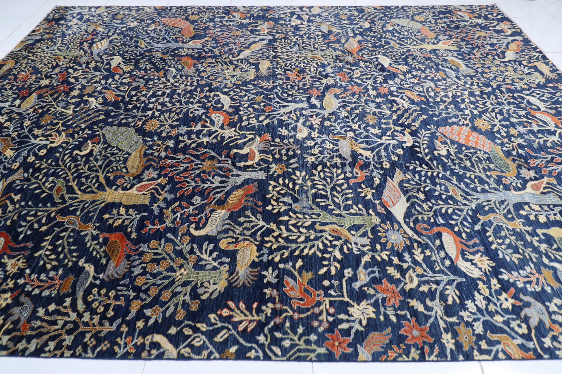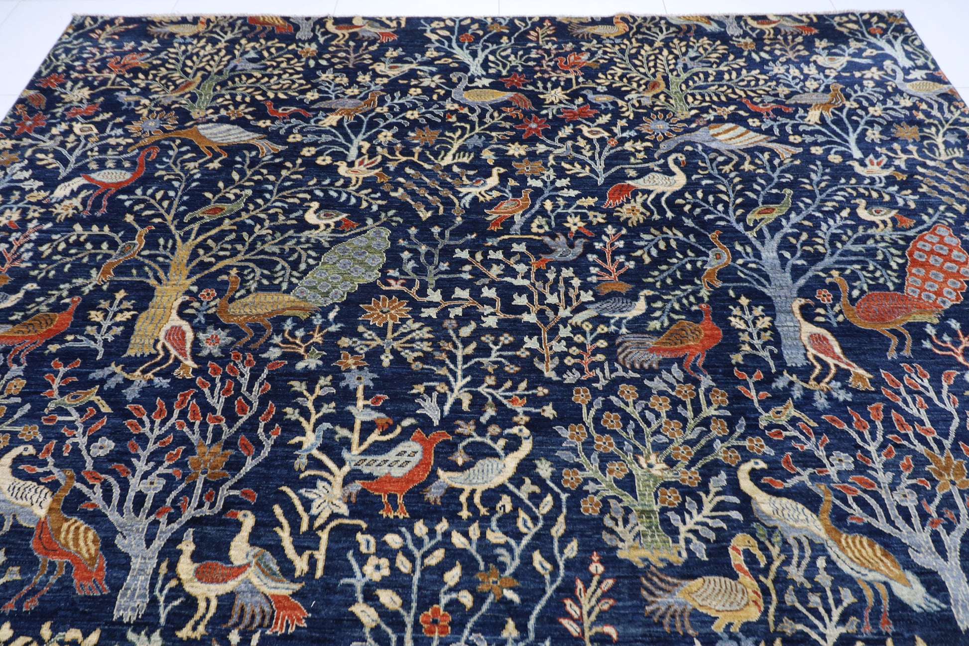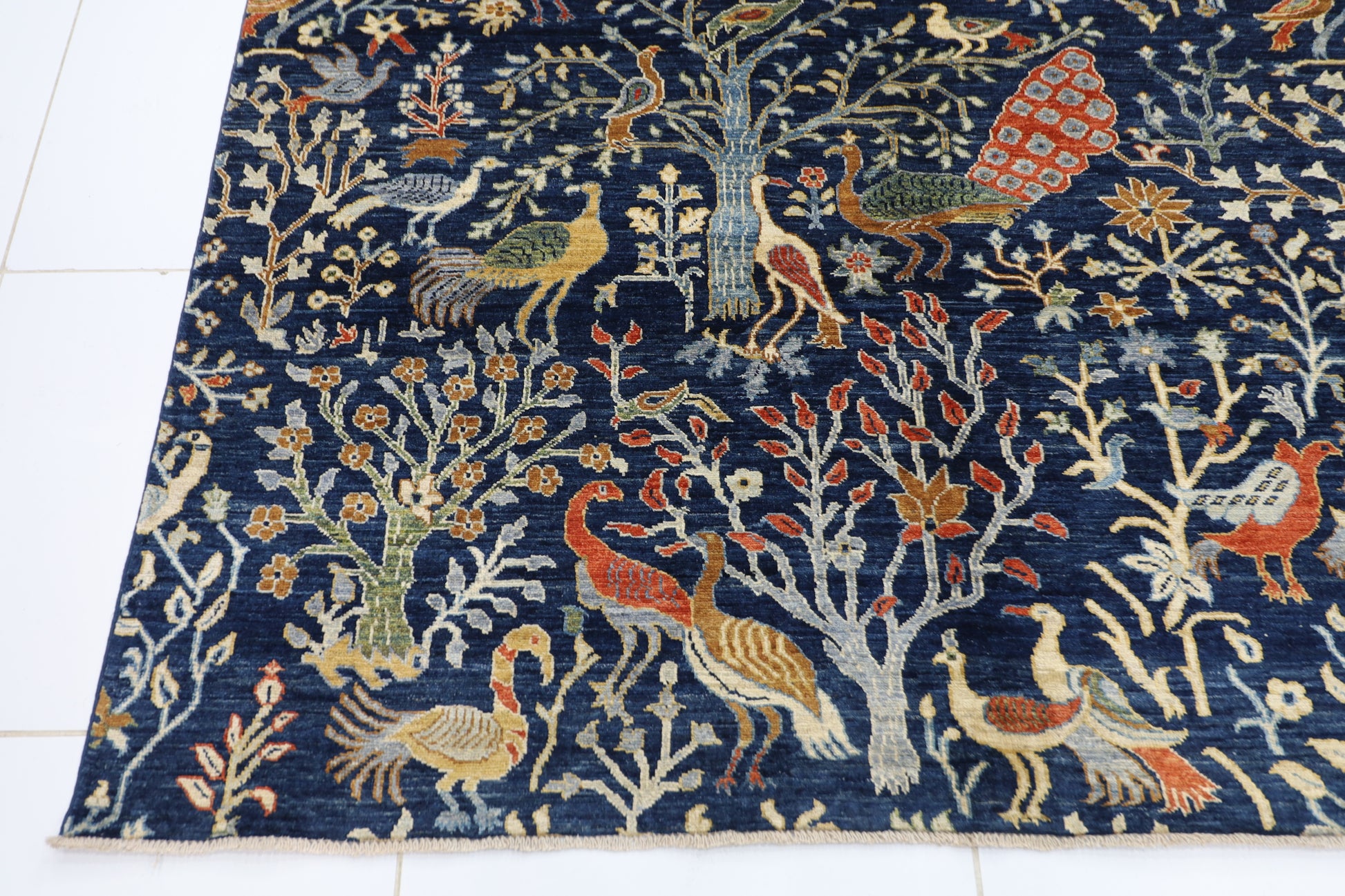 300 x 420 cm | Birds Navy Blue Afghan Tribal Hand Knotted Carpet