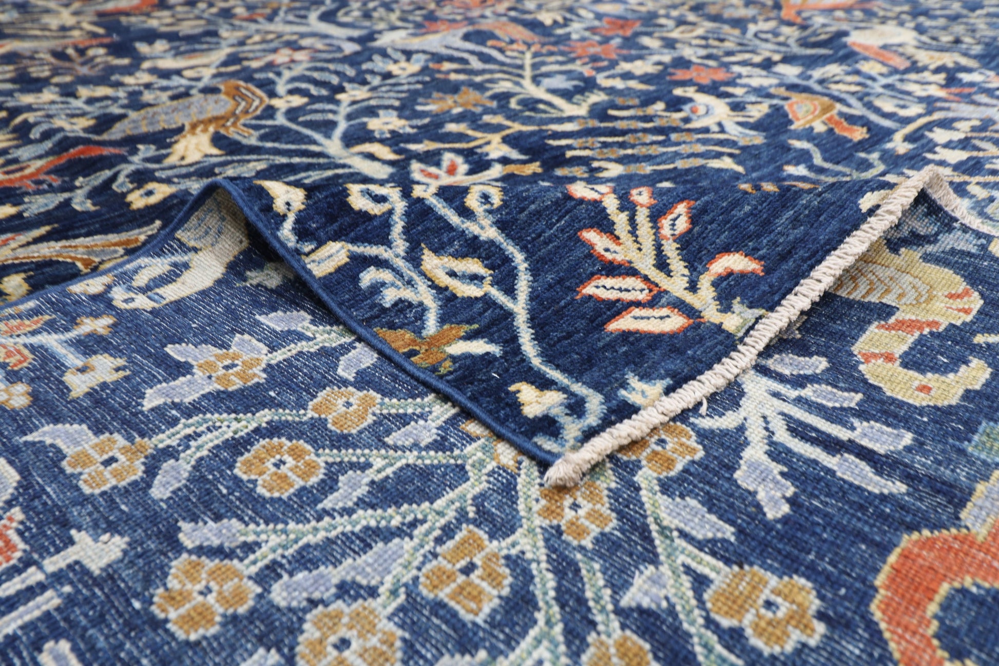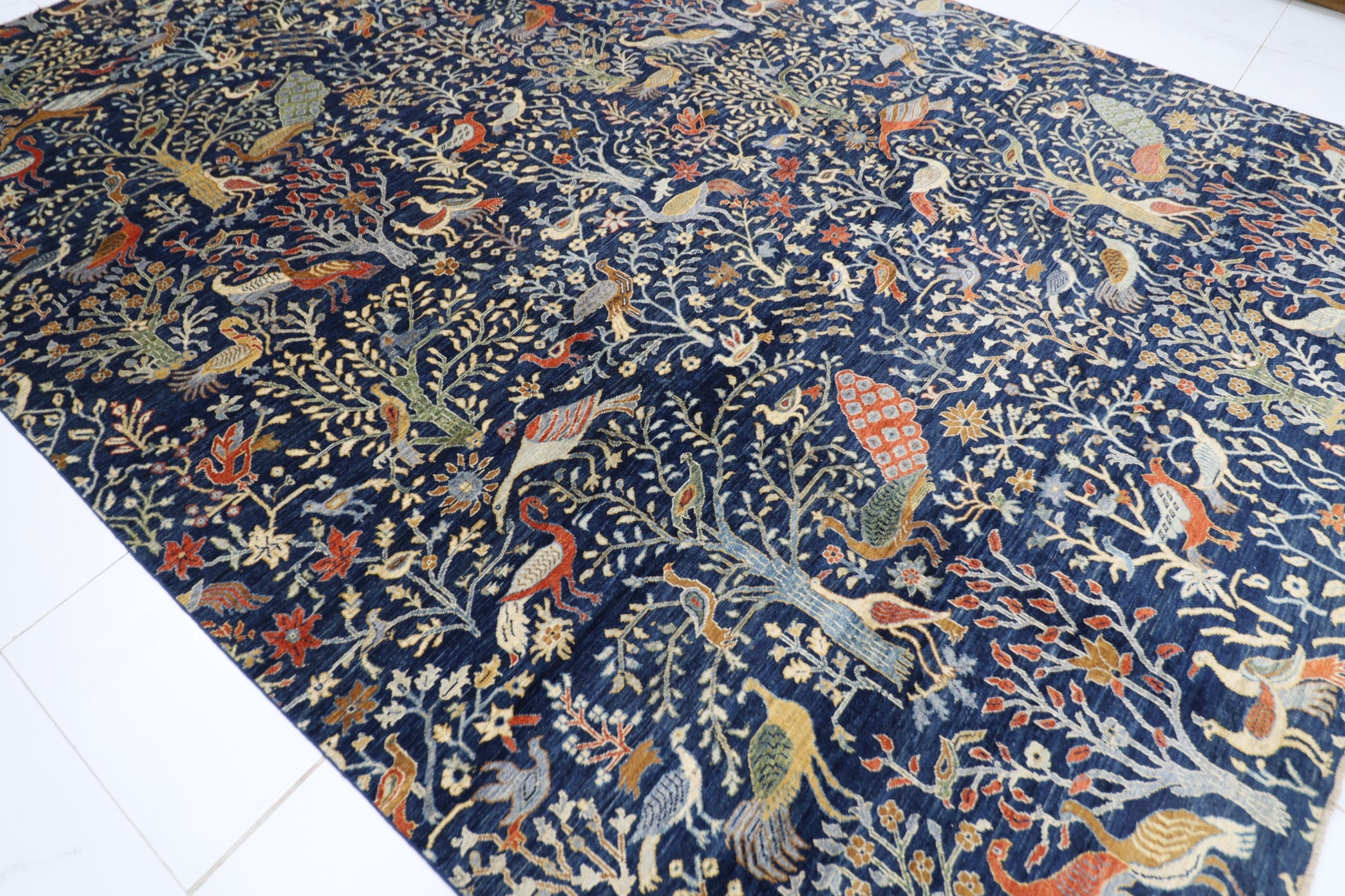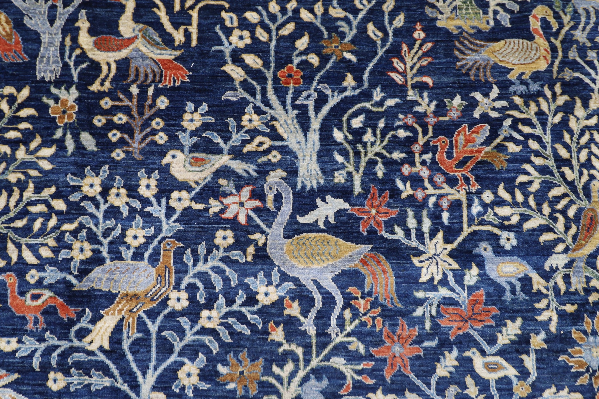 300 x 420 cm | Birds Navy Blue Afghan Tribal Hand Knotted Carpet