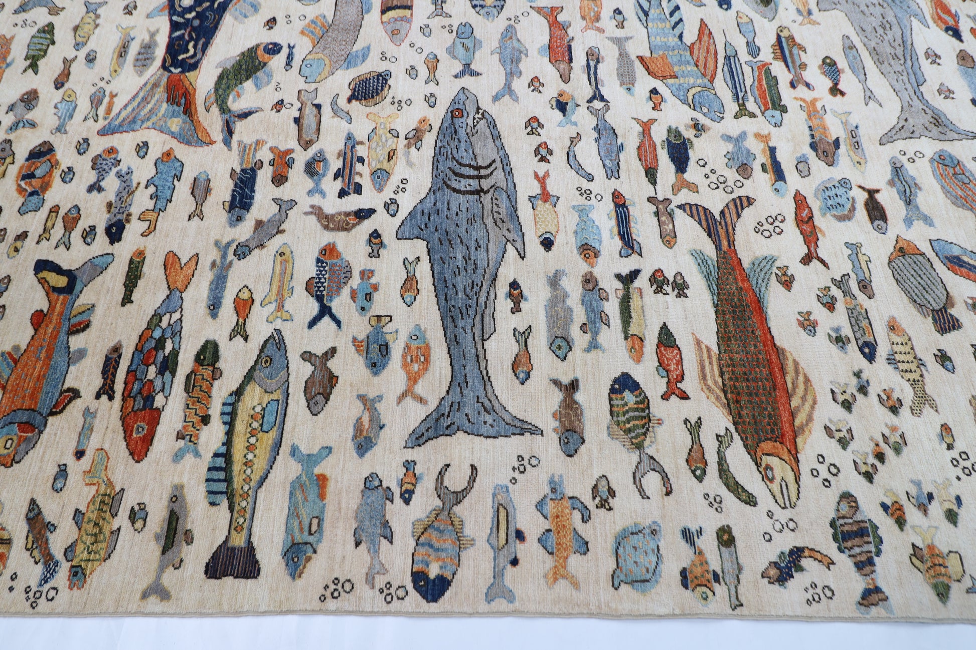 300 x 426 cm | Fish Beige Area Rug Afghan Hand Knotted veg Dye Wool carpet