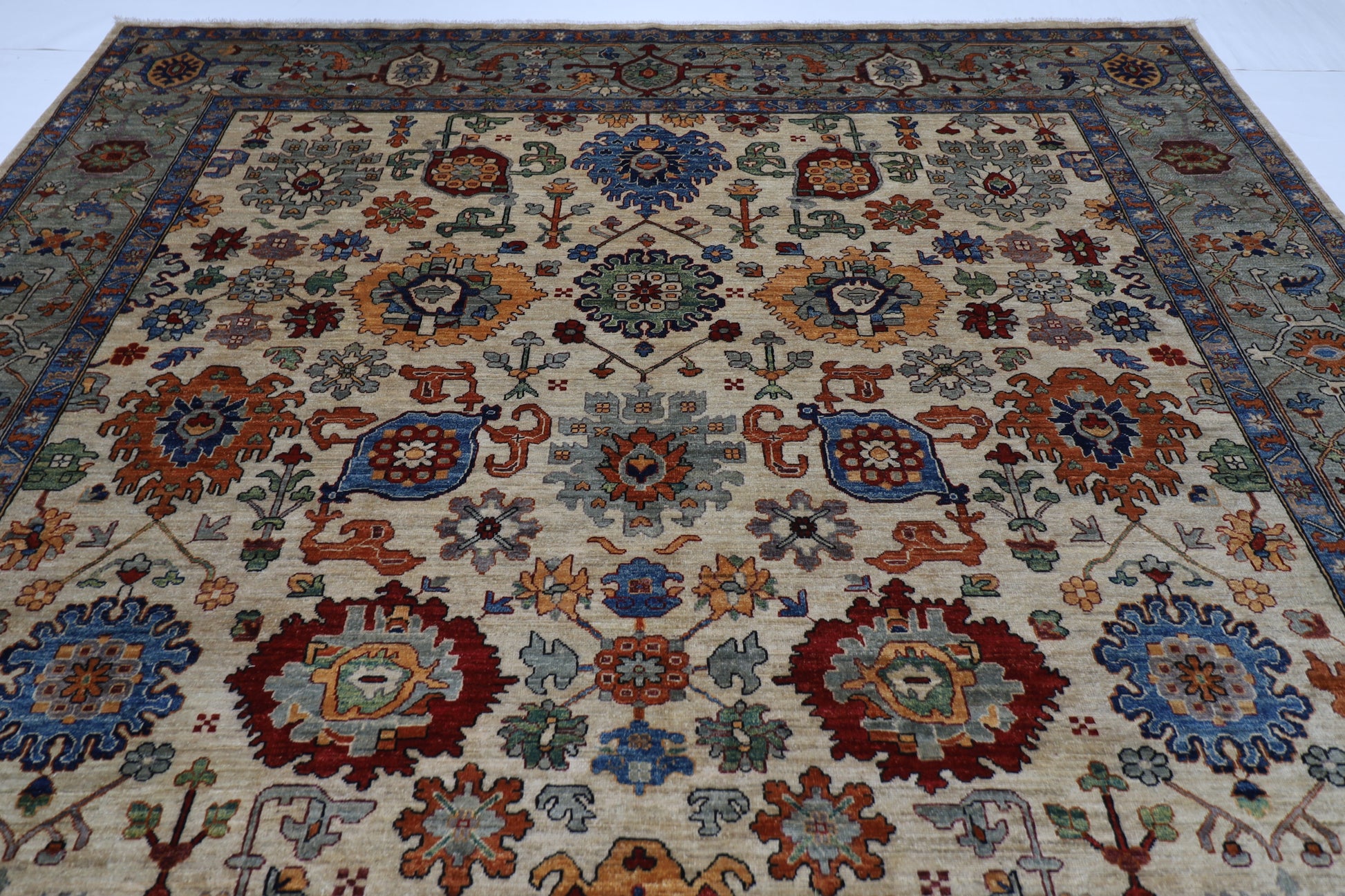 The photographs presented are captured indoor room lights without editing to show the beauty and vibrancy of the rug and also to give you the better idea that how the rug will look in your room and office, the colors in the rug will be perceived differently depending on the angle you view it from.