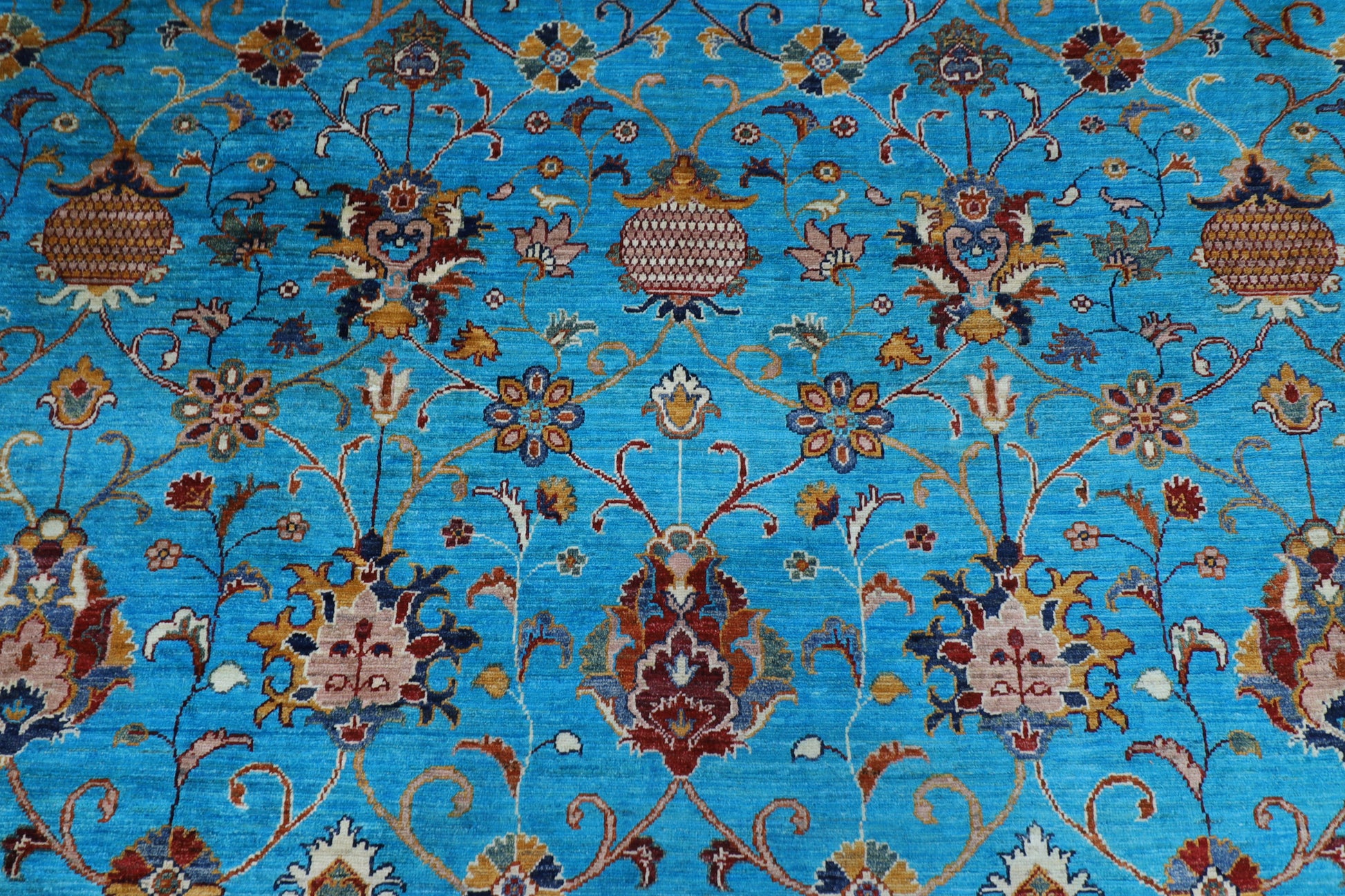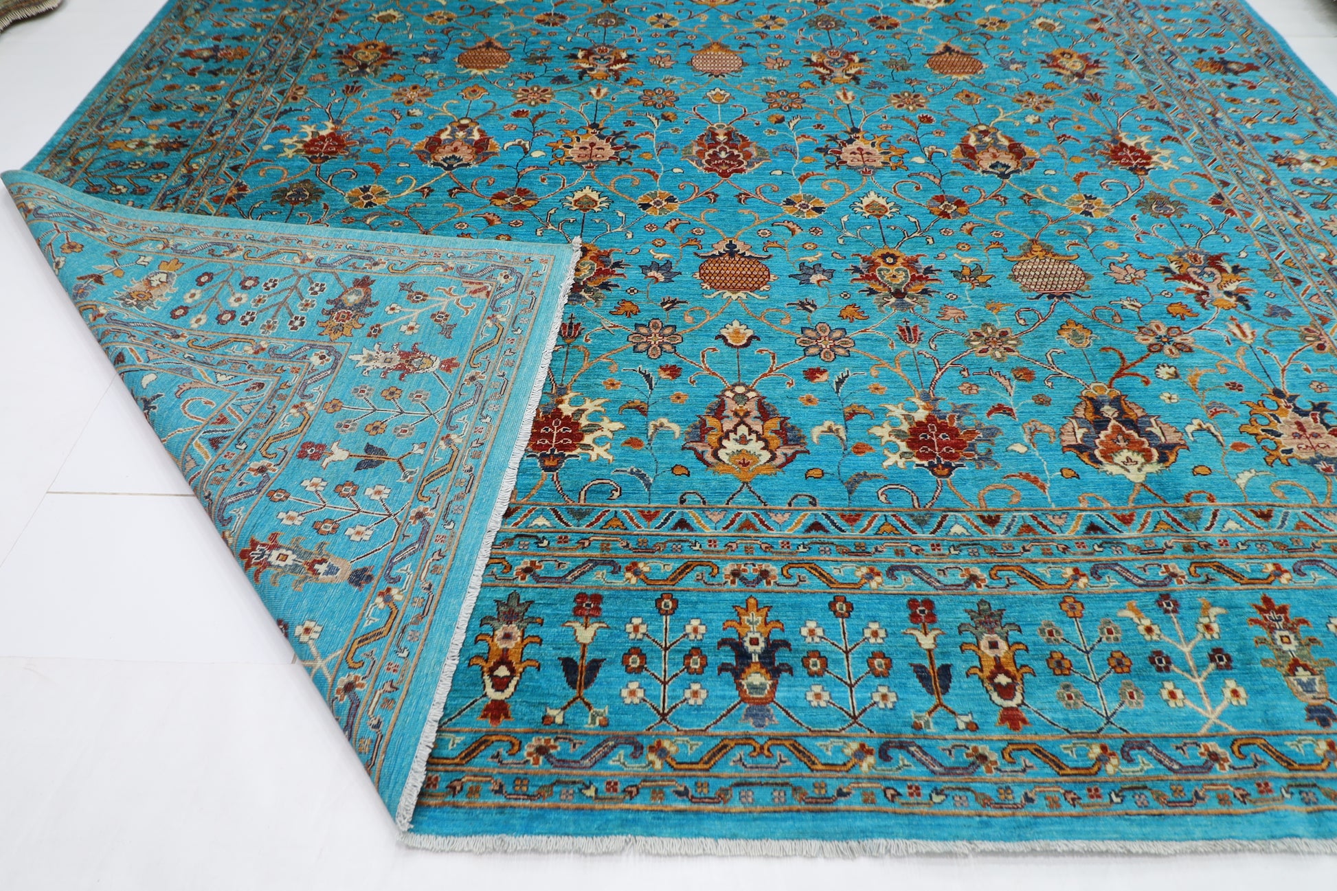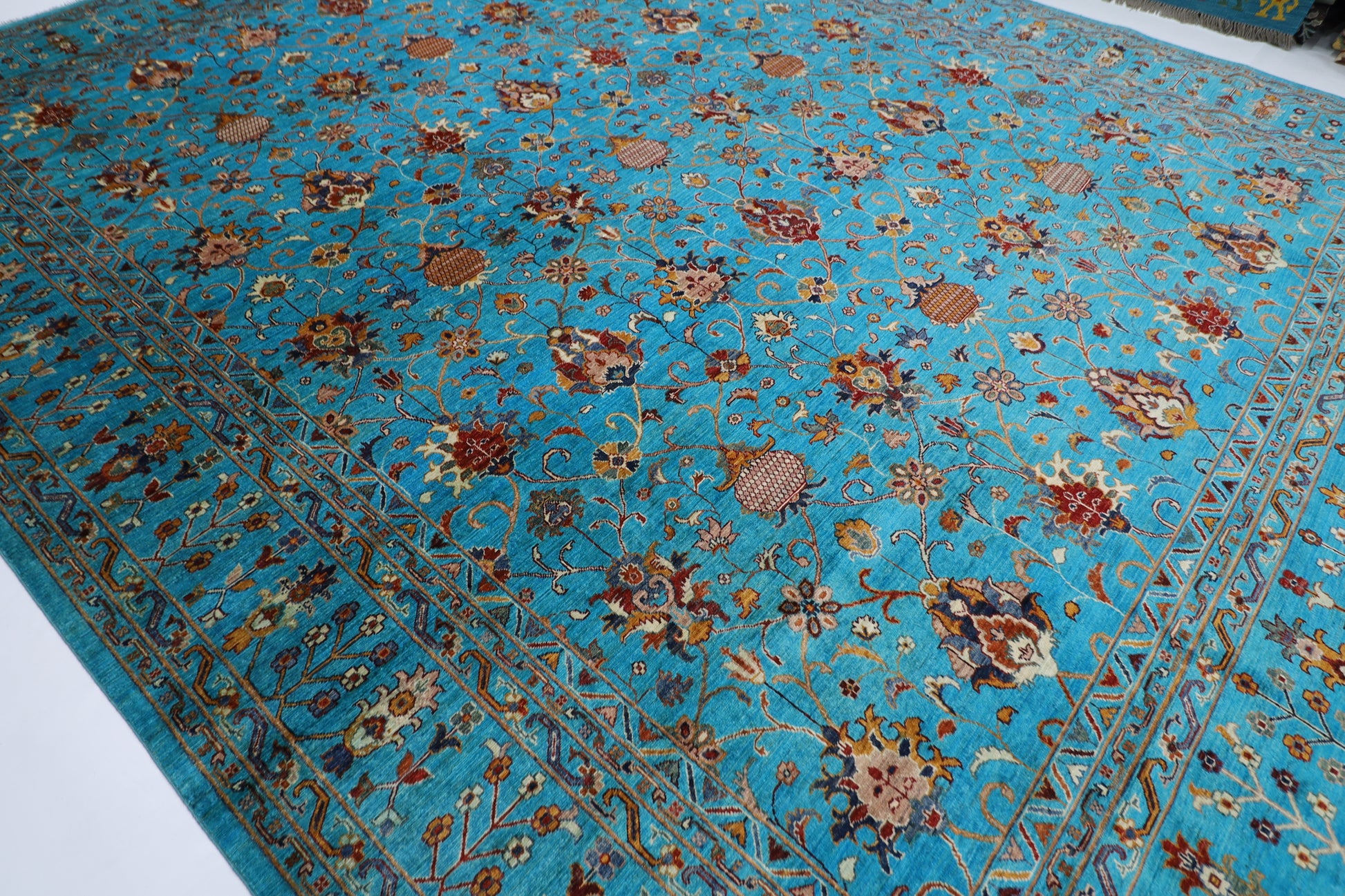 366 x 450 cm | Turquoise Sultani Afghan Tribal Hand Knotted Natural Veg Dye Wool Carpet