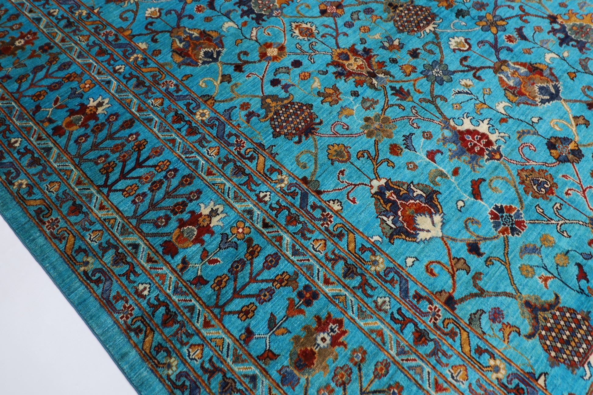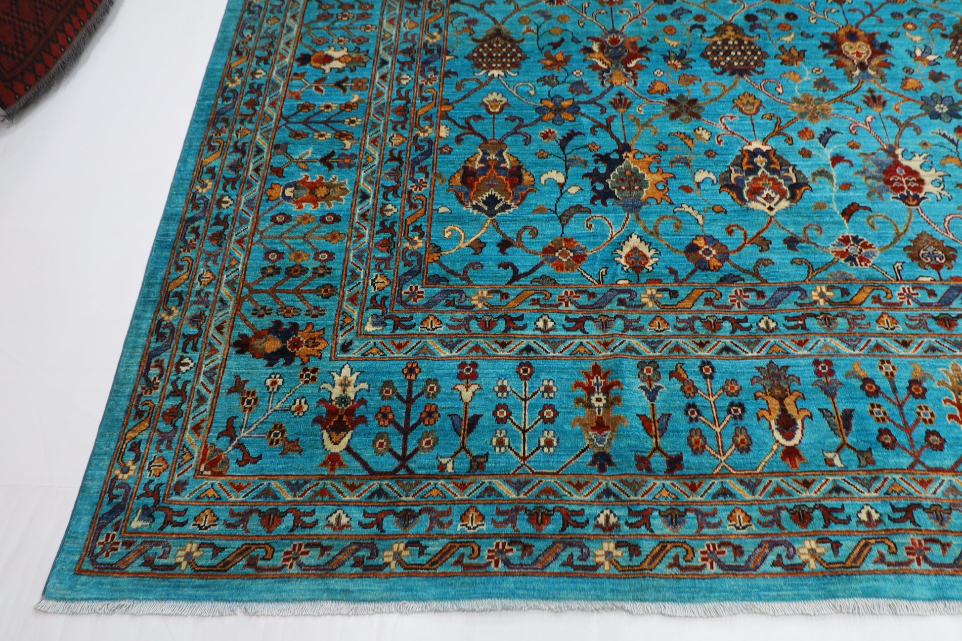 370 x 442 cm | Sultani Turquoise Afghan Tribal Hand Knotted Natural Veg Dye Wool Carpet