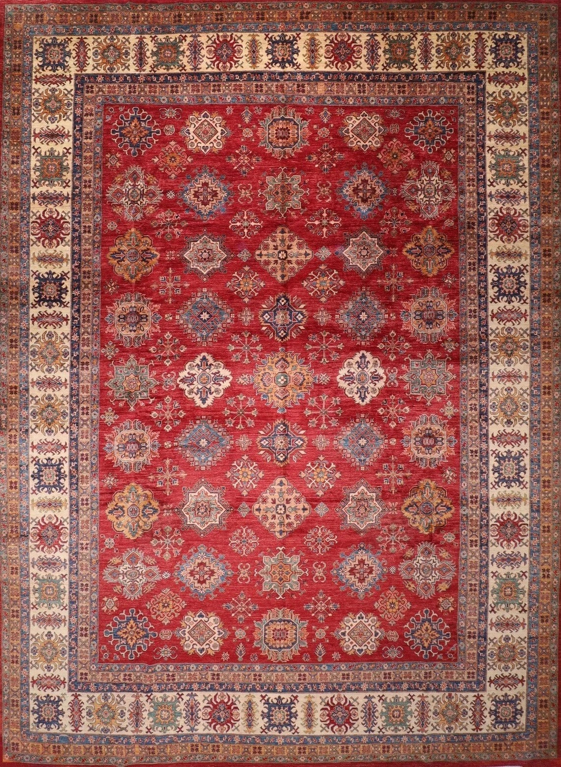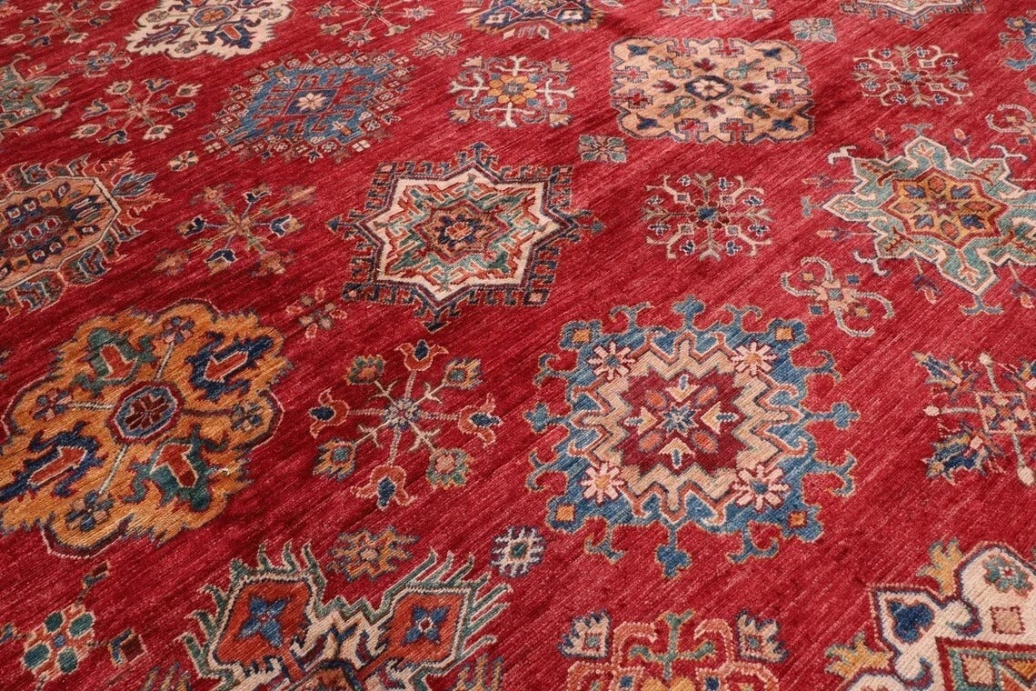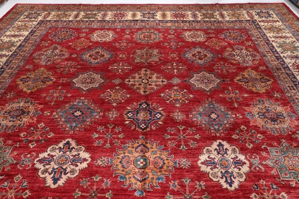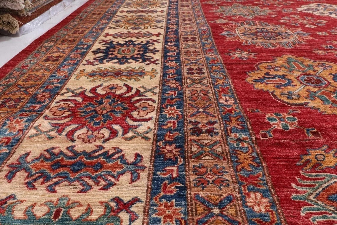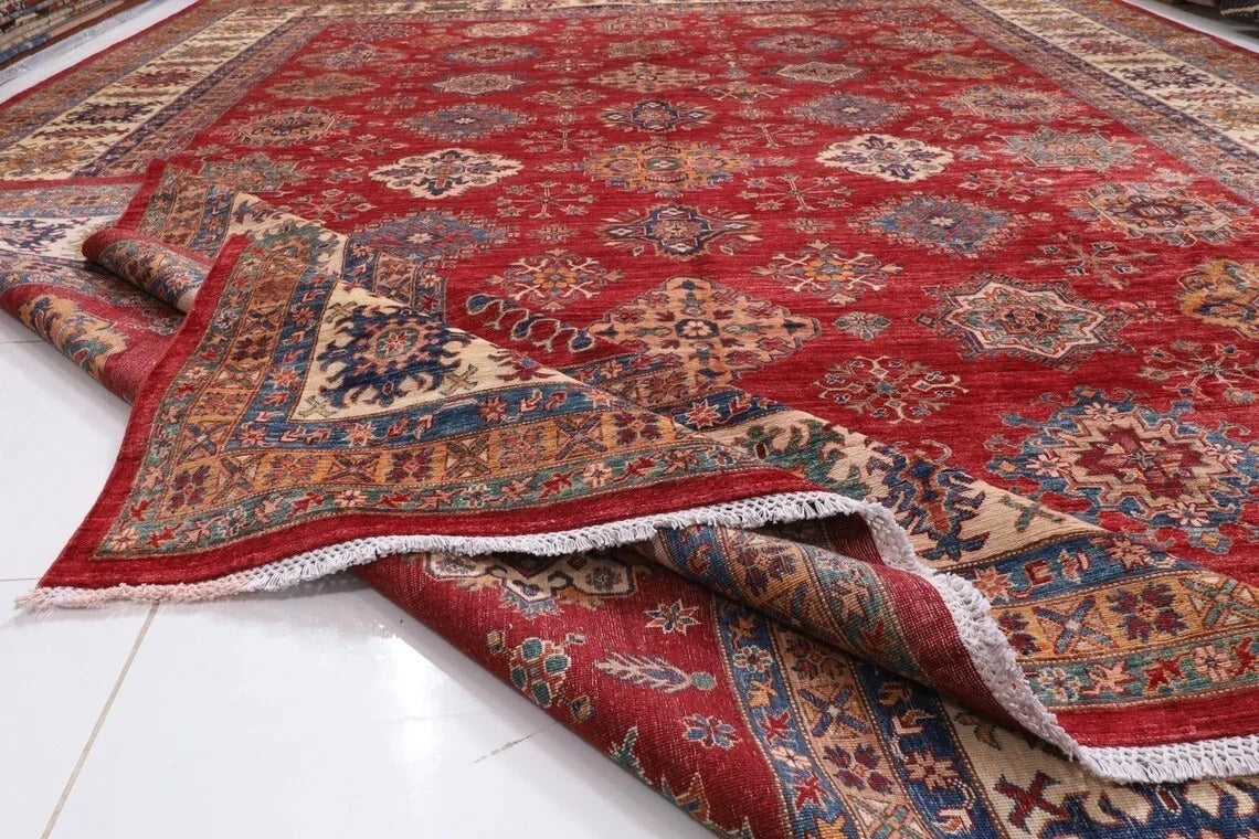382 x 513 cm | Beautiful timeless red Afghan Kazak Handmade carpet