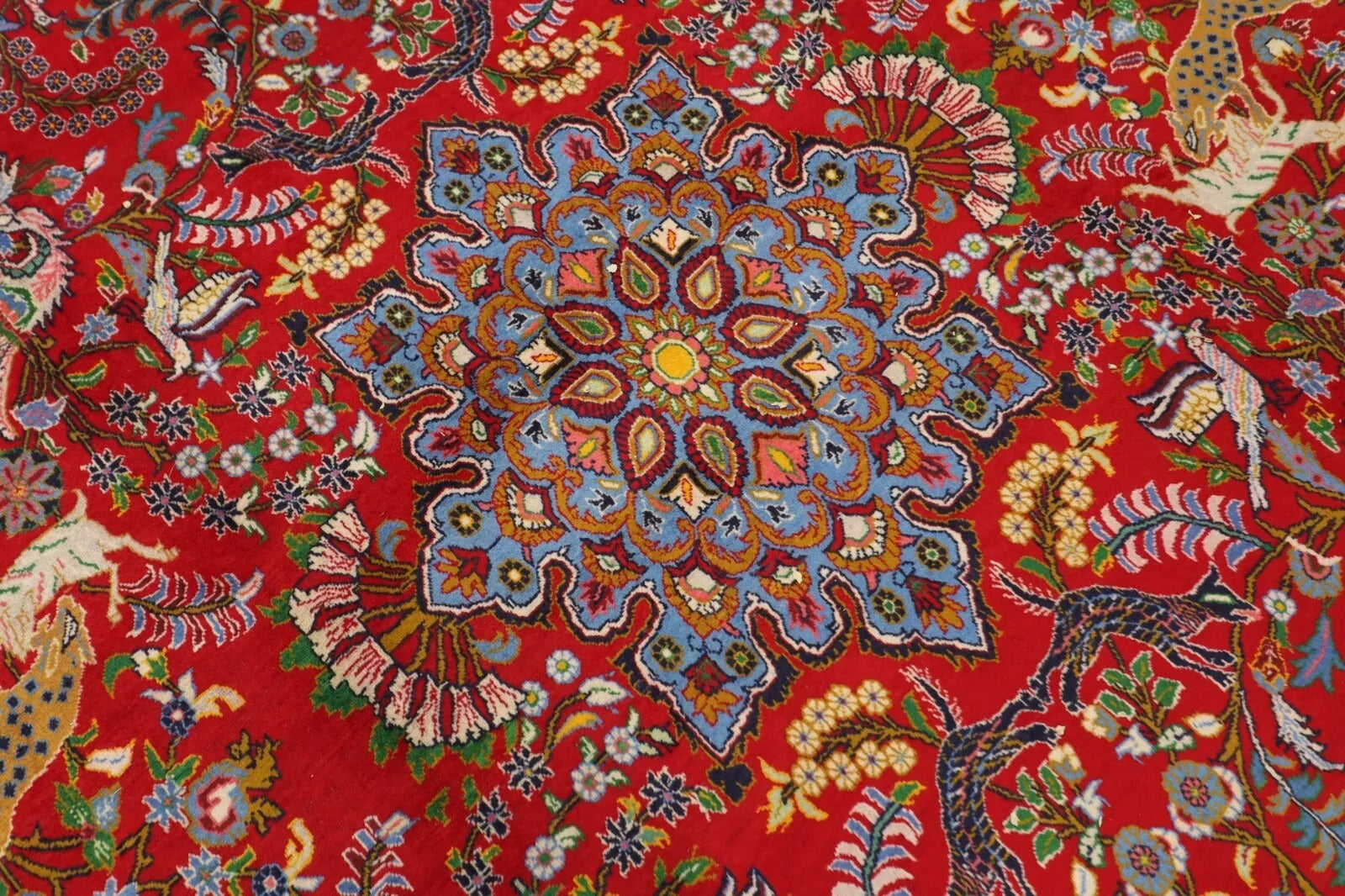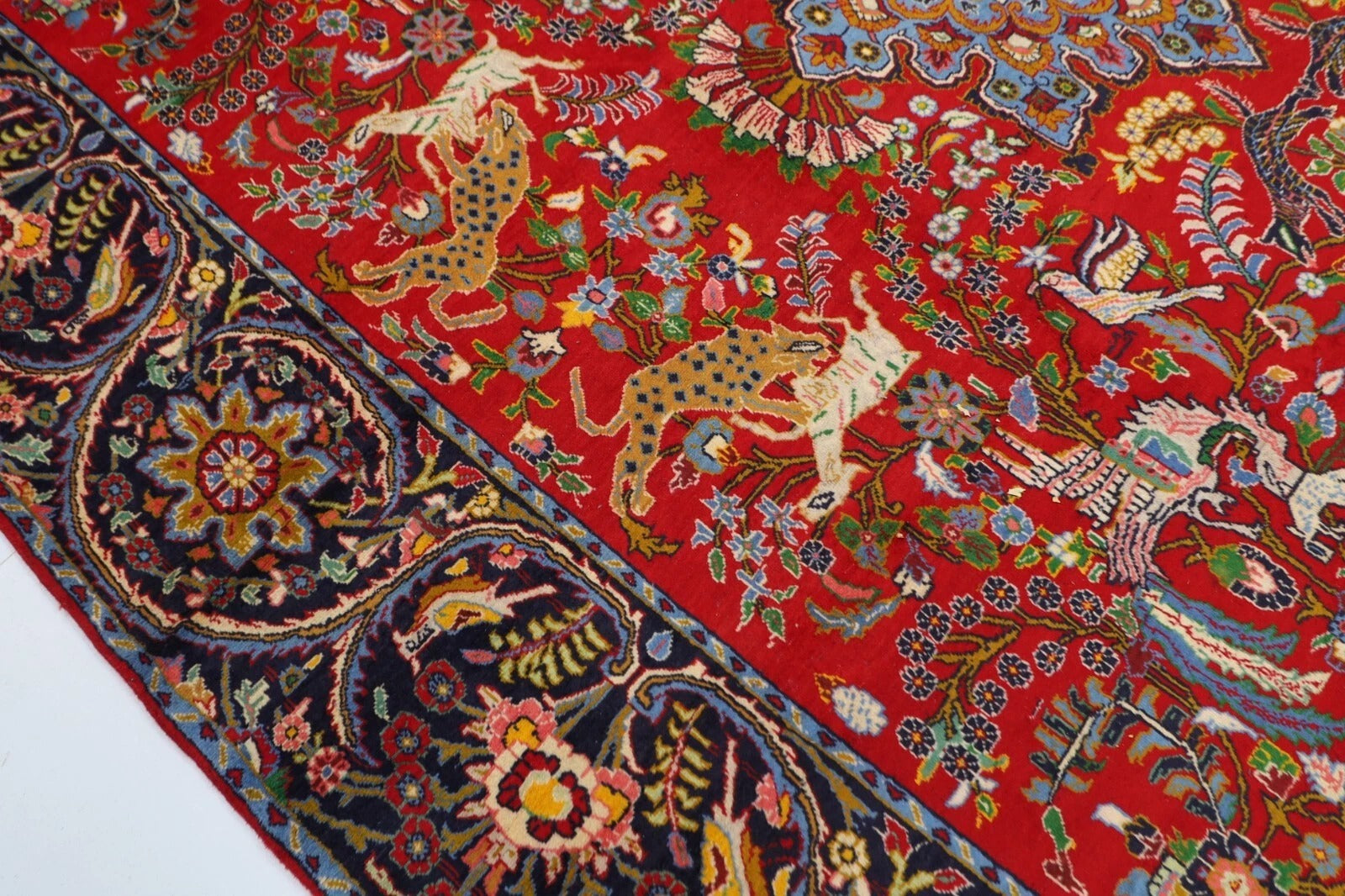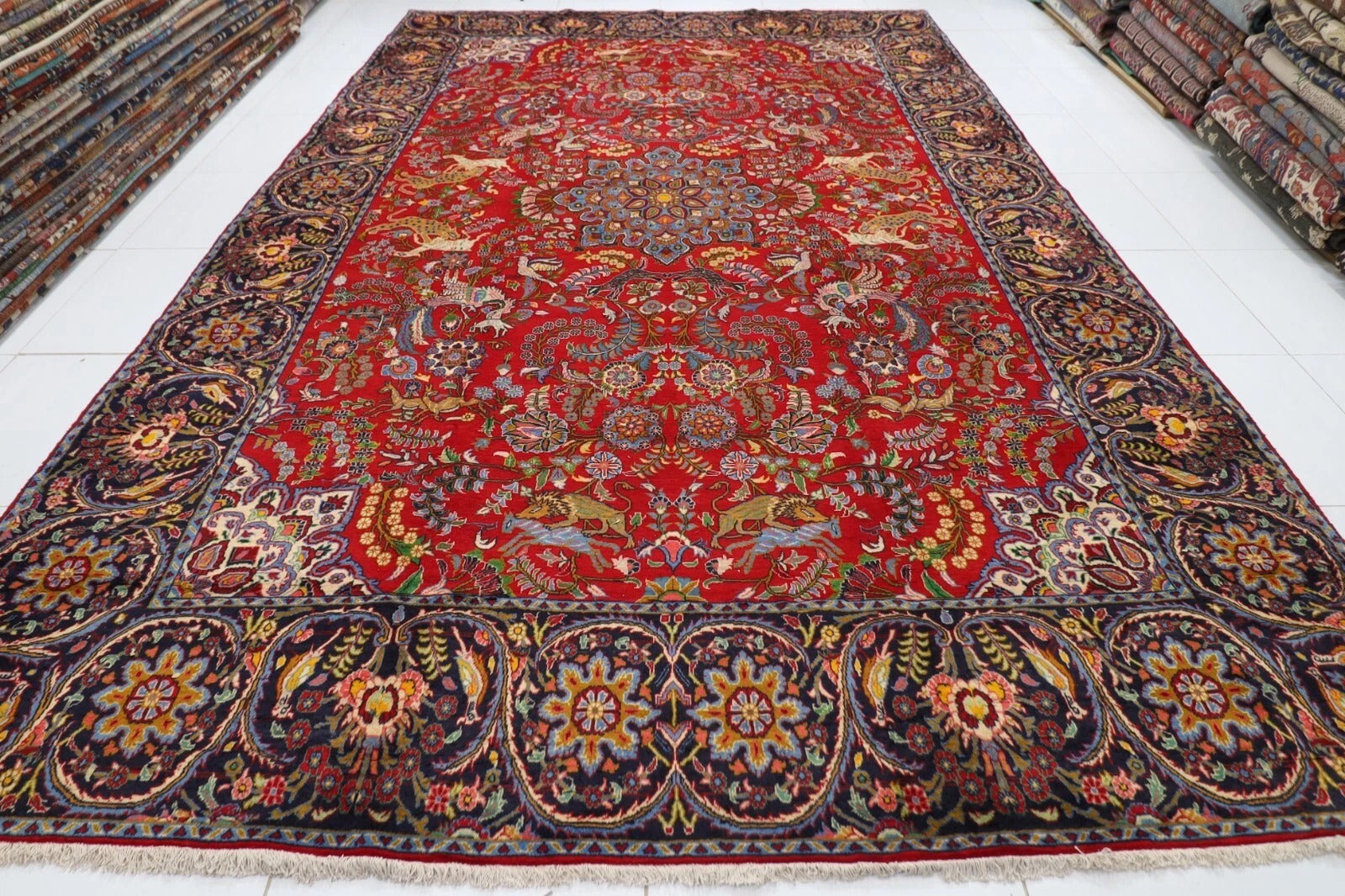 302 x 479 cm | Red Geometric Large Size Area Rug Hand Knotted Carpet Blue Color Rug