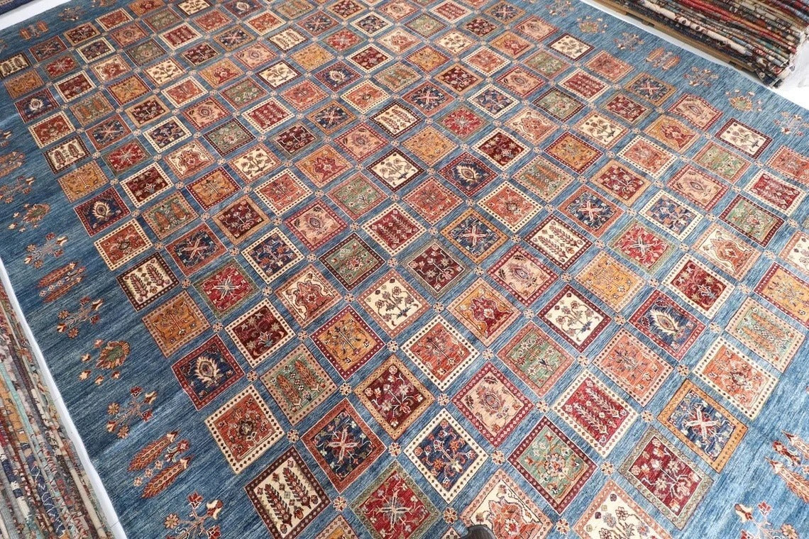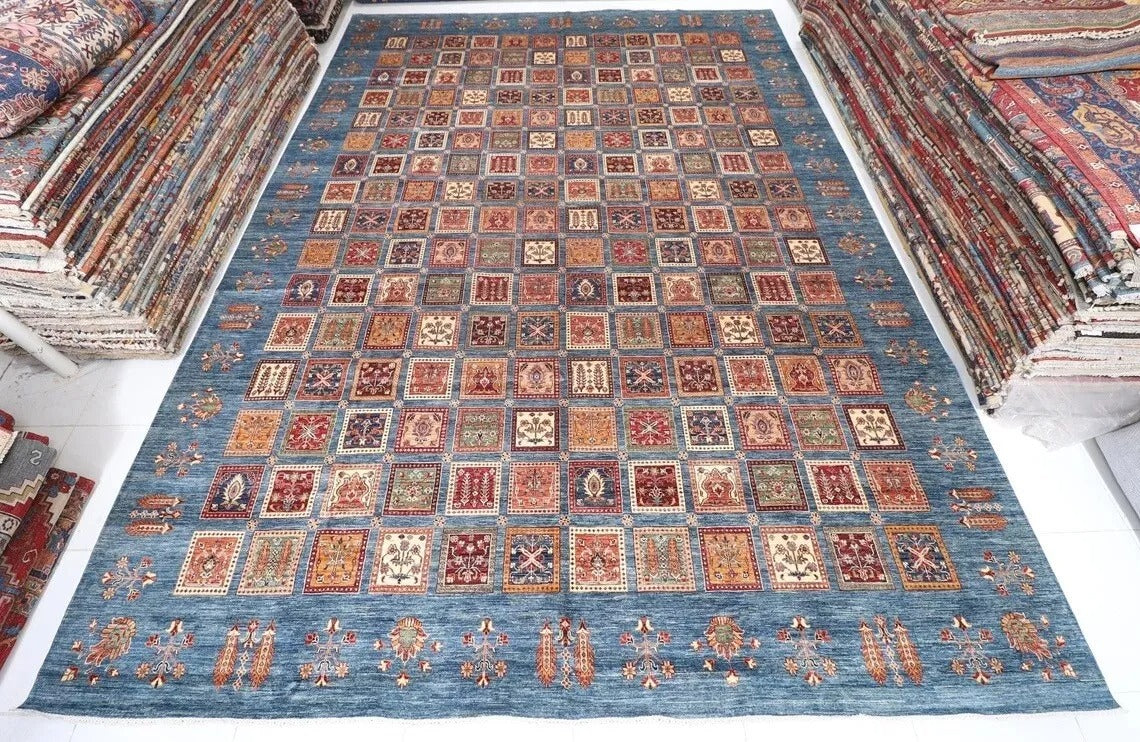 400 x 560 cm | Bakhtiari Large Size Area Rug Afghan Hand Knotted Carpet Blue Color Rug
