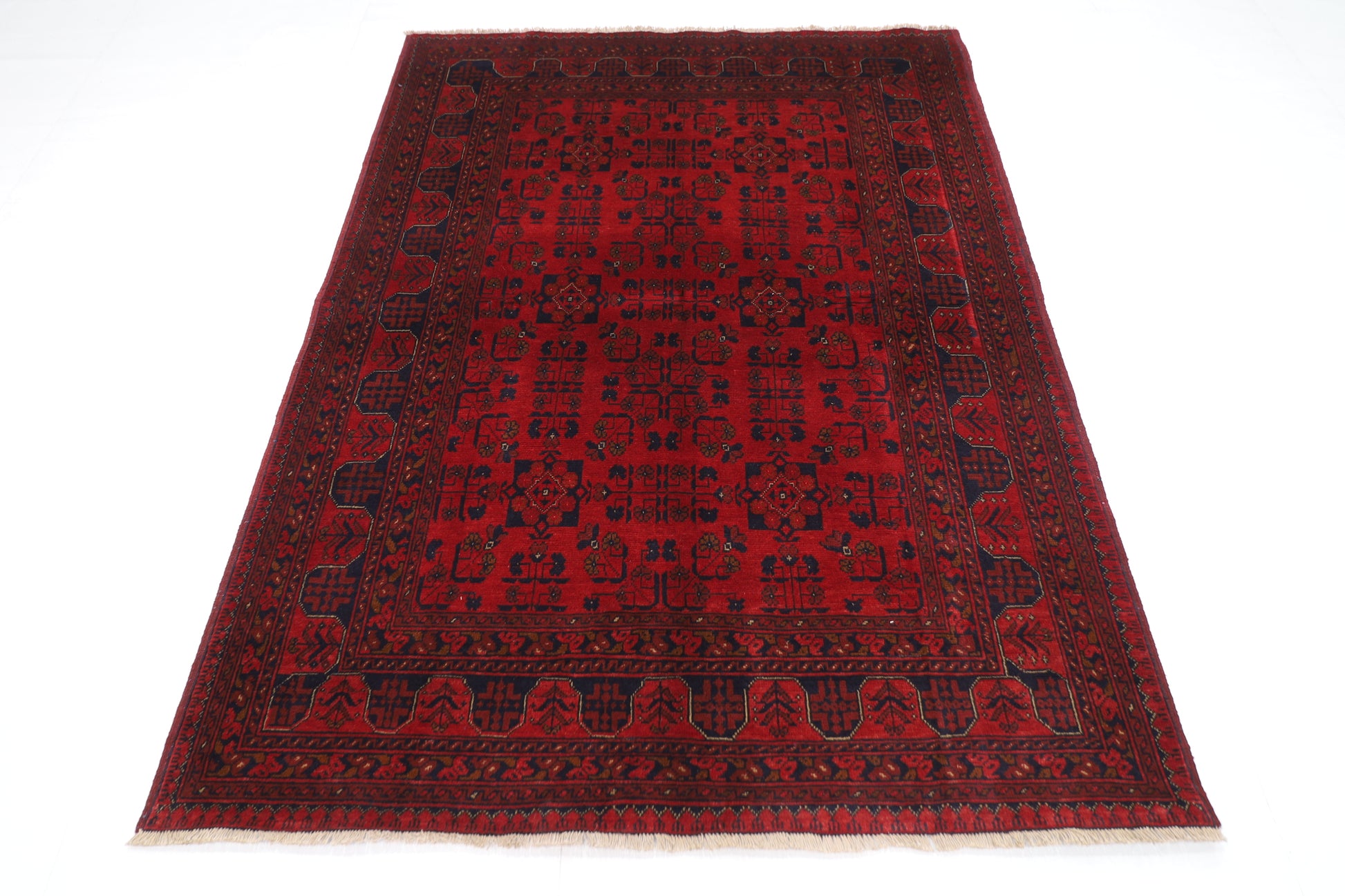 150 x 200 cm | Red Khal Mohammadi Afghan Tribal Hand Knotted Veg Dye Wool Carpet
