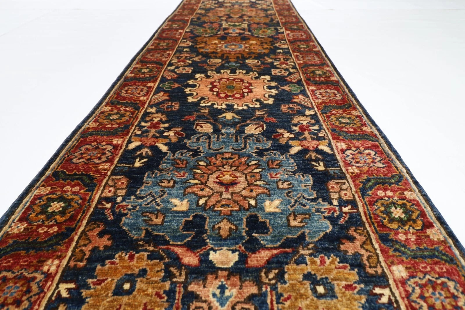 73 x 935 cm | Long Navy Blue Afghan Tribal Hand Knotted Wool Runner