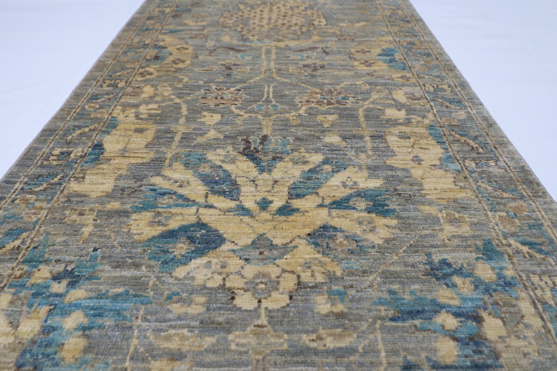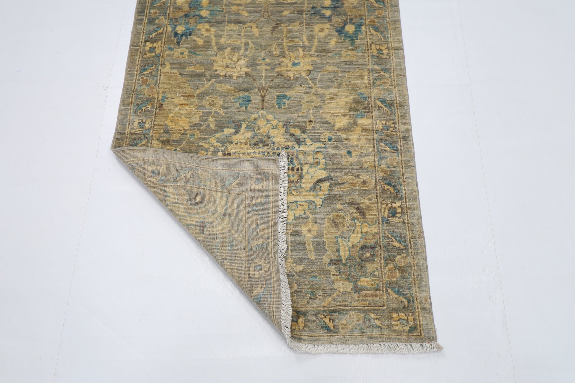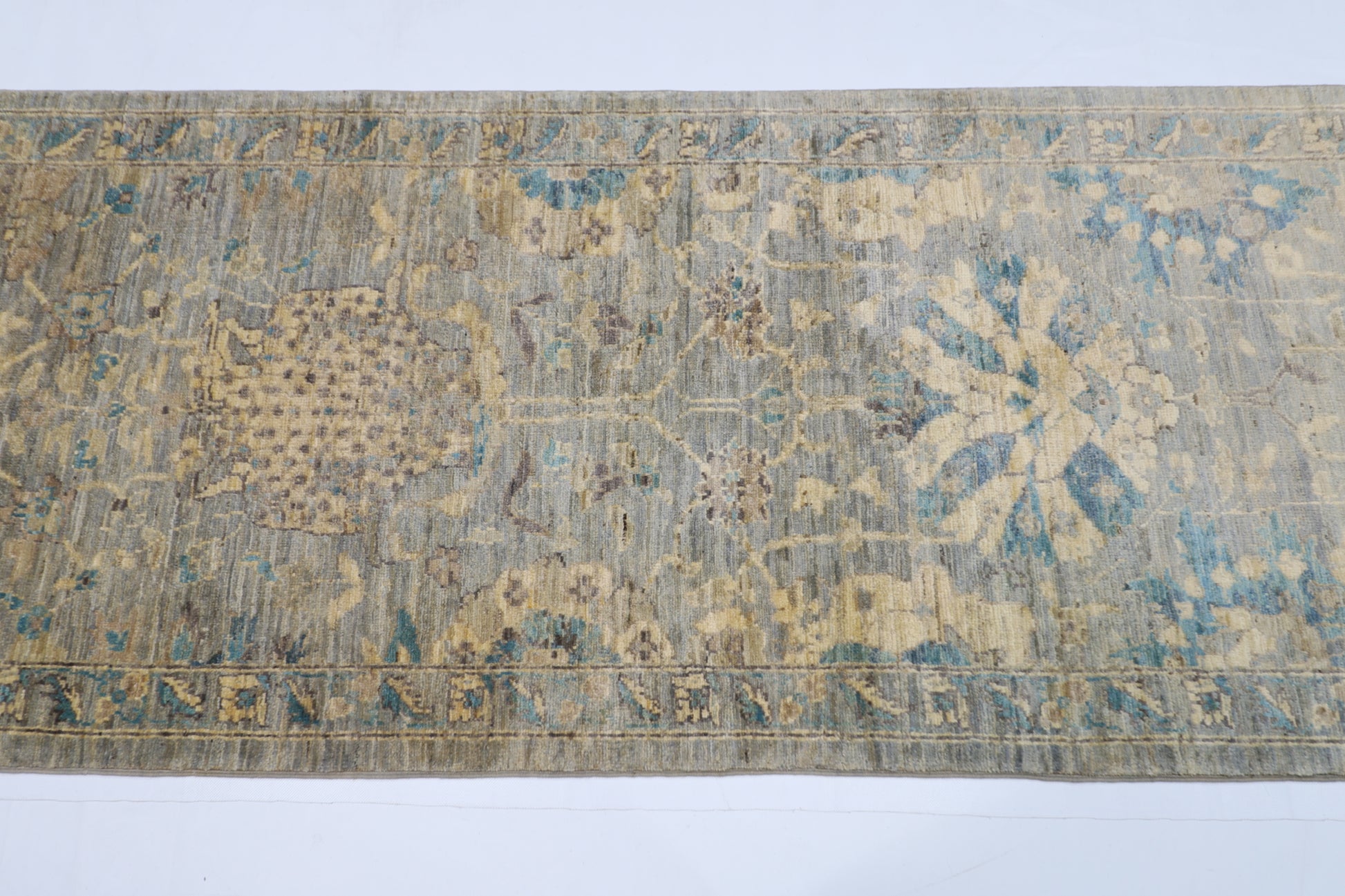 78 x 298 cm | Floral Gray Runner Rug Afghan Hand Knotted veg Dye Wool carpet
