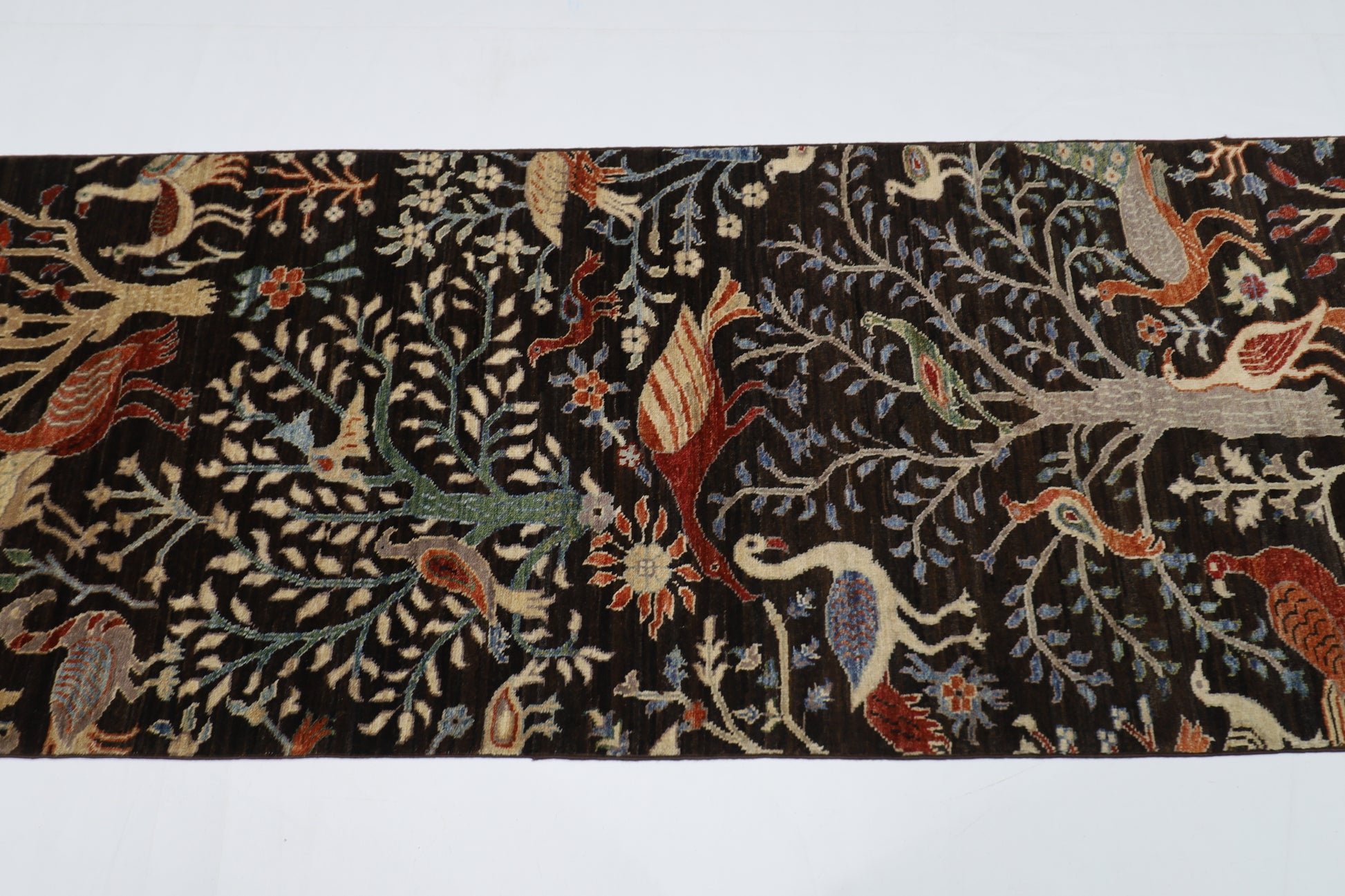 82 x 299 cm | Birds Black Runner Rug Afghan Hand Knotted veg Dye Wool carpet