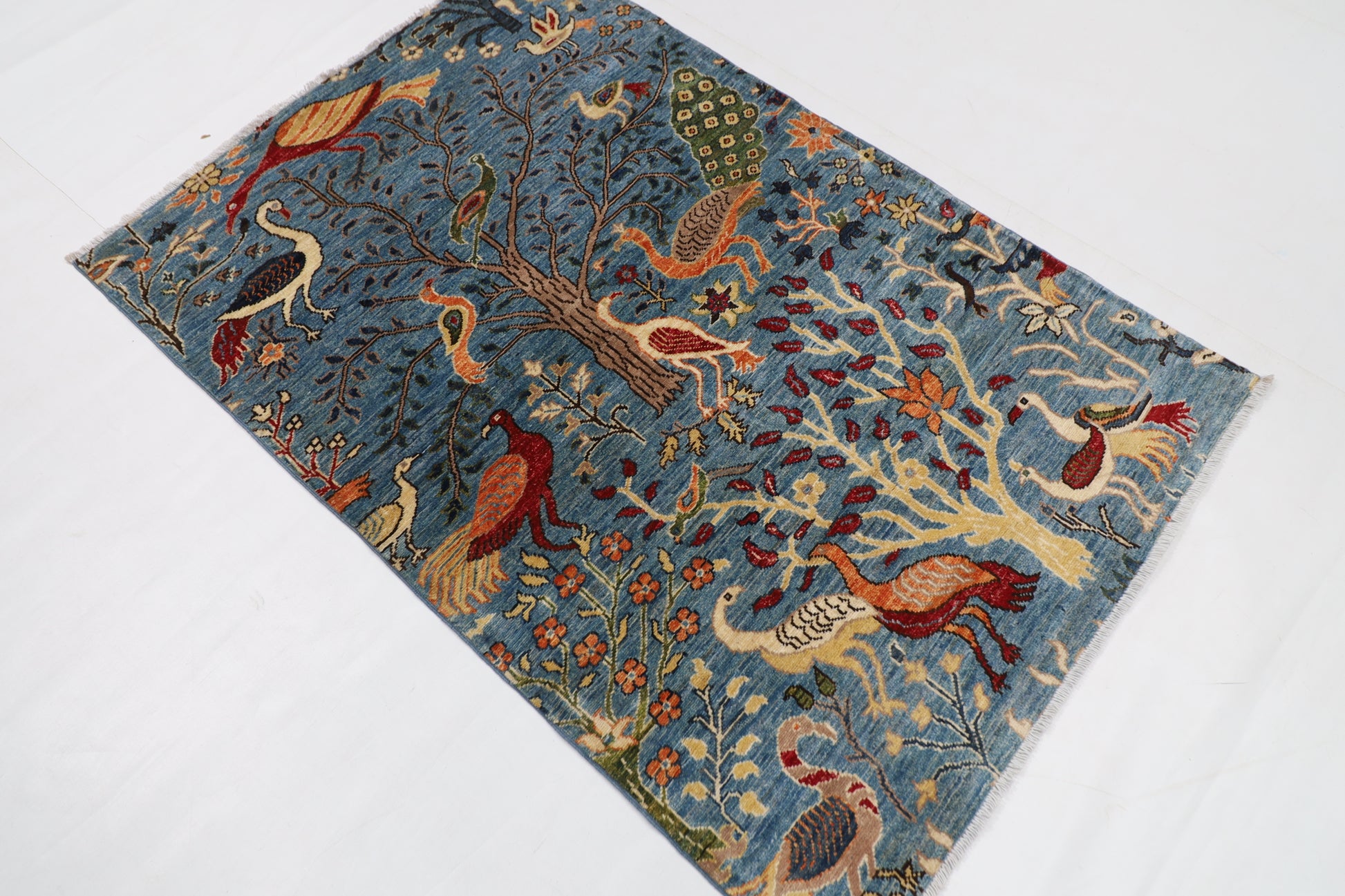 102 x 152 cm | Tribal Birds Area Rug Afghan Hand Knotted veg Dye Wool carpet