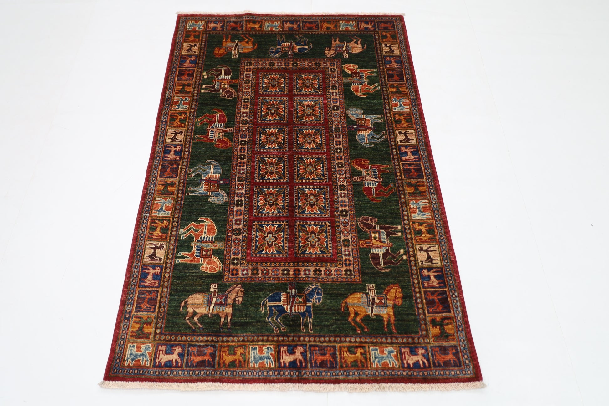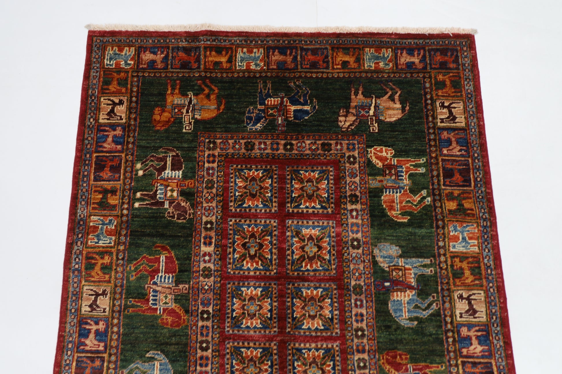 101 x 152 cm | Pazyryk Afghan Tribal Hand Knotted Natural Veg Dye Wool Carpet