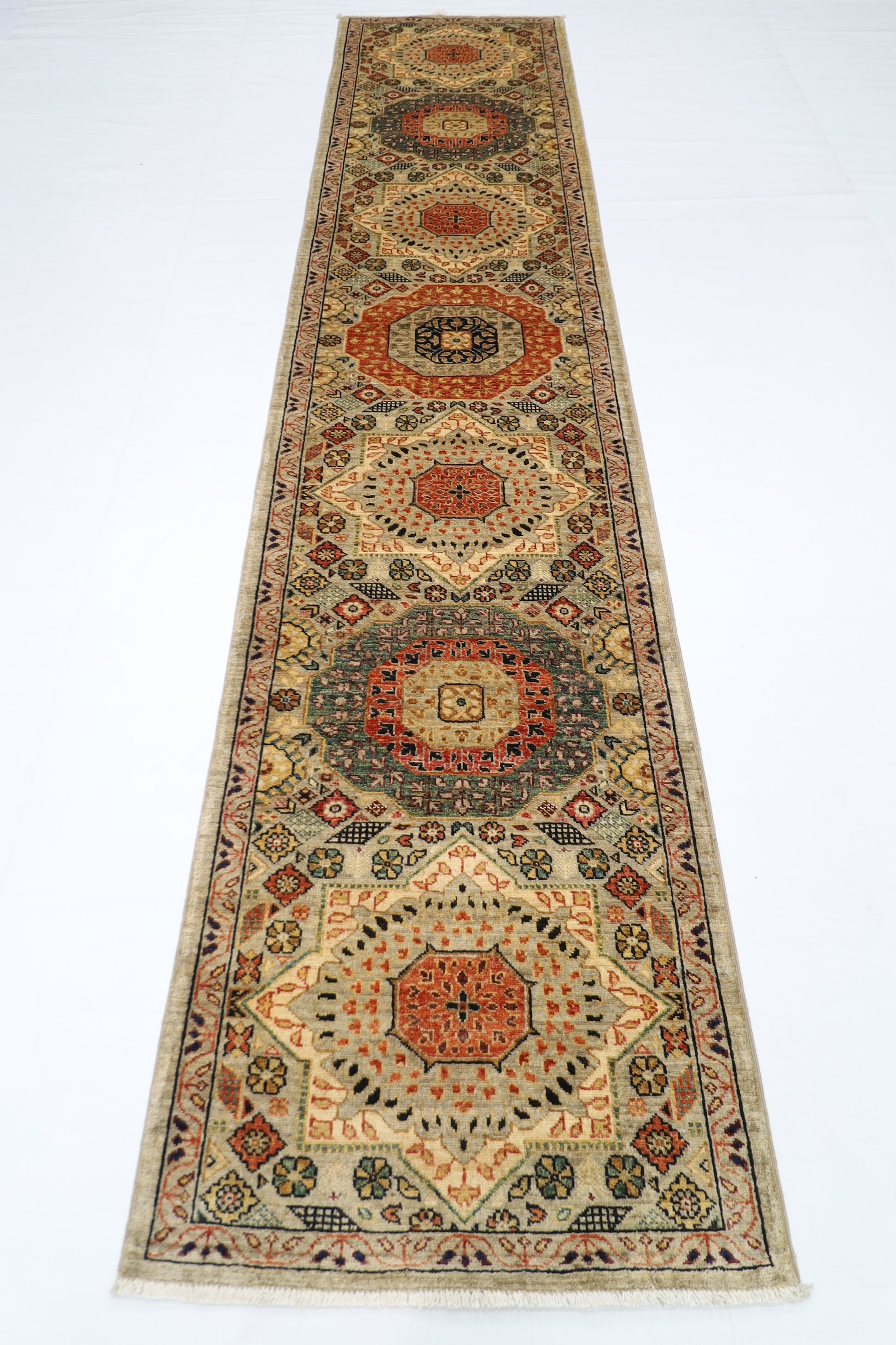 80 x 357 cm | Mamluk Afghan Tribal Hand Knotted Veg Dye Wool Runner