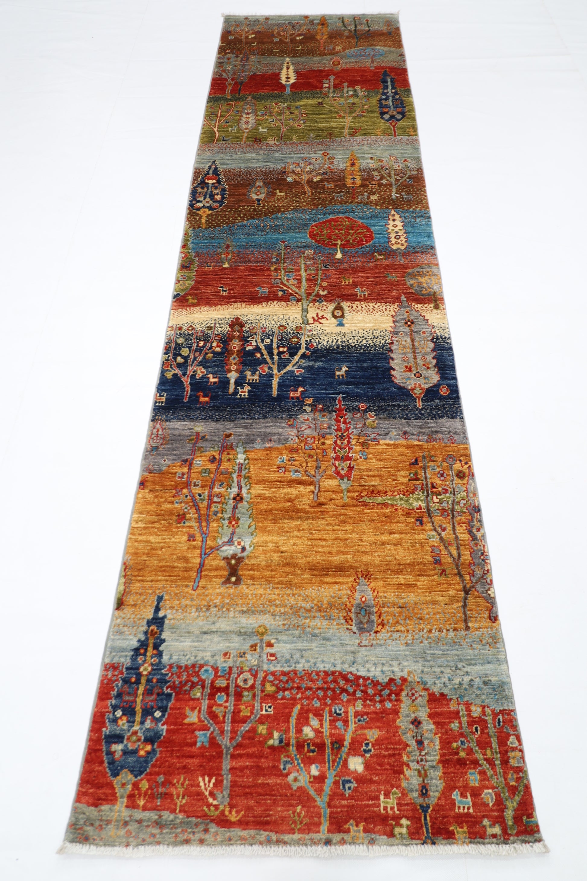 78 x 304 cm | Landscape Afghan Tribal Hand Knotted Veg Dye Wool Runner