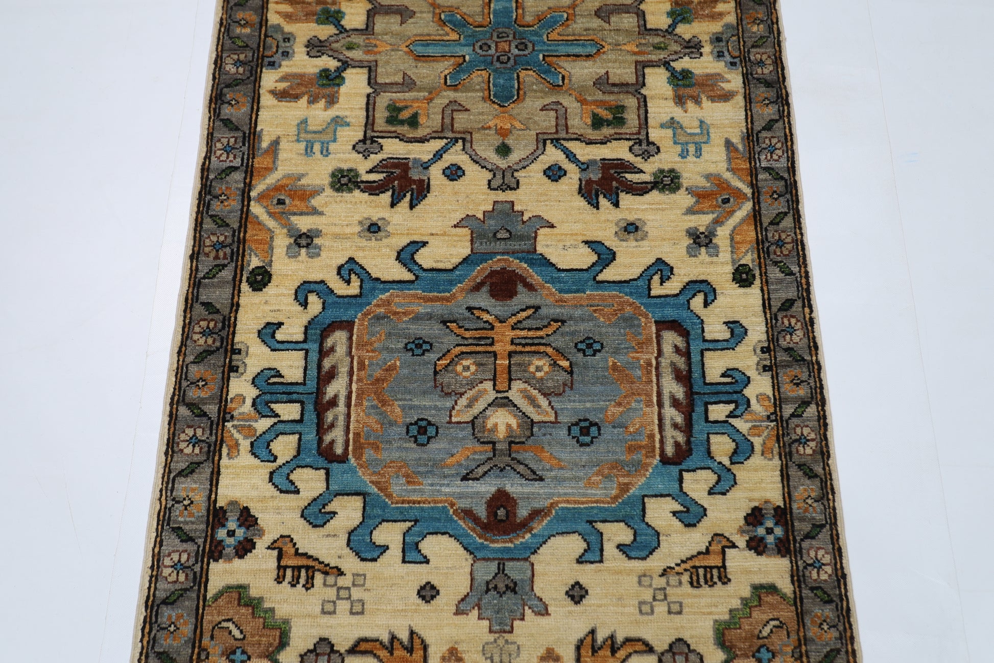 83 x 253 cm | Beige Tribal Runner Rug Afghan Hand Knotted veg Dye Wool carpet