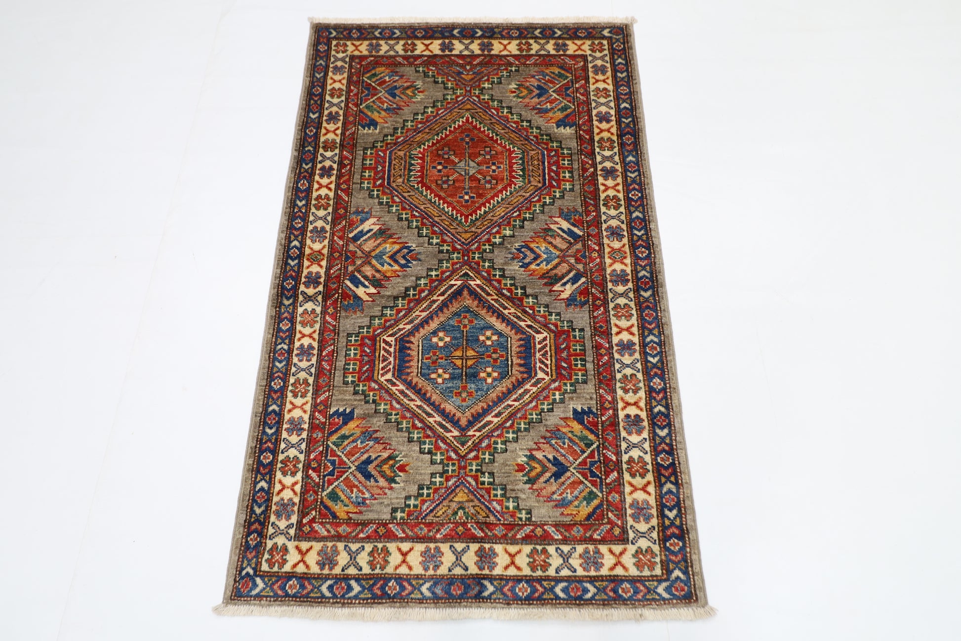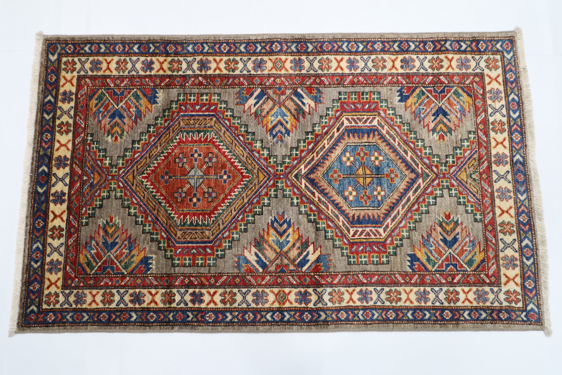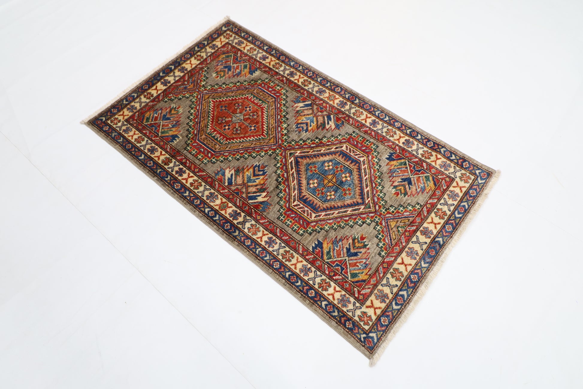 81 x 134 cm | Kazak Grey Afghan Hand Knotted Carpet