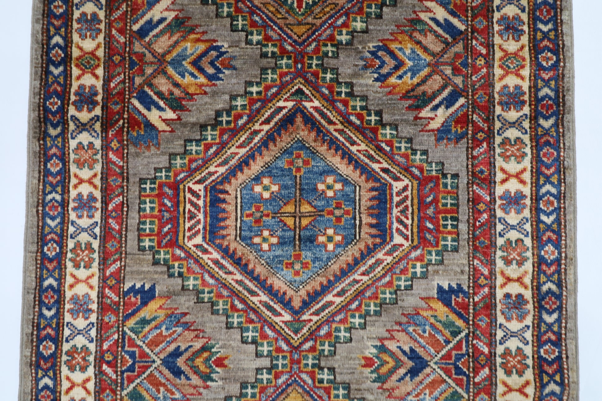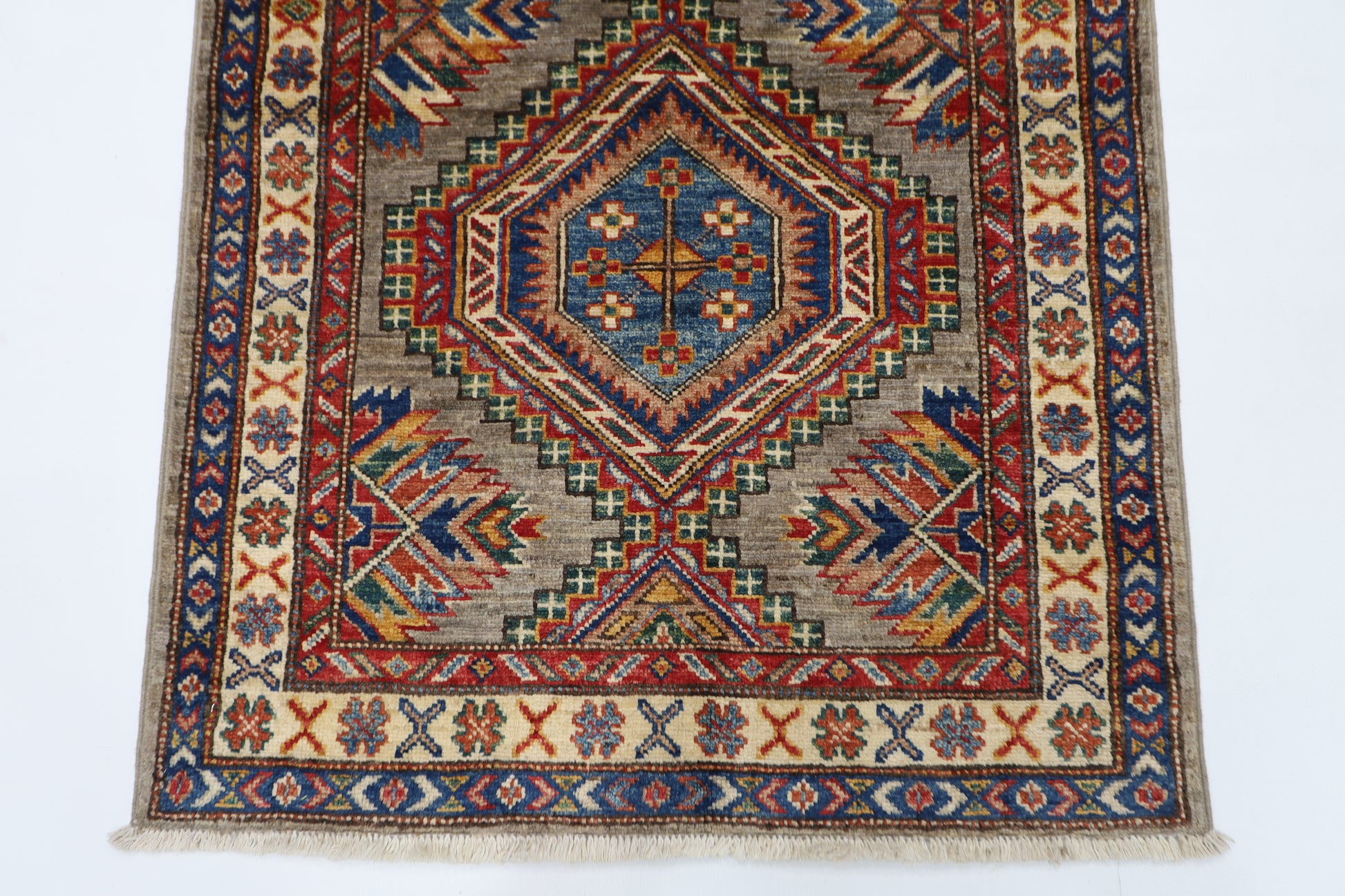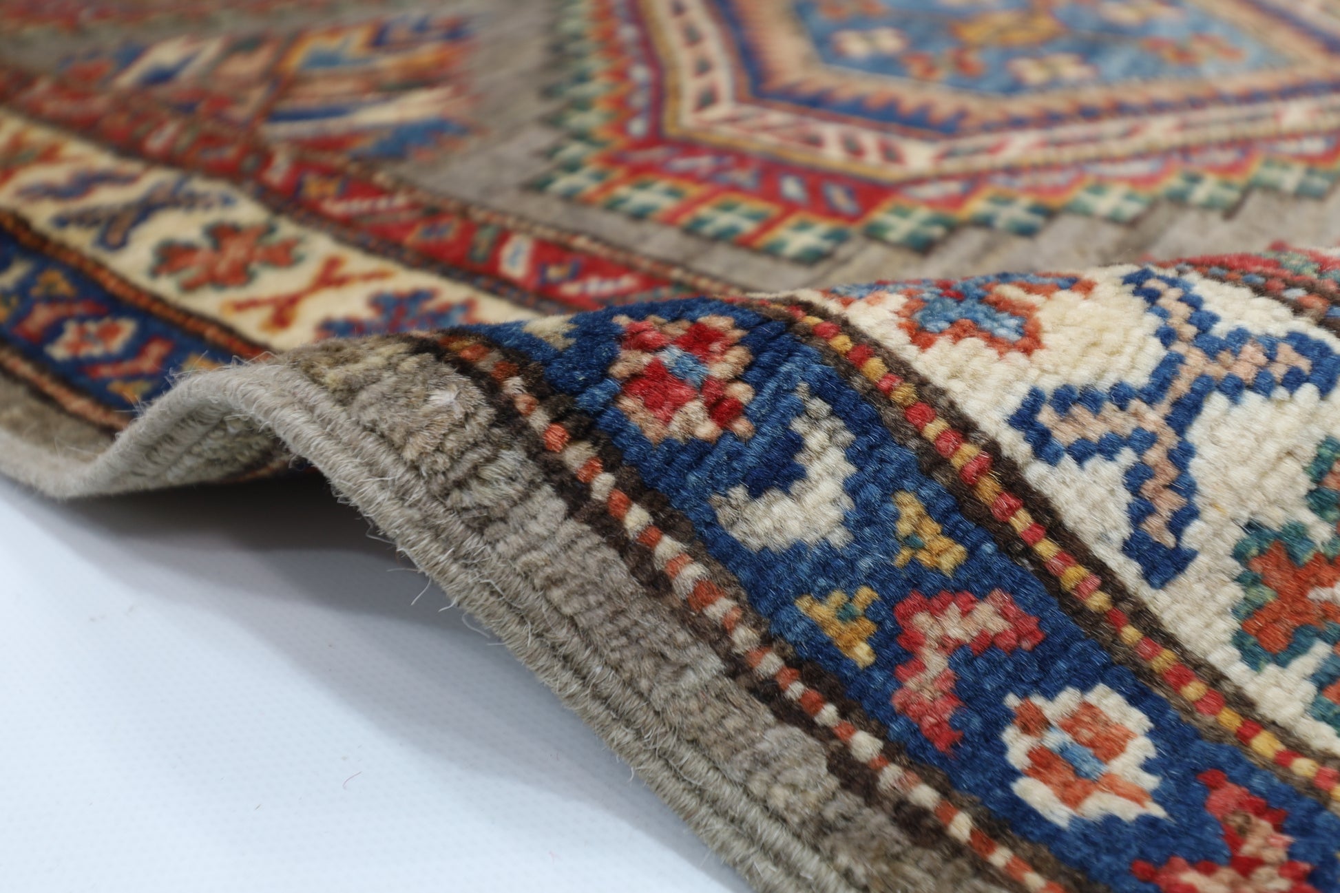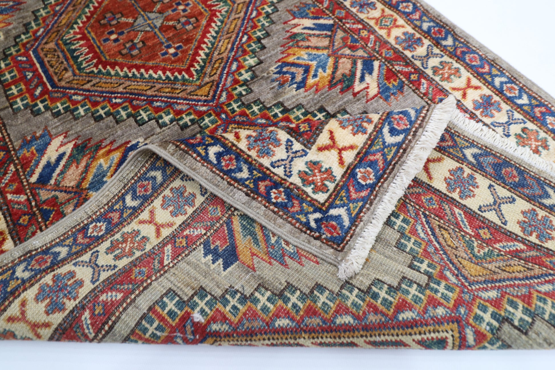81 x 134 cm | Kazak Grey Afghan Hand Knotted Carpet