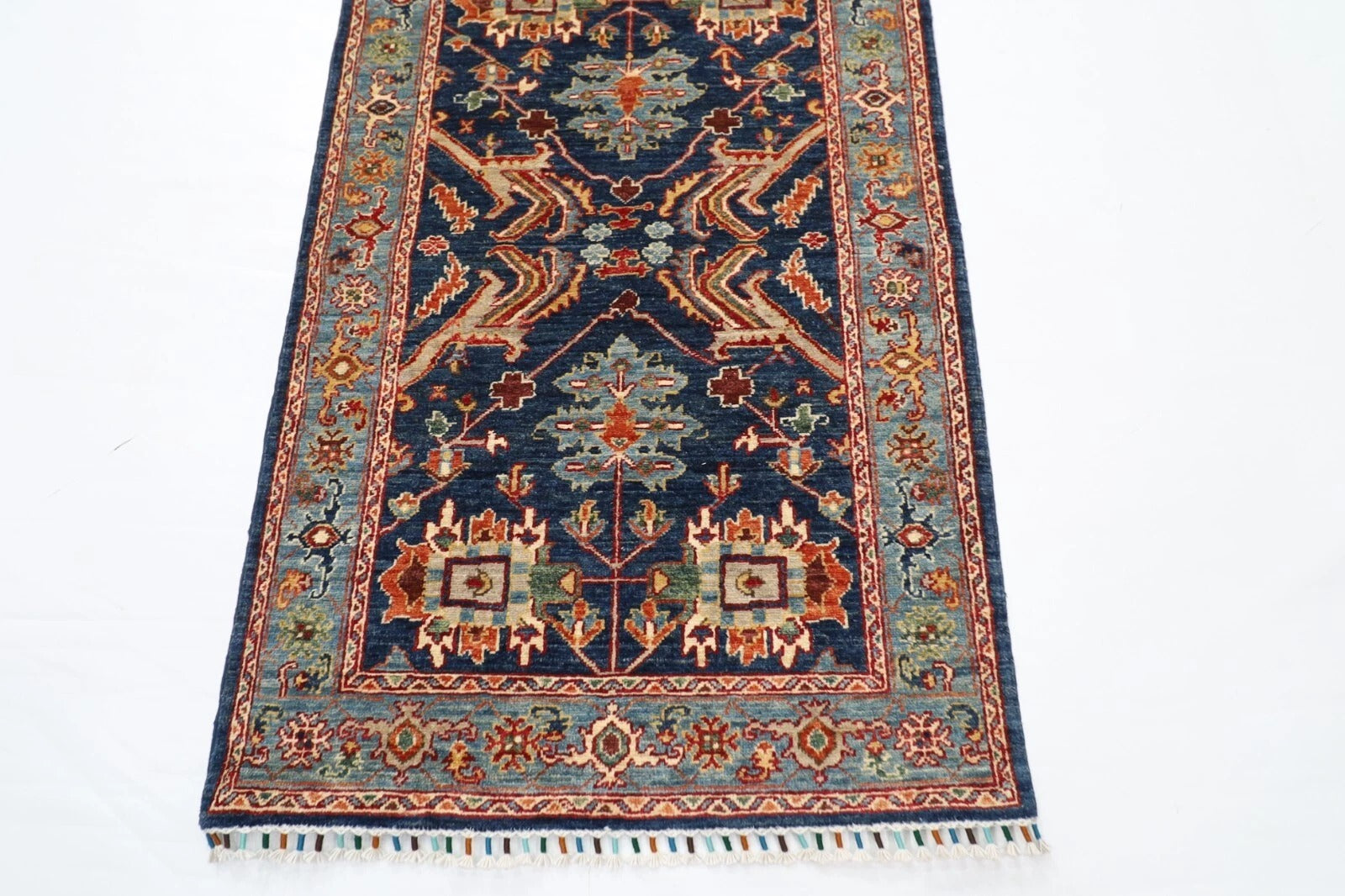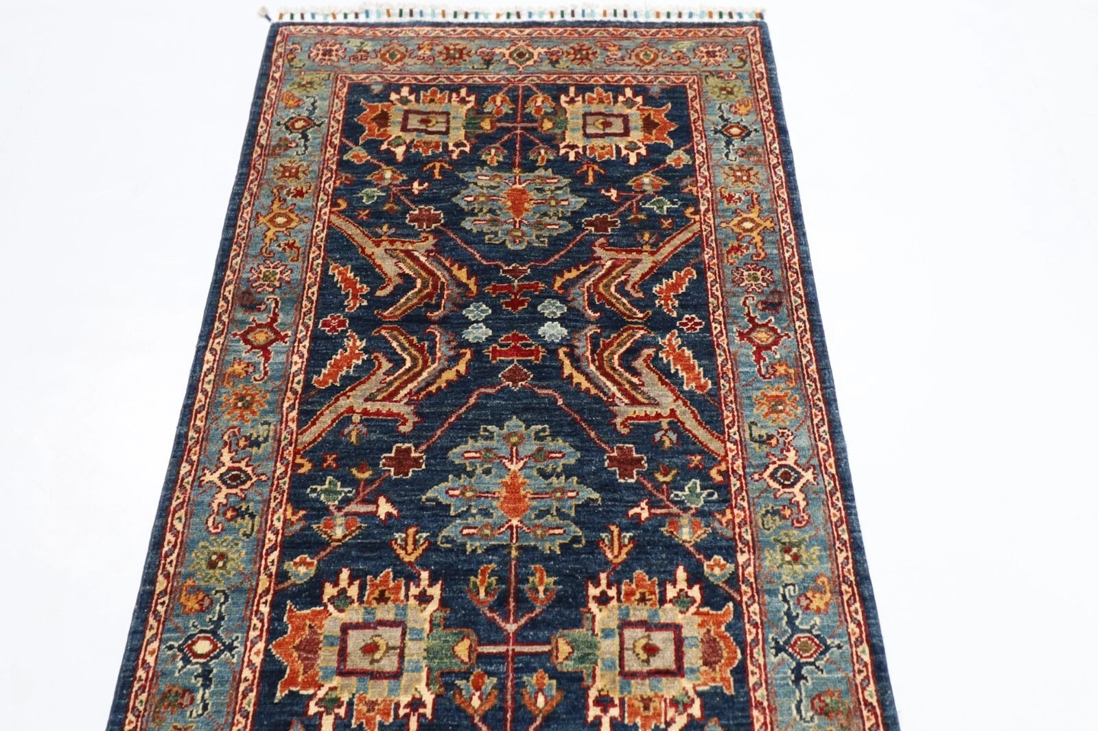 92 x 353 cm | Navy Afghan Tribal Hand Knotted Wool Runner