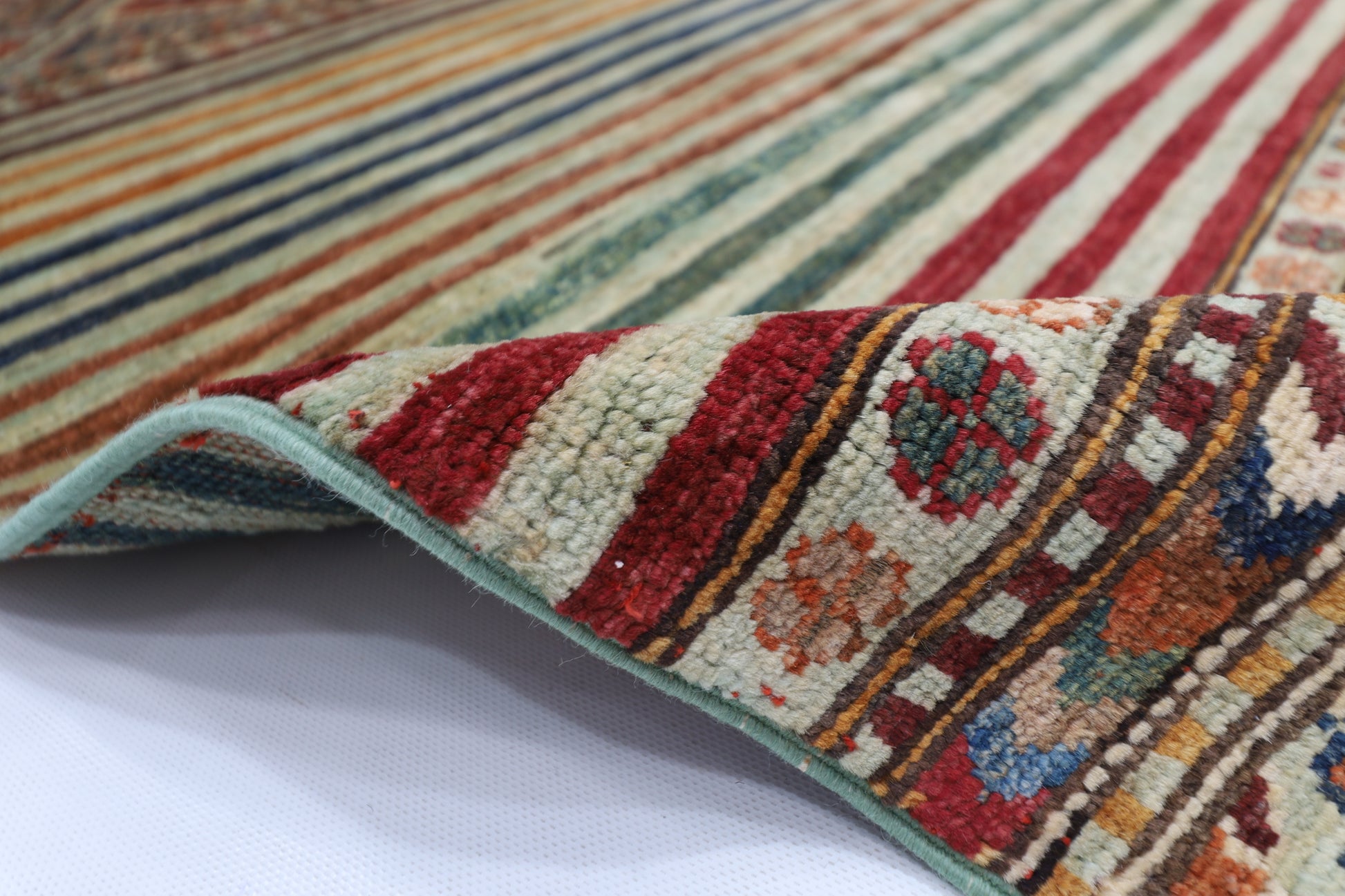 104 x 162 cm | Striped Afghan Tribal Hand Knotted Veg Dye Wool Carpet